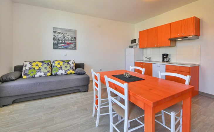 Appartementencomplex "Val", gerenoveerd in 2017. In het centrum van Sveti Juraj, zonnige ligging, 30 m van zee, 30 m van het strand. In het huis: internetaansluiting. Openbare parkeerplaatsen. Winkel 200 m, restaurant 20 m, bushalte 300 m, kiezelstrand 30 m.