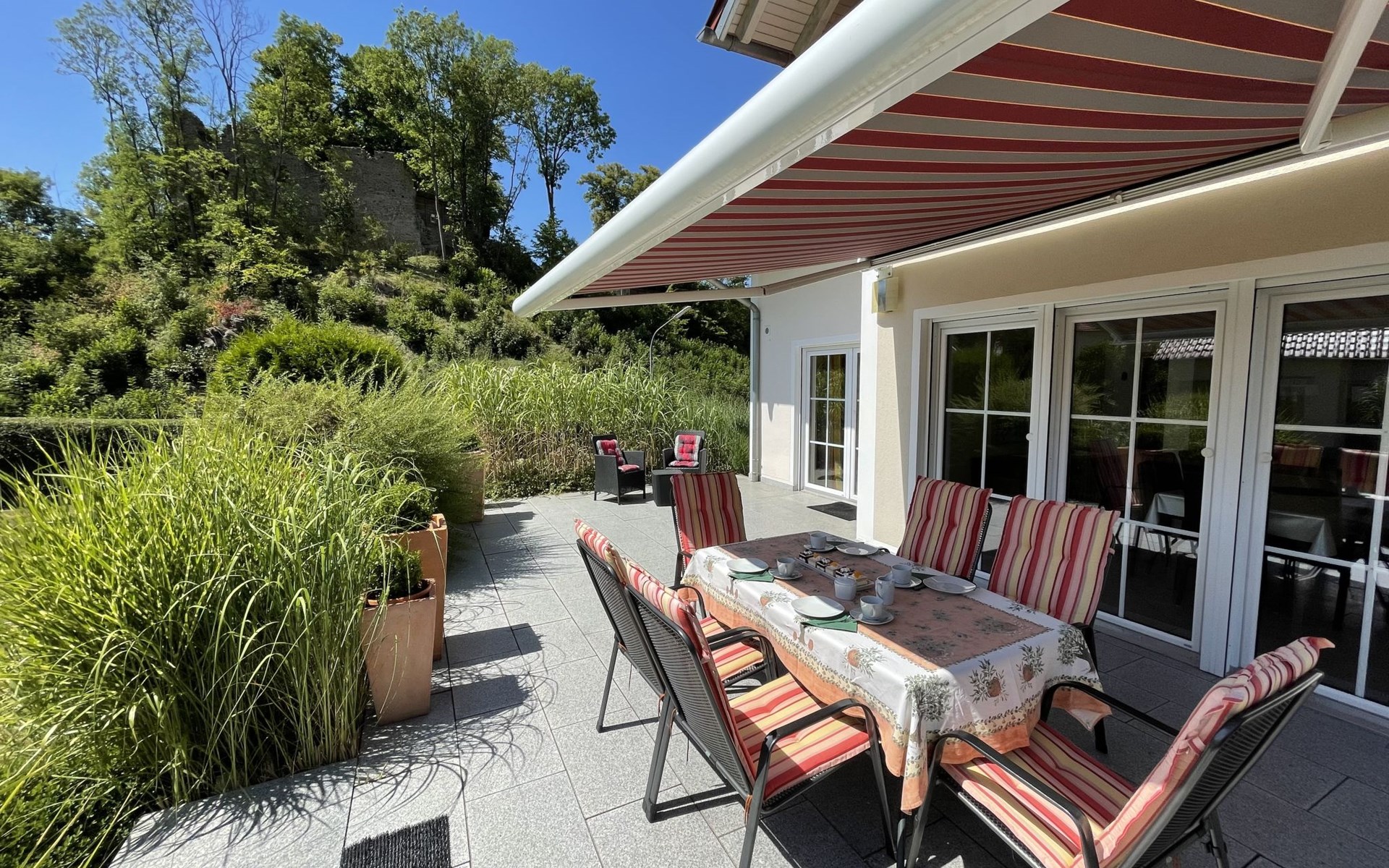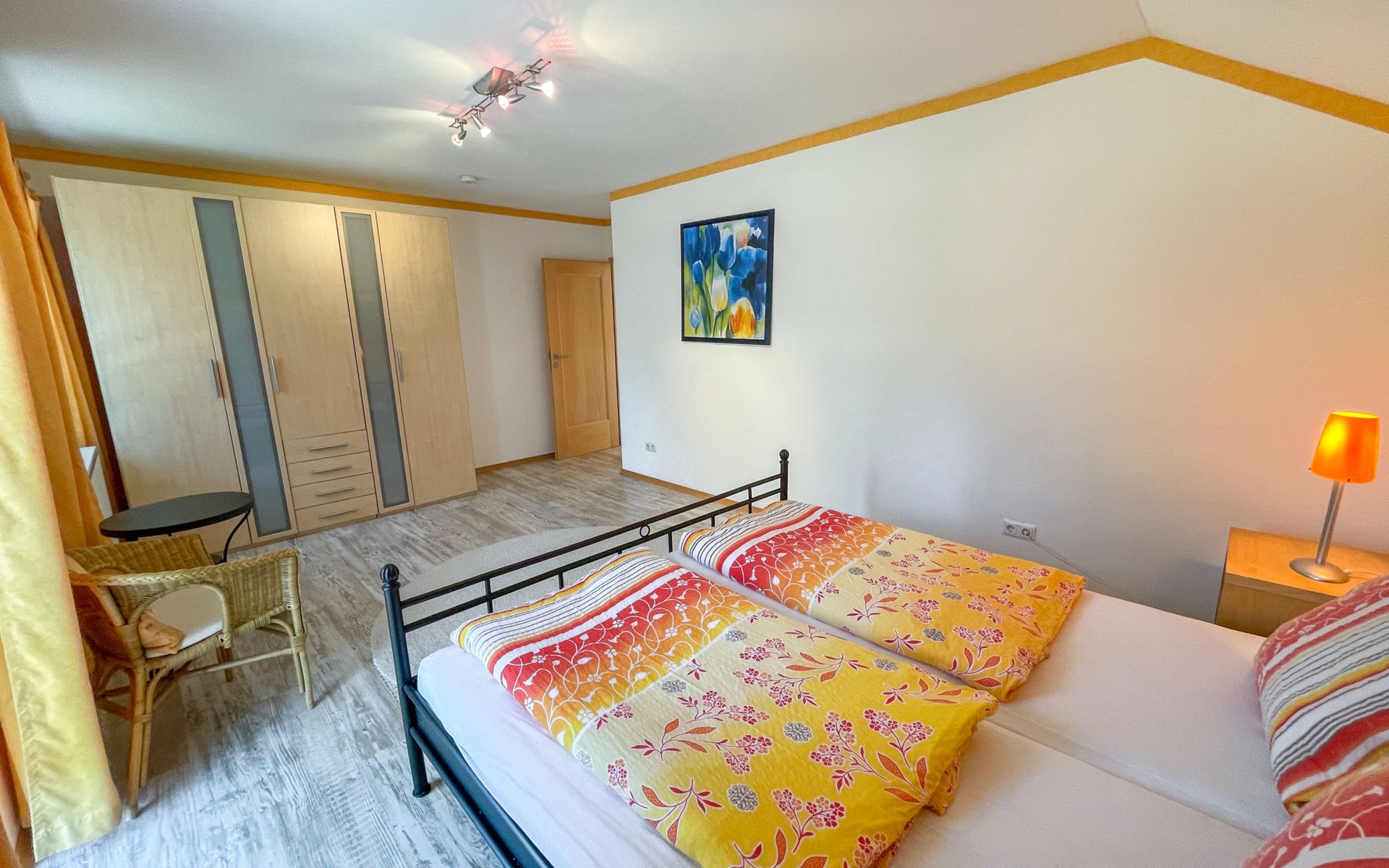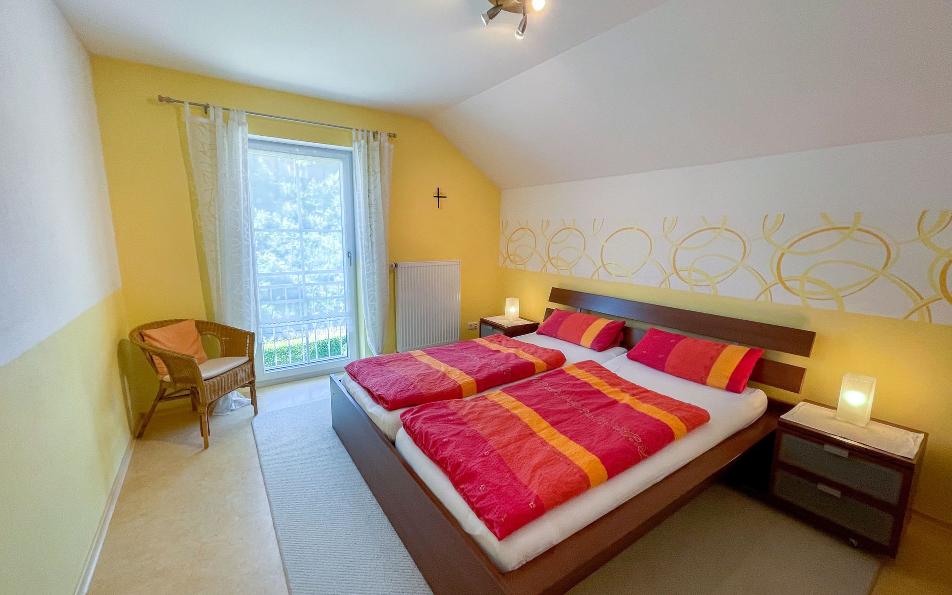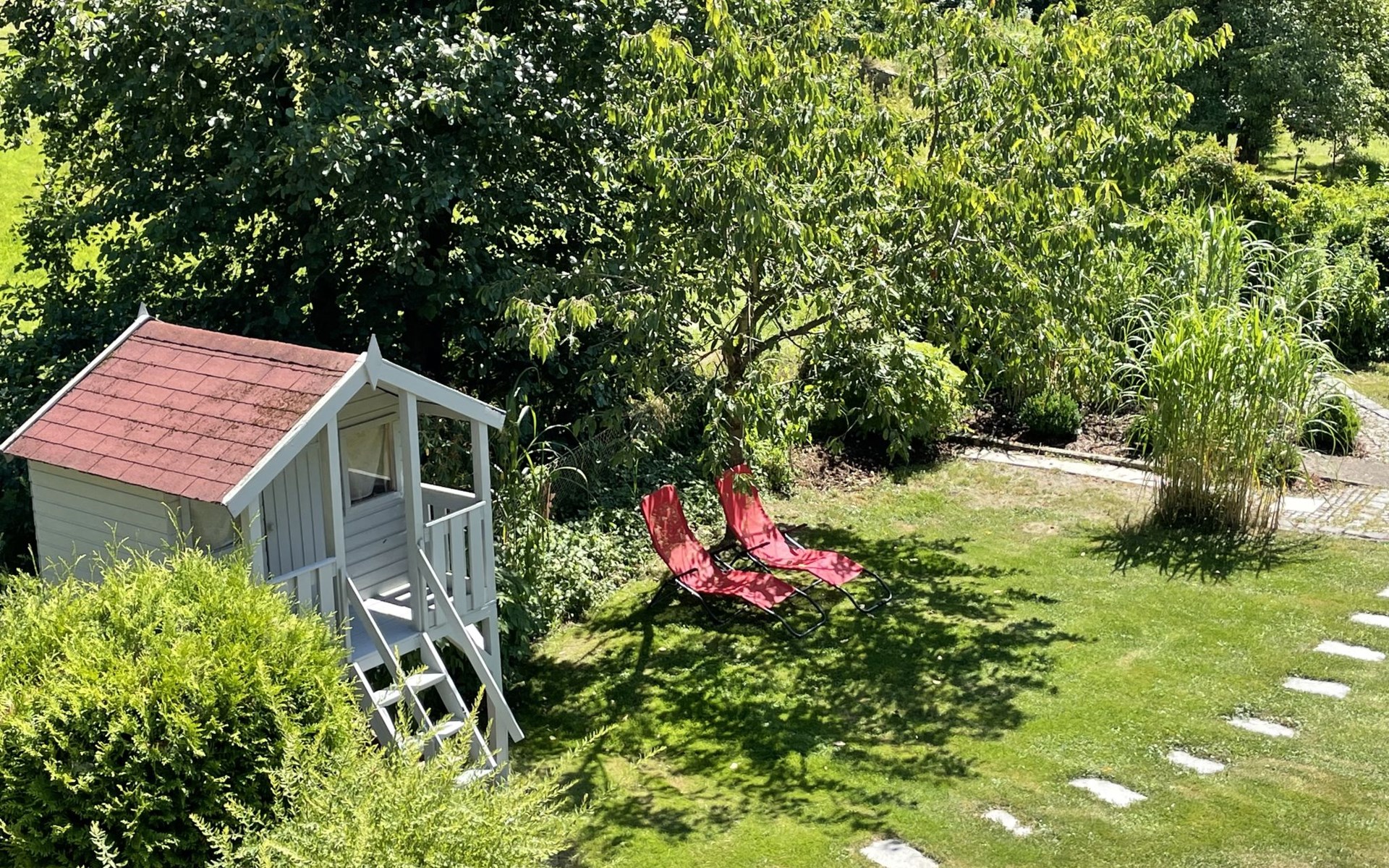 Huis "Ederer", eenzijdig aangebouwd. In de wijk Neuhaus, 3 km van het centrum van Schorndorf, 11 km van het centrum van Cham, 50 km van het centrum van Regensburg, 100 m van de bosrand, te midden van groen. Voor alleengebruik: terrein 1.000 m2, verzorgde tuin (niet omheind) met planten, ligweide. Kinderspeelplaats (schommel, zandbak), parkeerplaats op het terrein, eigen garage. Winkel 3 km, supermarkt 11 km, bushalte "Obergoßzell, Traitsching" 2.4 km, openluchtzwembad 3.7 km.