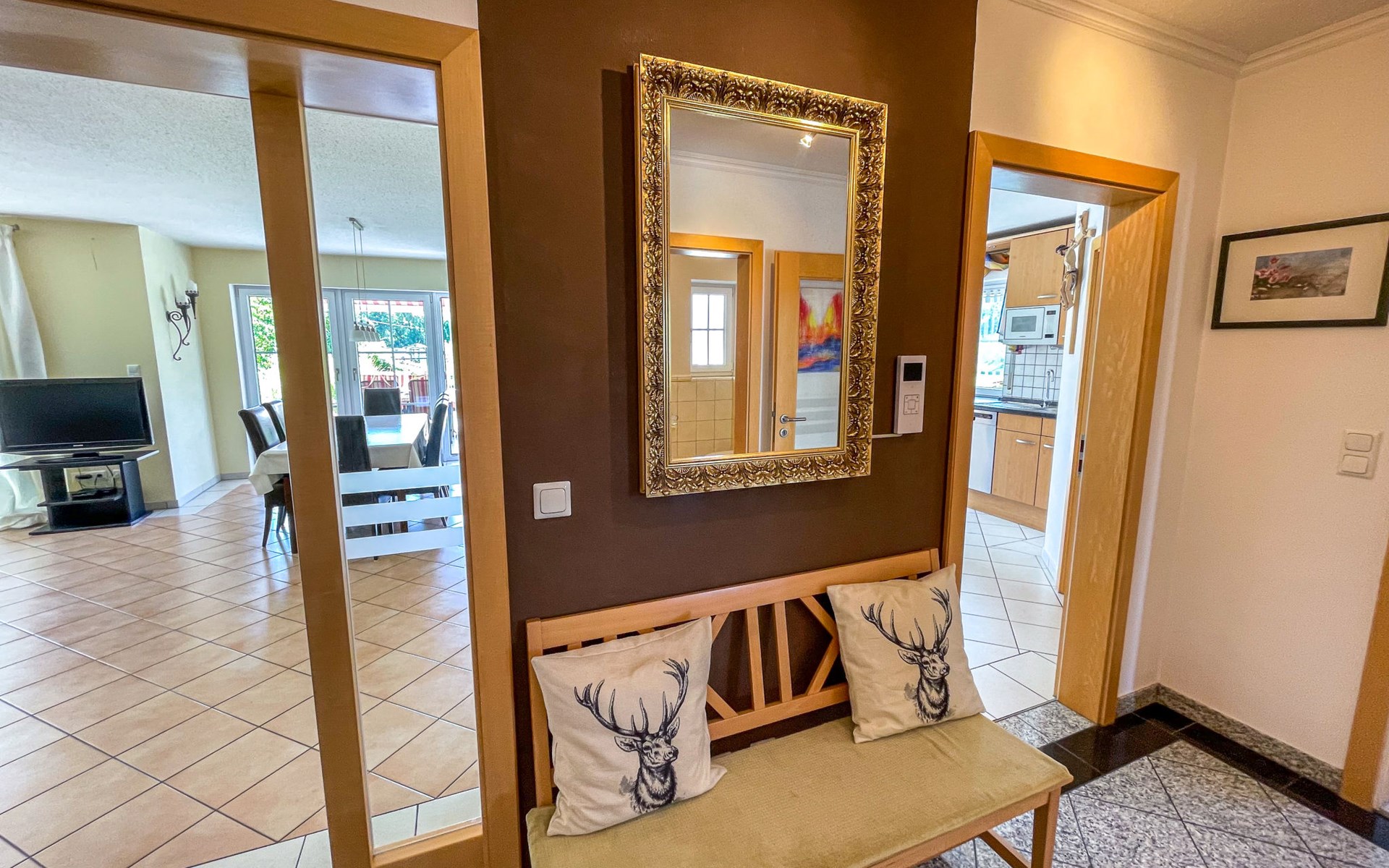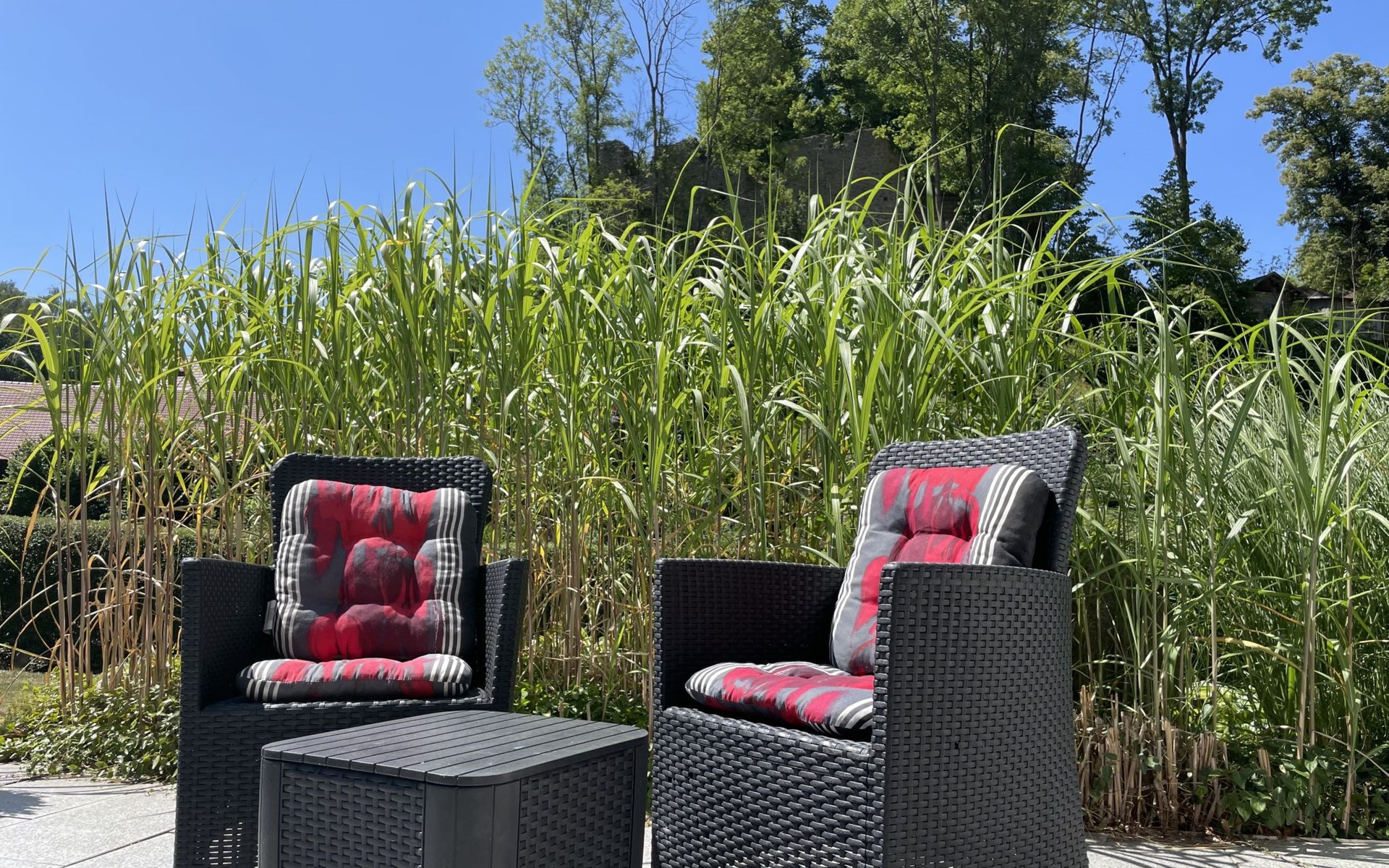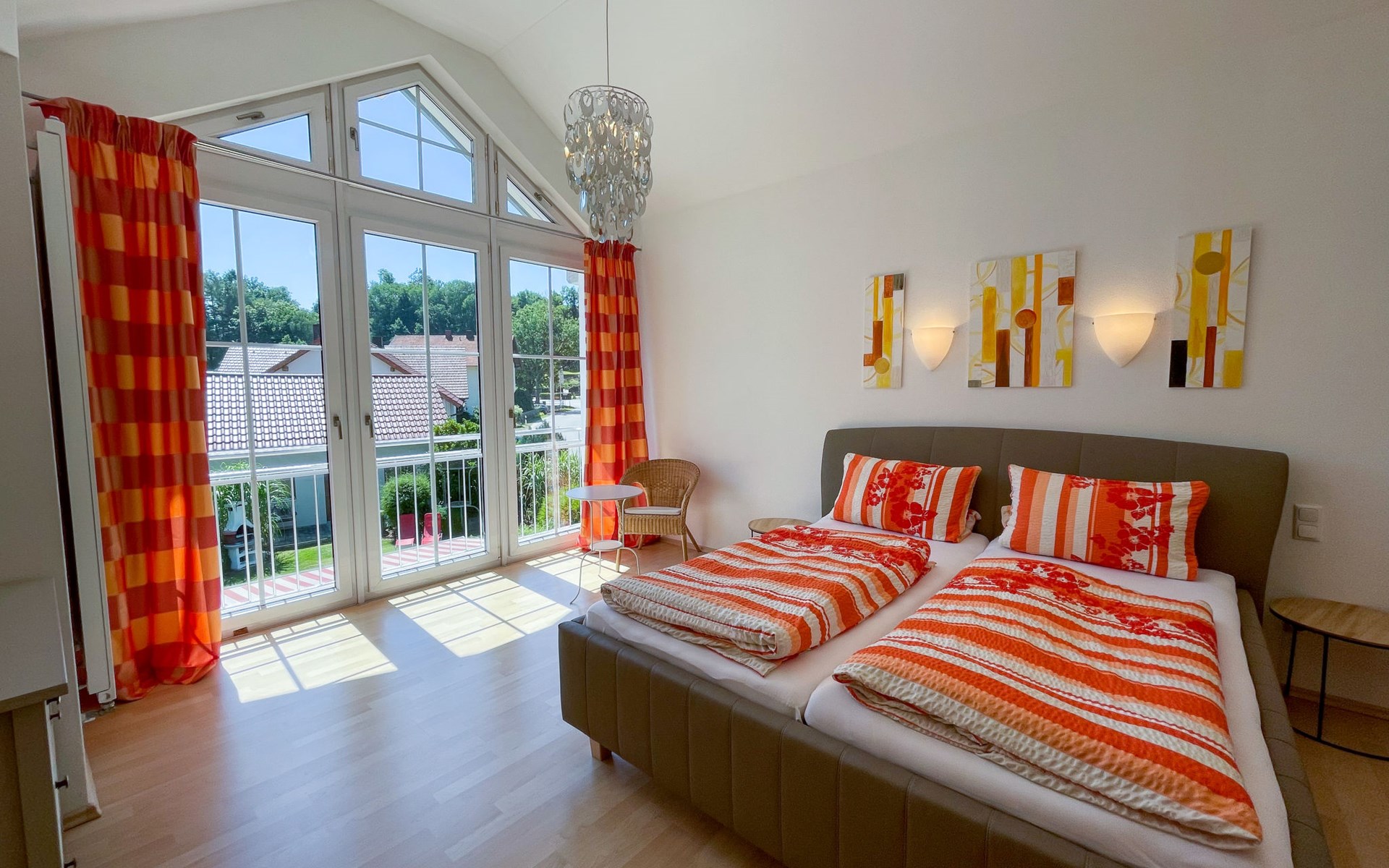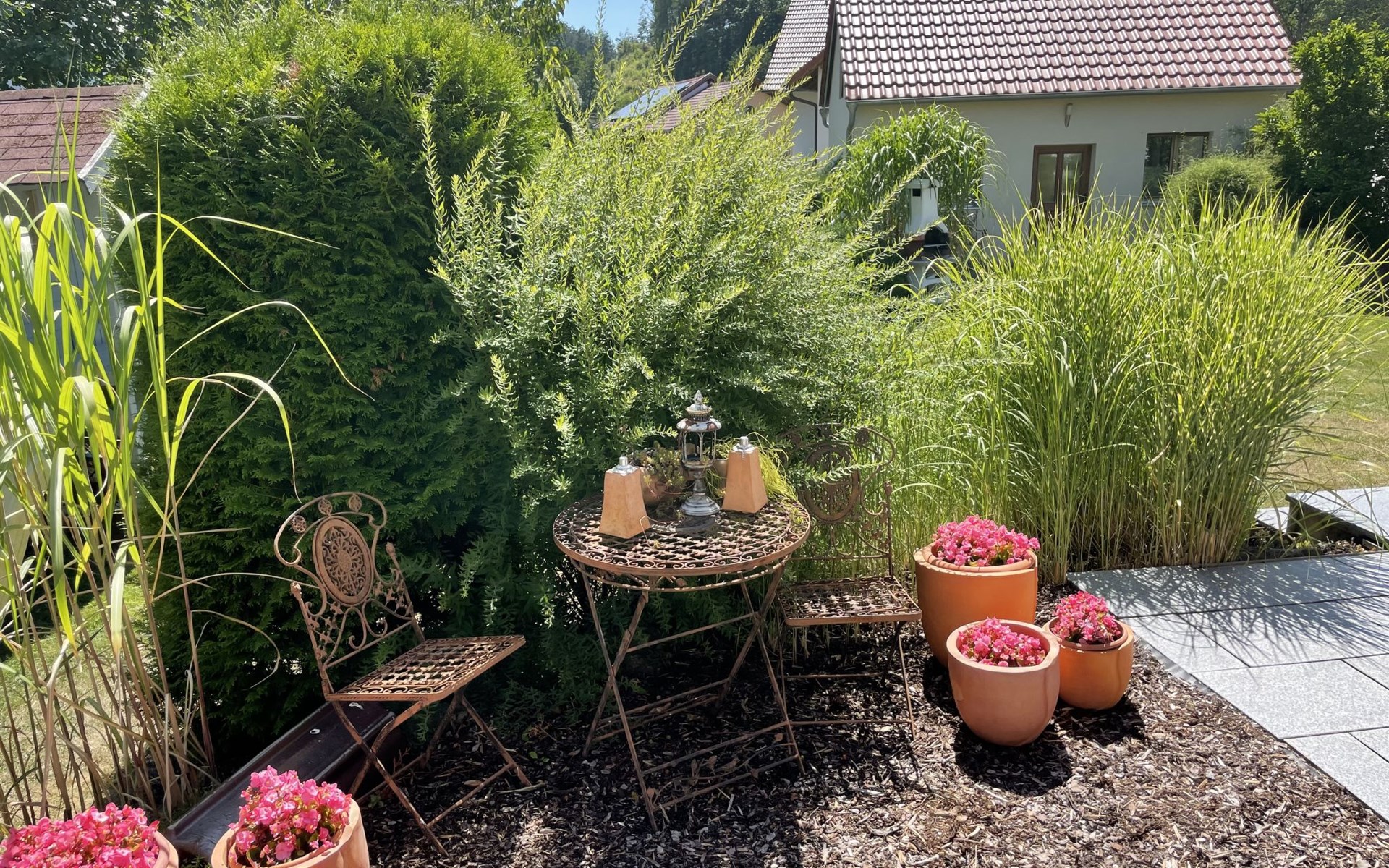 Huis "Ederer", eenzijdig aangebouwd. In de wijk Neuhaus, 3 km van het centrum van Schorndorf, 11 km van het centrum van Cham, 50 km van het centrum van Regensburg, 100 m van de bosrand, te midden van groen. Voor alleengebruik: terrein 1.000 m2, verzorgde tuin (niet omheind) met planten, ligweide. Kinderspeelplaats (schommel, zandbak), parkeerplaats op het terrein, eigen garage. Winkel 3 km, supermarkt 11 km, bushalte "Obergoßzell, Traitsching" 2.4 km, openluchtzwembad 3.7 km.