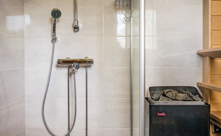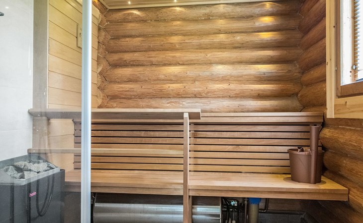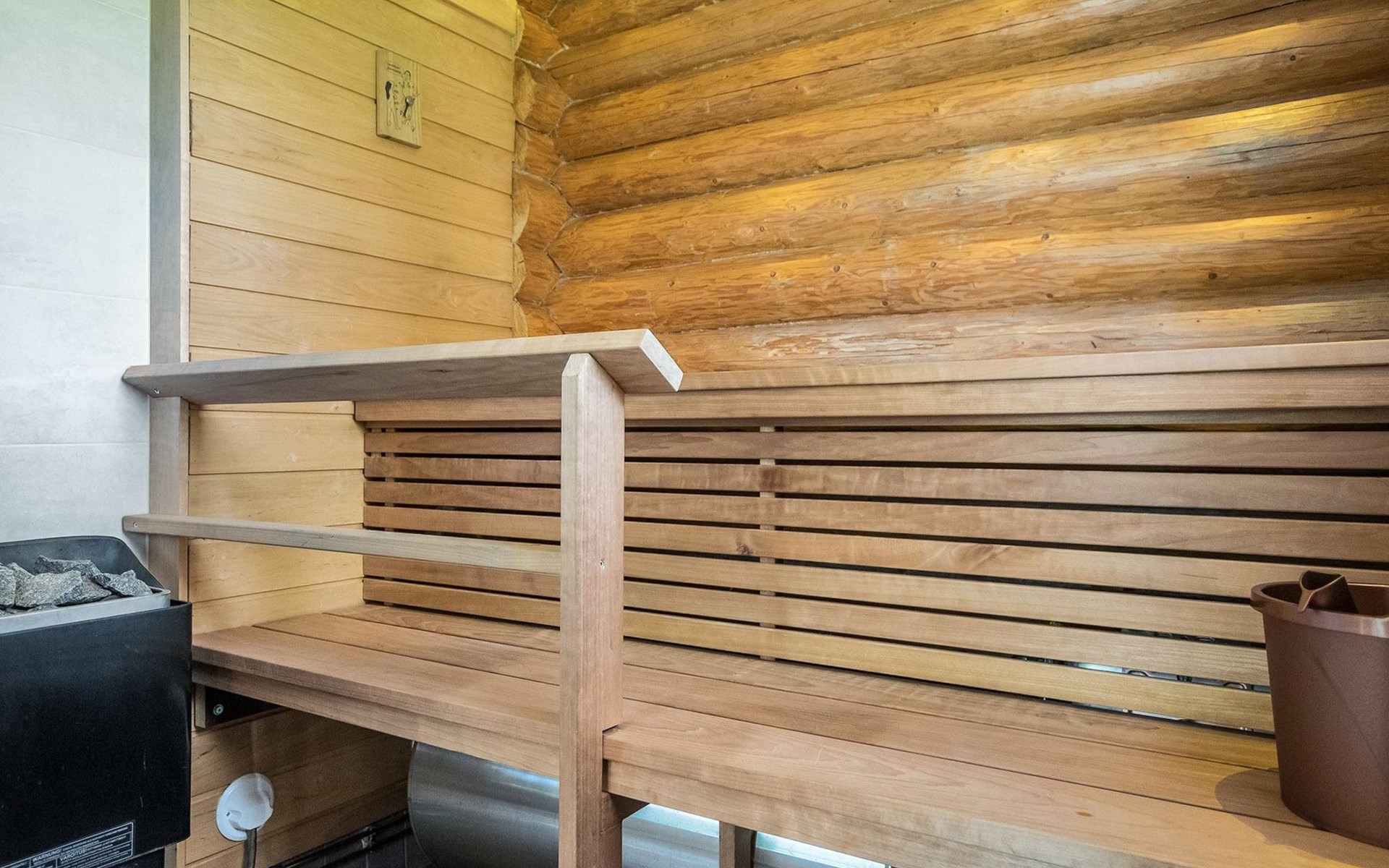 On the ground floor electric sauna (shower in the sauna), dressing room / WC with washing machine.