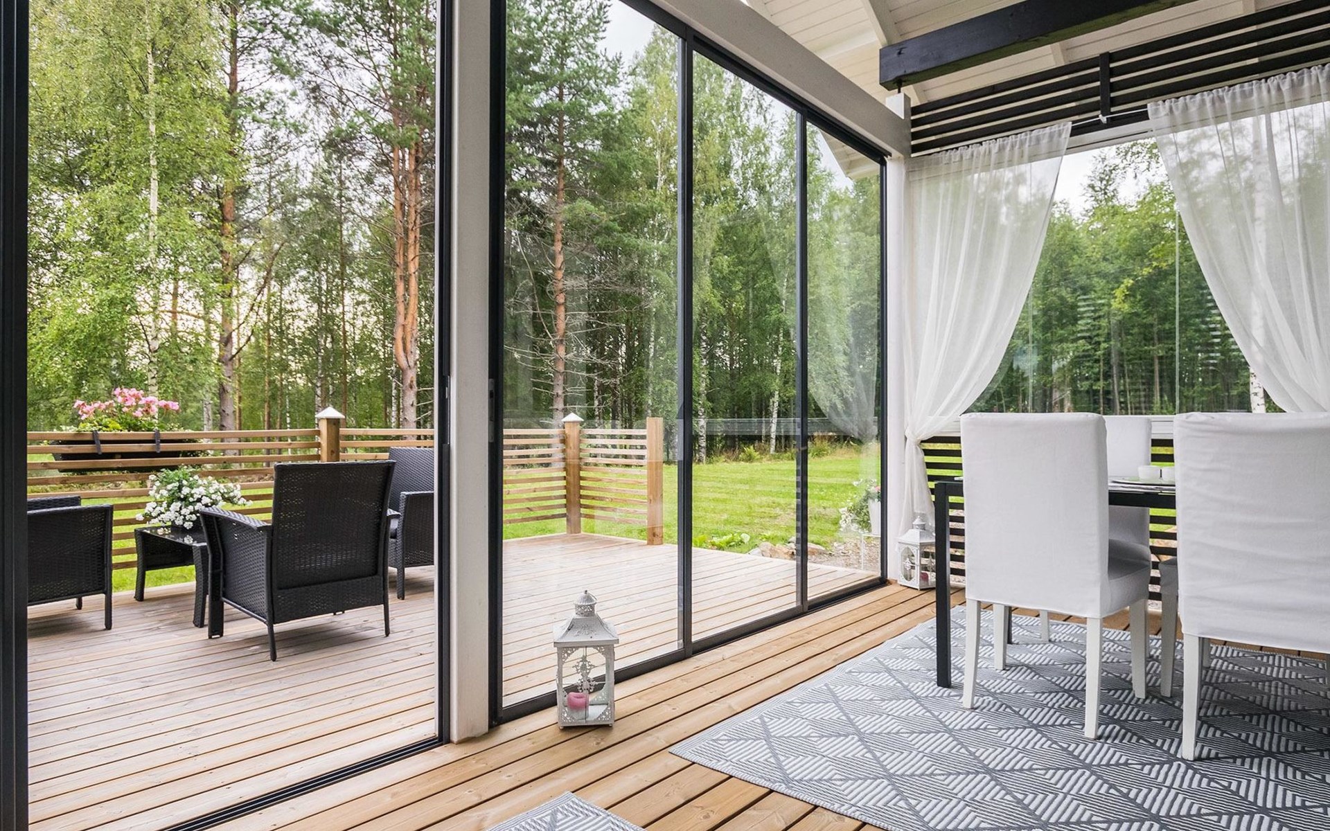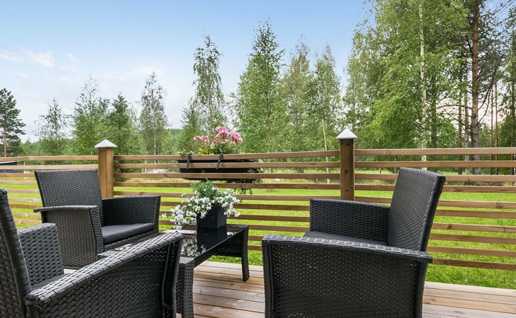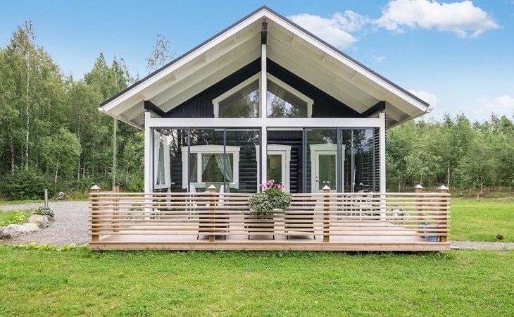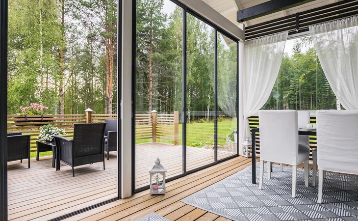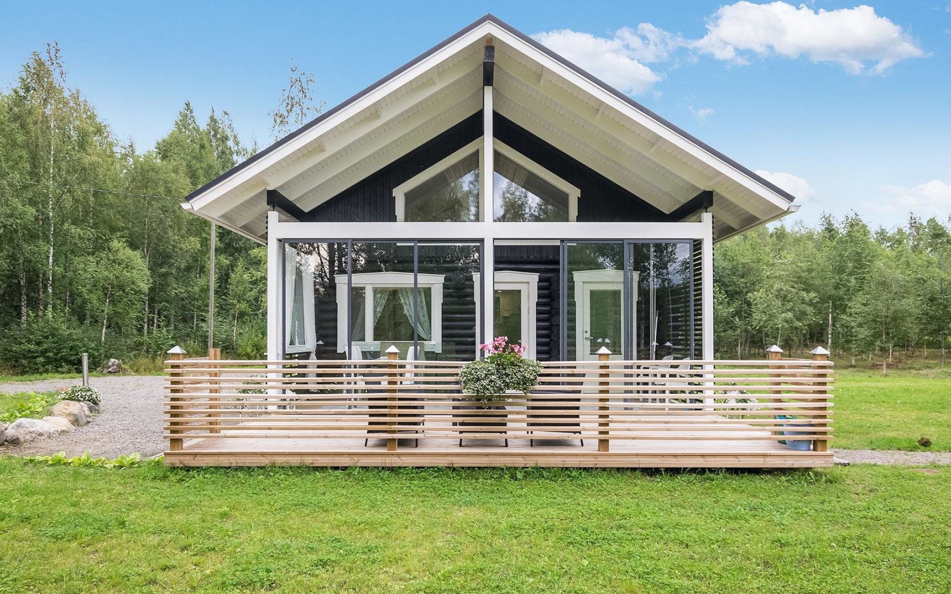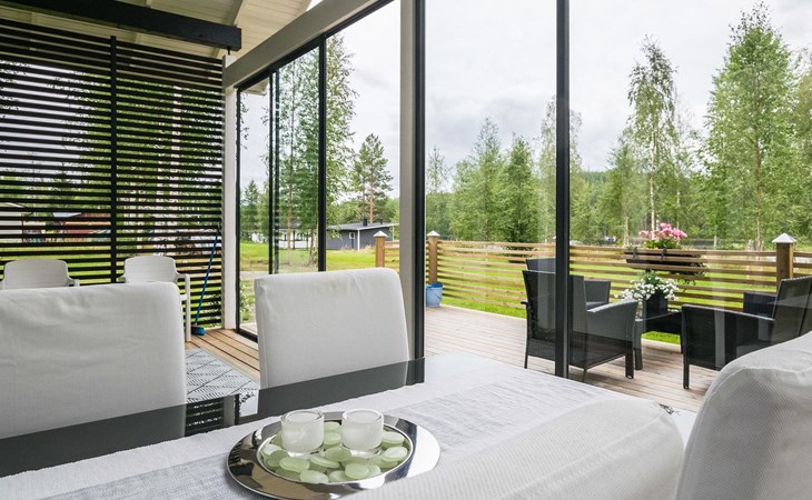 The cabin has a glazed terrace, which is followed by an unglazed terrace as well.