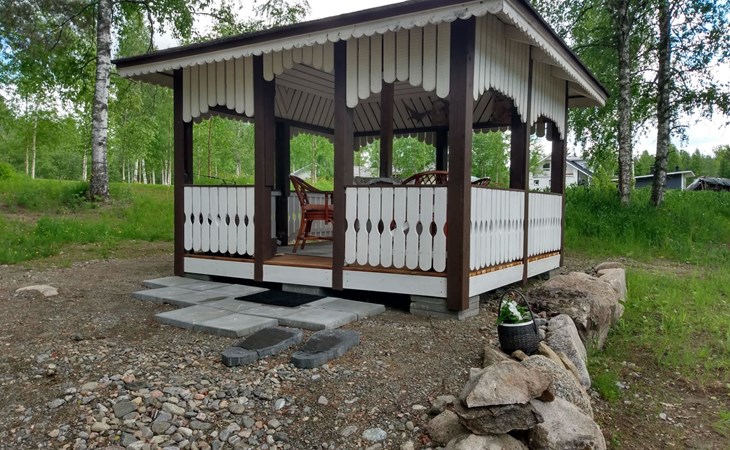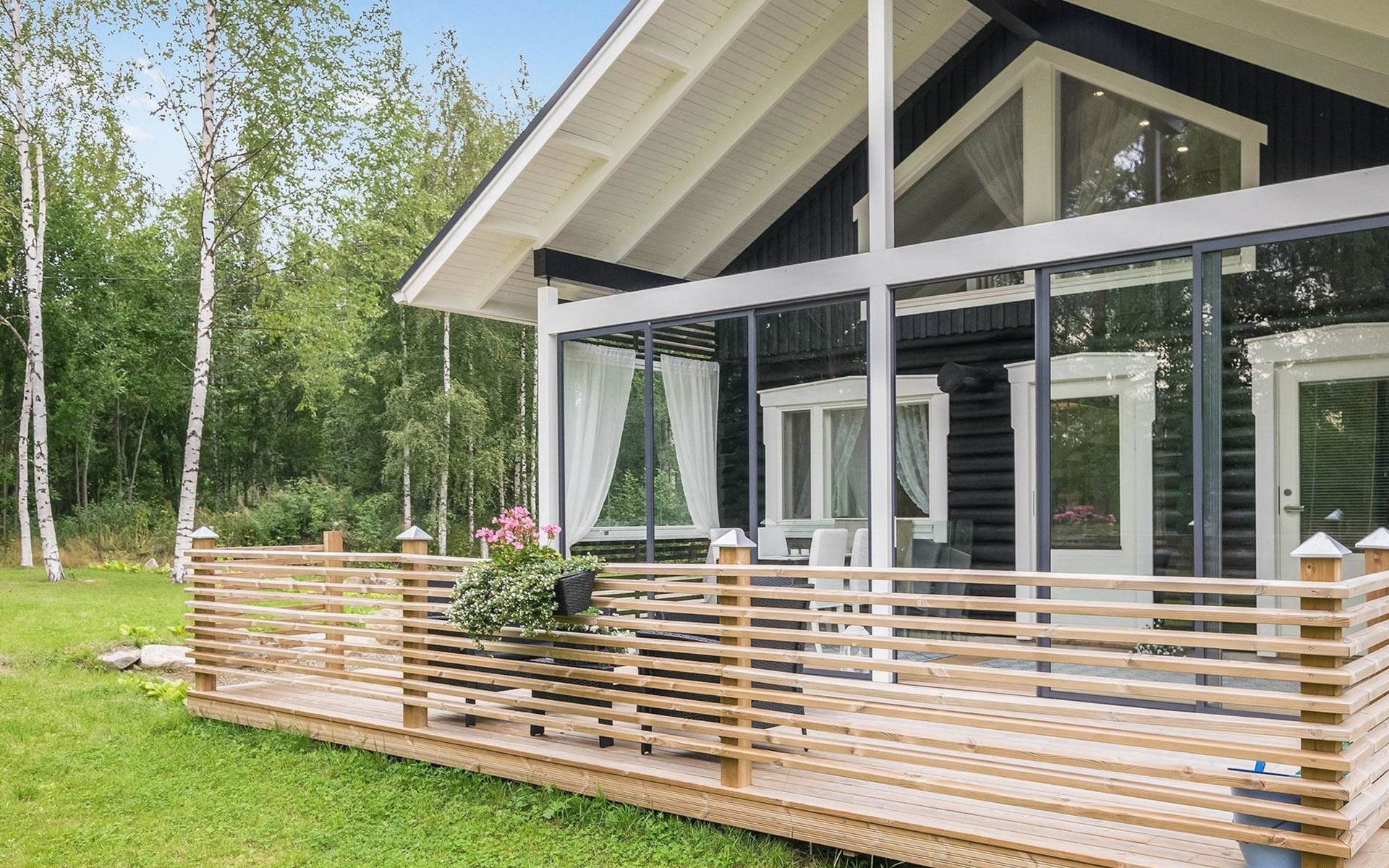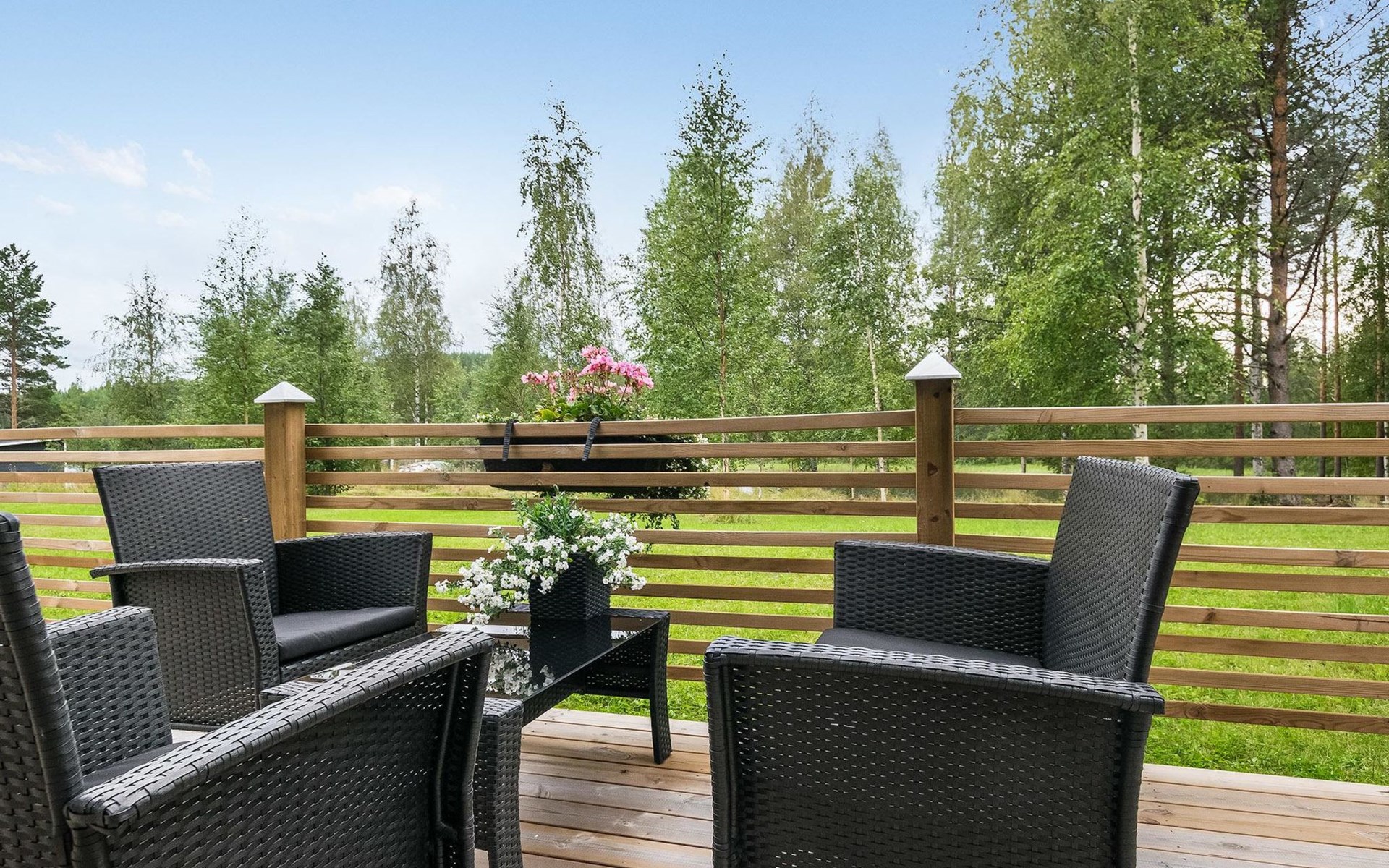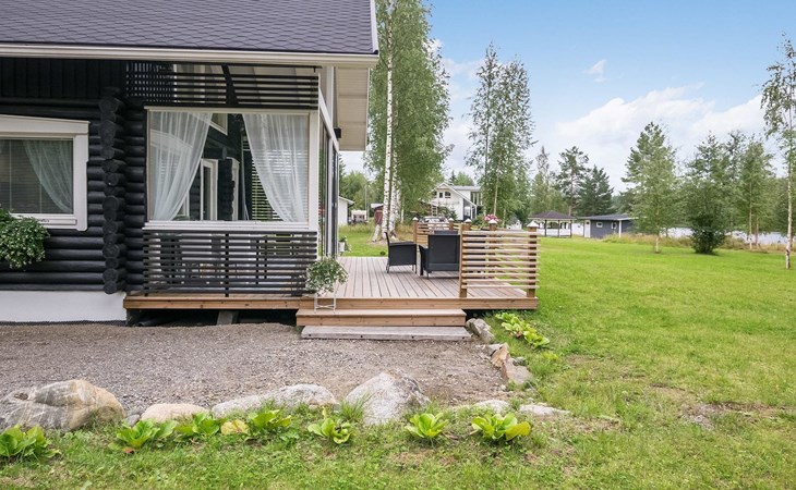 The cabin has a glazed terrace, which is followed by an unglazed terrace as well.