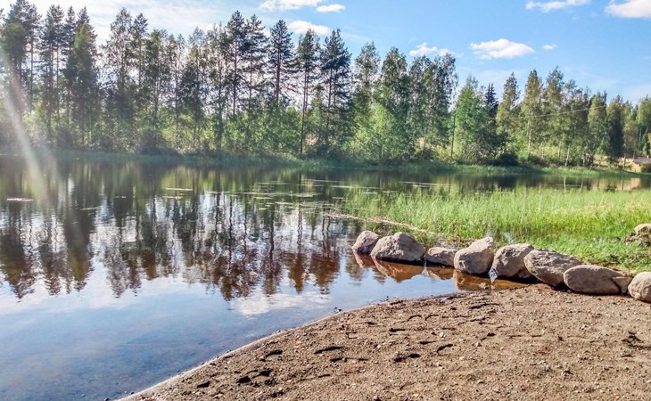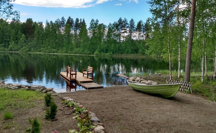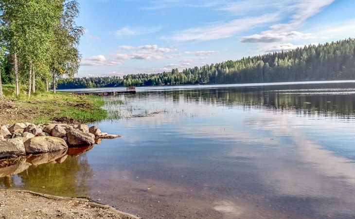 72 km from Kuopio, lake Haapajärvi 65 m, sanded, rapidly deepening beach, pier, own rowing boat.