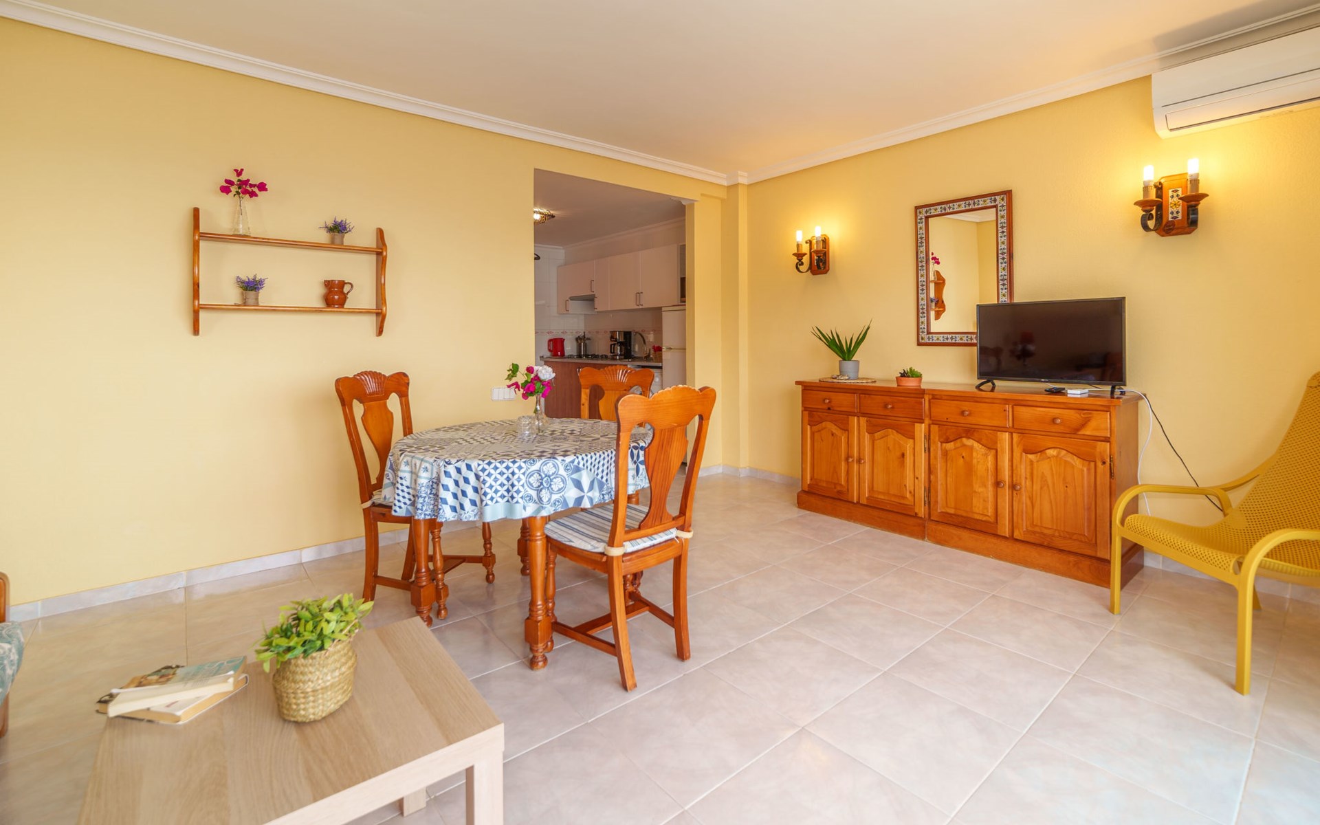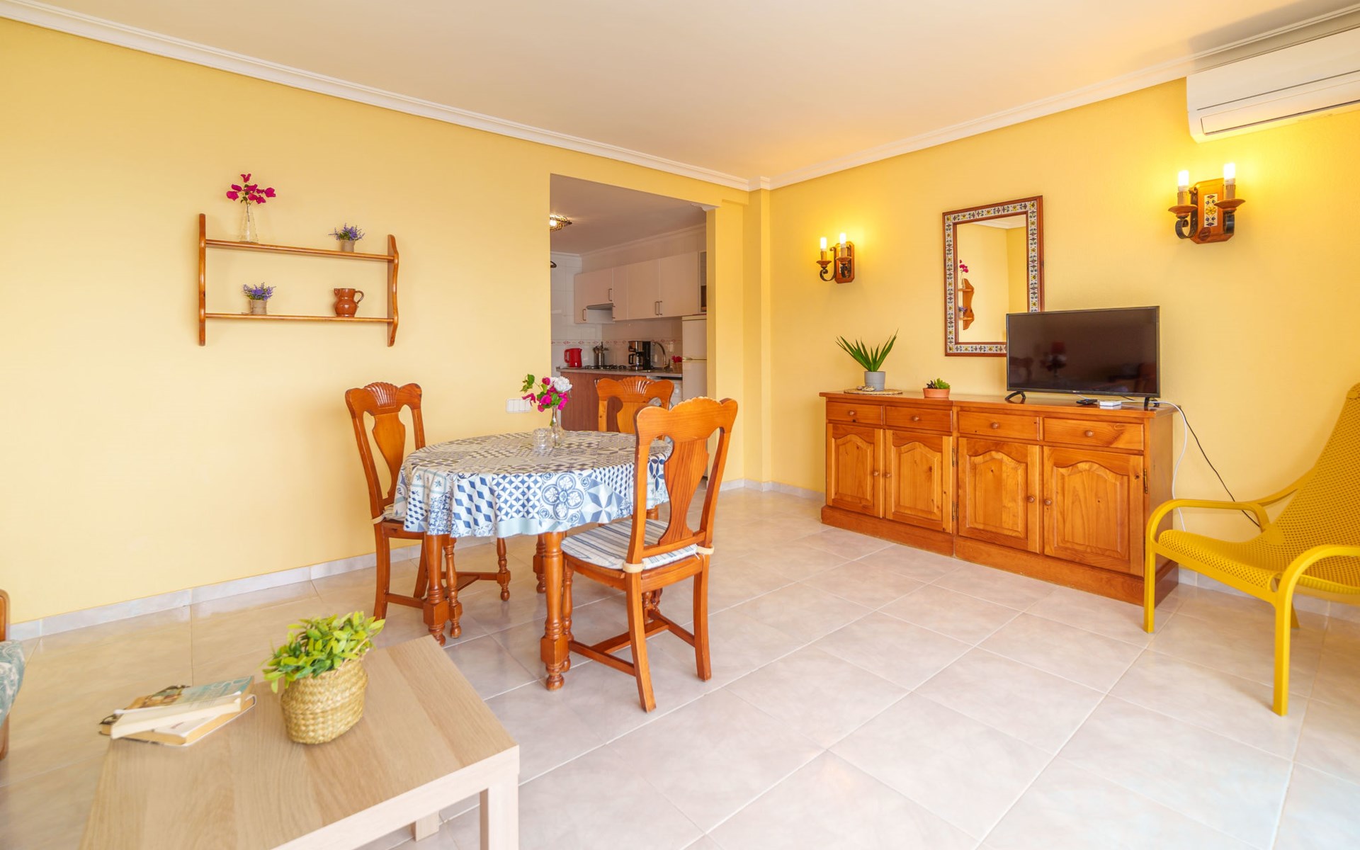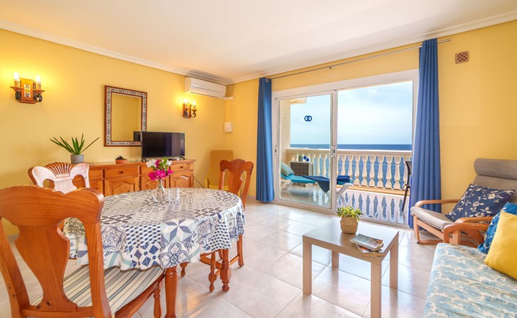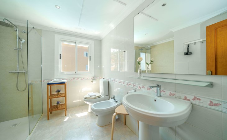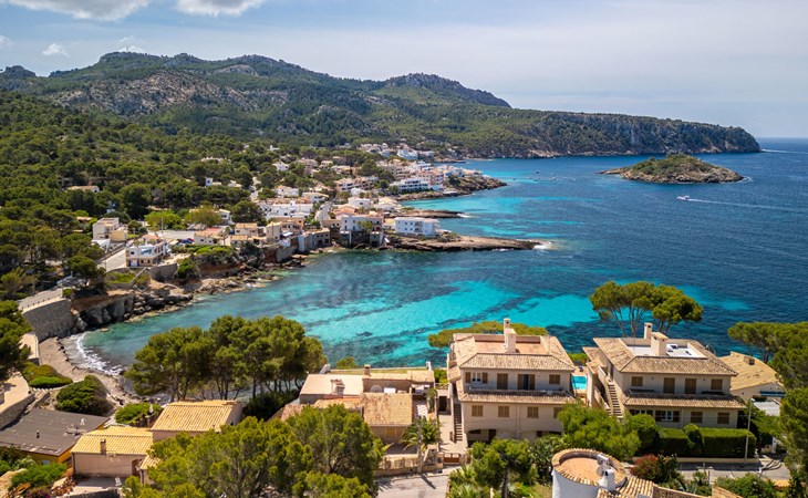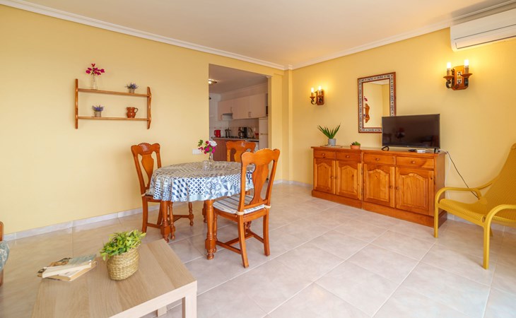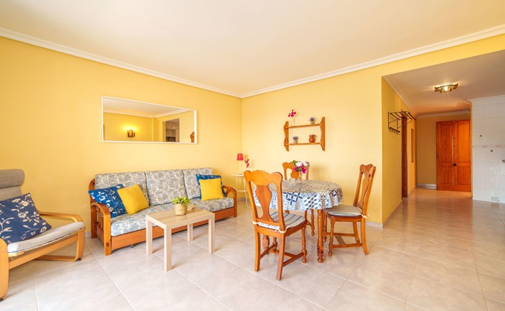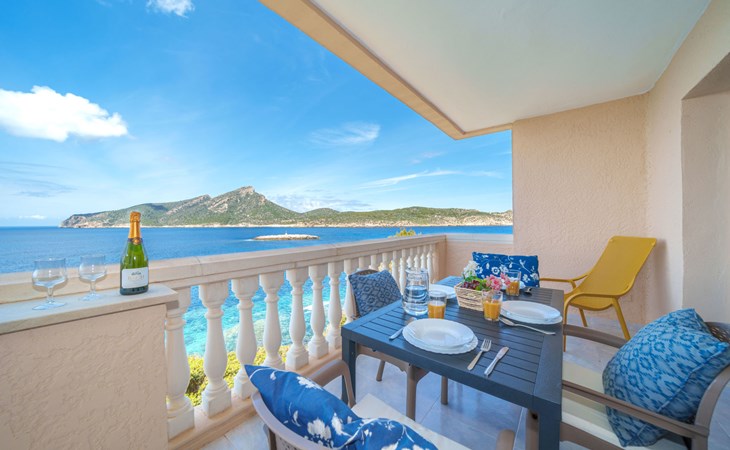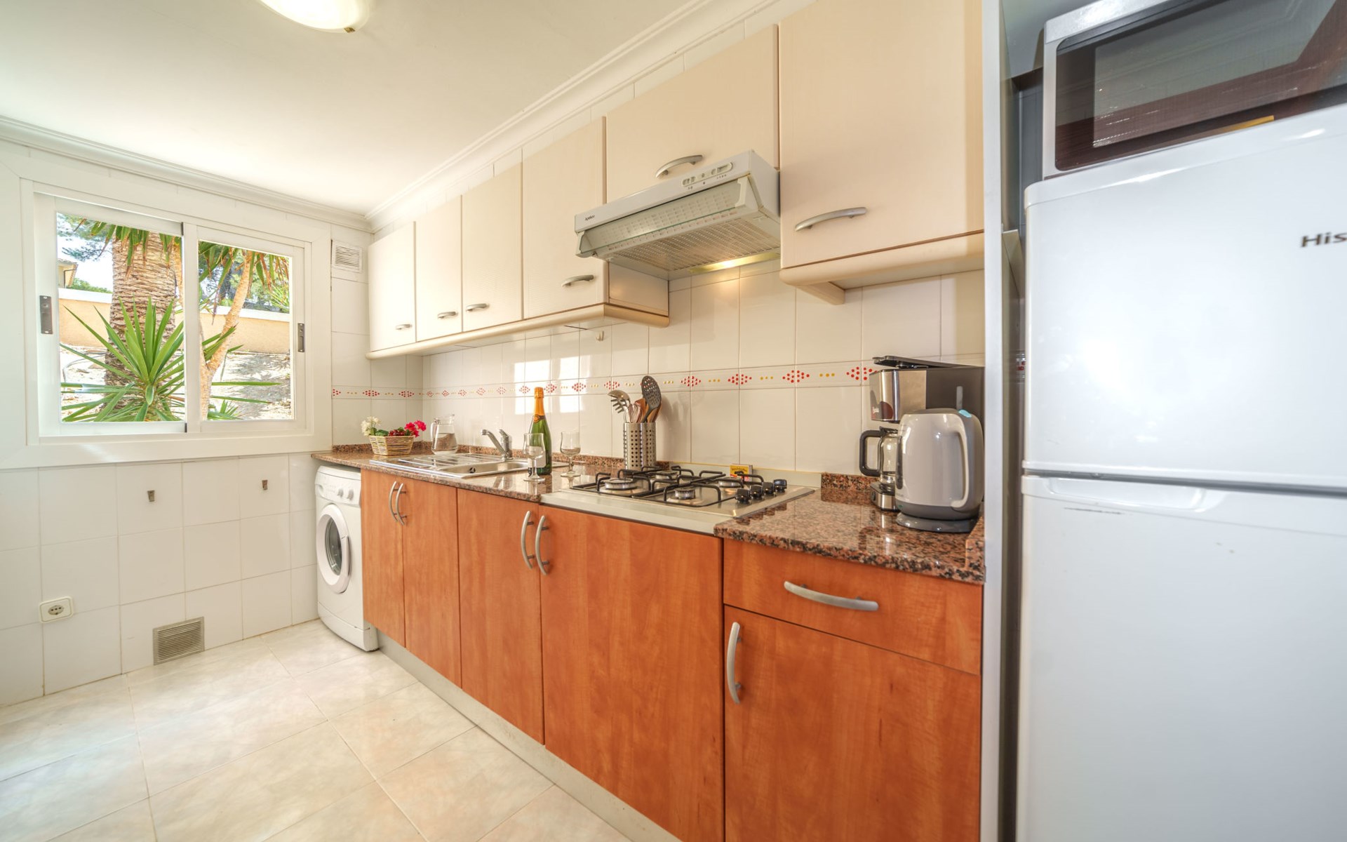 Sant Elm 10 km van Andratx: Mooi, eenvoudig vakantiecomplex "Apartamentos Amores", van 3 verdiepingen. 5 huizen in de plaats. In de plaats, 1 km van het centrum van San Telmo, aan de rand van de plaats, 11 km van het centrum van Andratx, 37 km van het centrum van Palma, zonnige ligging, 100 m van de bosrand, 15 m van zee, directe toegang tot het strand, op het zuidwesten. Voor medegebruik: openluchtzwembad (70 m2, 90 - 150 cm diepte, seizoensgebonden beschikbaarheid: 15.Mrt. - 15.Nov.). Kinderzwembad, buitendouche, onderhoud zwembad door de eigenaar/tuinman. In het complex: receptie, Internet (WiFi). Openbare parkeerplaatsen in de straat. Winkel 1 km, levensmiddelenwinkel 1 km, supermarkt 1 km, winkelcentrum 10 km, restaurant, bar 500 m, bakkerij 1 km, bushalte 1 km, zandstrand "Playa des Geperut" 1.1 km, rotsstrand "Cala s'Algar" 300 m. Jachthaven 10 km, jachthaven 10 km, golfterrein (18 holes) 30 km, surfschool 10 km, zeilschool 10 km, tennis 28 km, manege 14 km, wandelroutes 8 km vanaf het huis, fietspad 2 km. Attracties in de buurt: Galatzó 30 km, Valldemossa 50 km, Sa Dragonera 1 km. Wandelgebied La Trapa 5 km. Auto noodzakelijk.