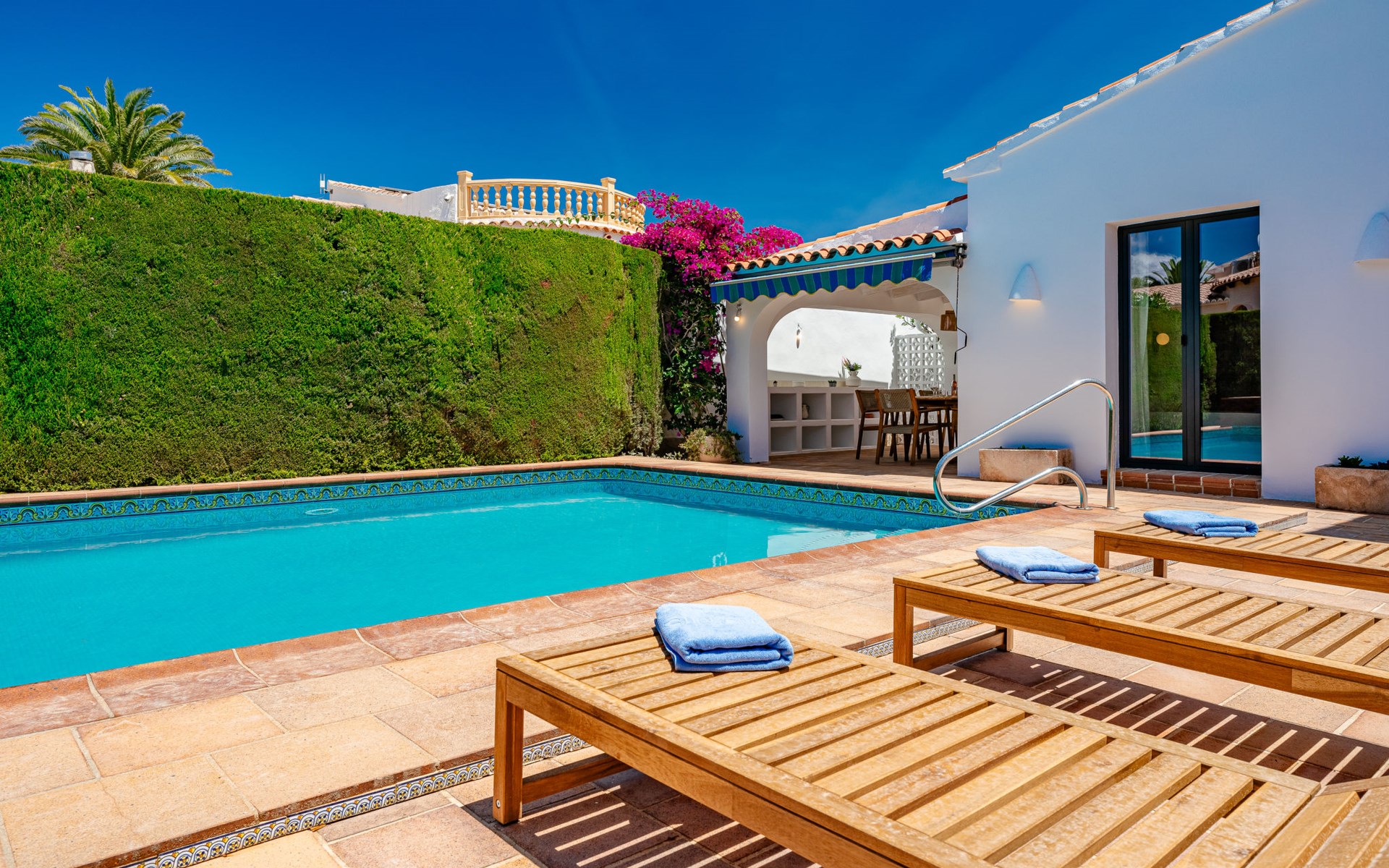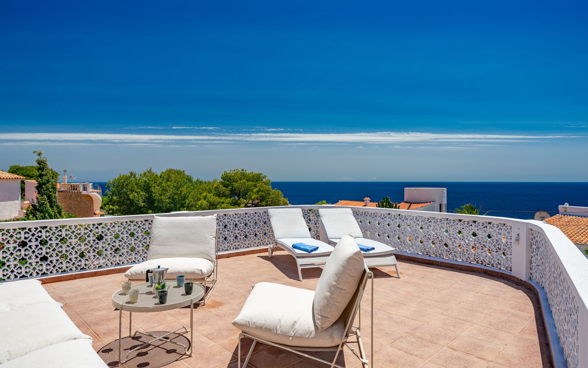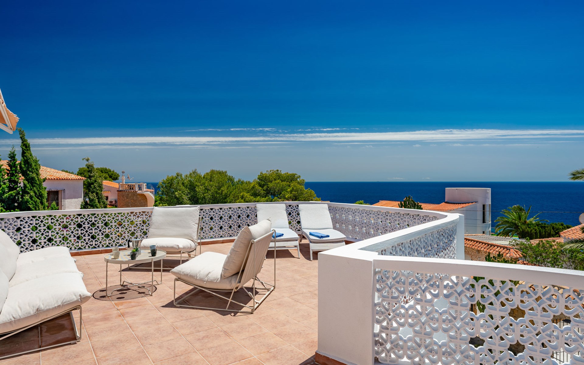 Zeer groot, zeer gezellig, zeer comfortabel huis "Amazing Views", van 2 verdiepingen. In de wijk Balcón al Mar, rustige, zonnige ligging tegen een helling, 4 km van zee, 4 km van het strand. Voor alleengebruik: planten en bomen, mooie tuin ter ontspanning, openluchtzwembad hoekig (10 x 5 m, 80 - 220 cm diepte, seizoensgebonden beschikbaarheid: 01.Jan. - 31.Dec.) met trap. Prieel, prieel, terras, tuinmeubelen, barbecue, parkeerplaats op het terrein. Winkel 1 km, supermarkt 1 km, restaurant 500 m, bakkerij 1 km, café 1 km, bushalte "Toscamar" 4.9 km, zandstrand "El Arenal" 6.5 km kiezelstrand "Cala Ambolo" 2.3 km, stenenstrand "Playa de la Granadella" 5 km. Jachthaven 6.5 km, jachthaven 6.5 km, golfterrein (9 holes) 7 km, surfschool 6 km, zeilschool 6 km, tennis 1 km. De eigenaar accepteert geen jeugdgroepen.