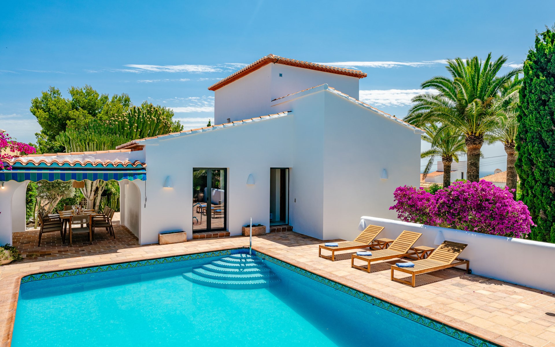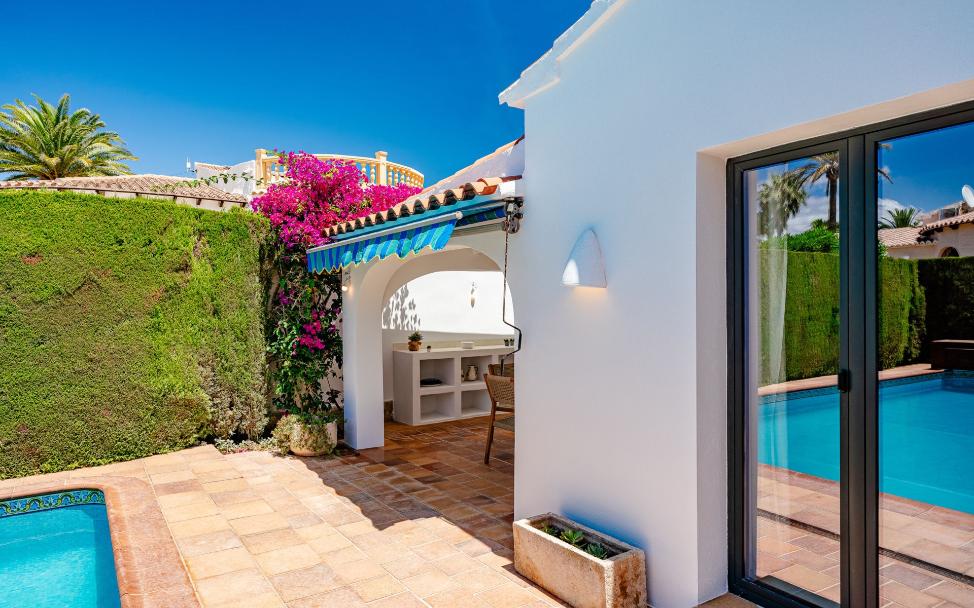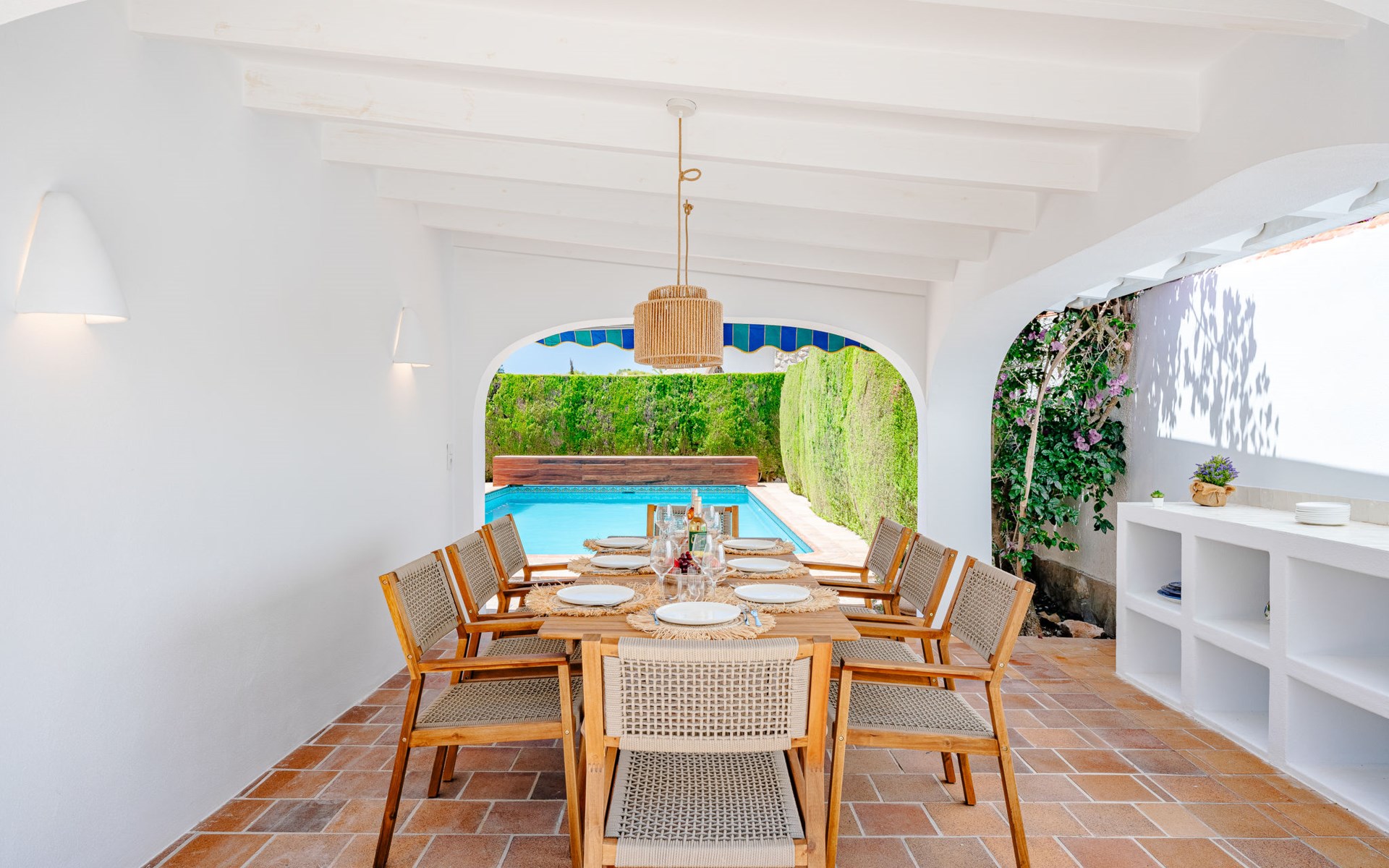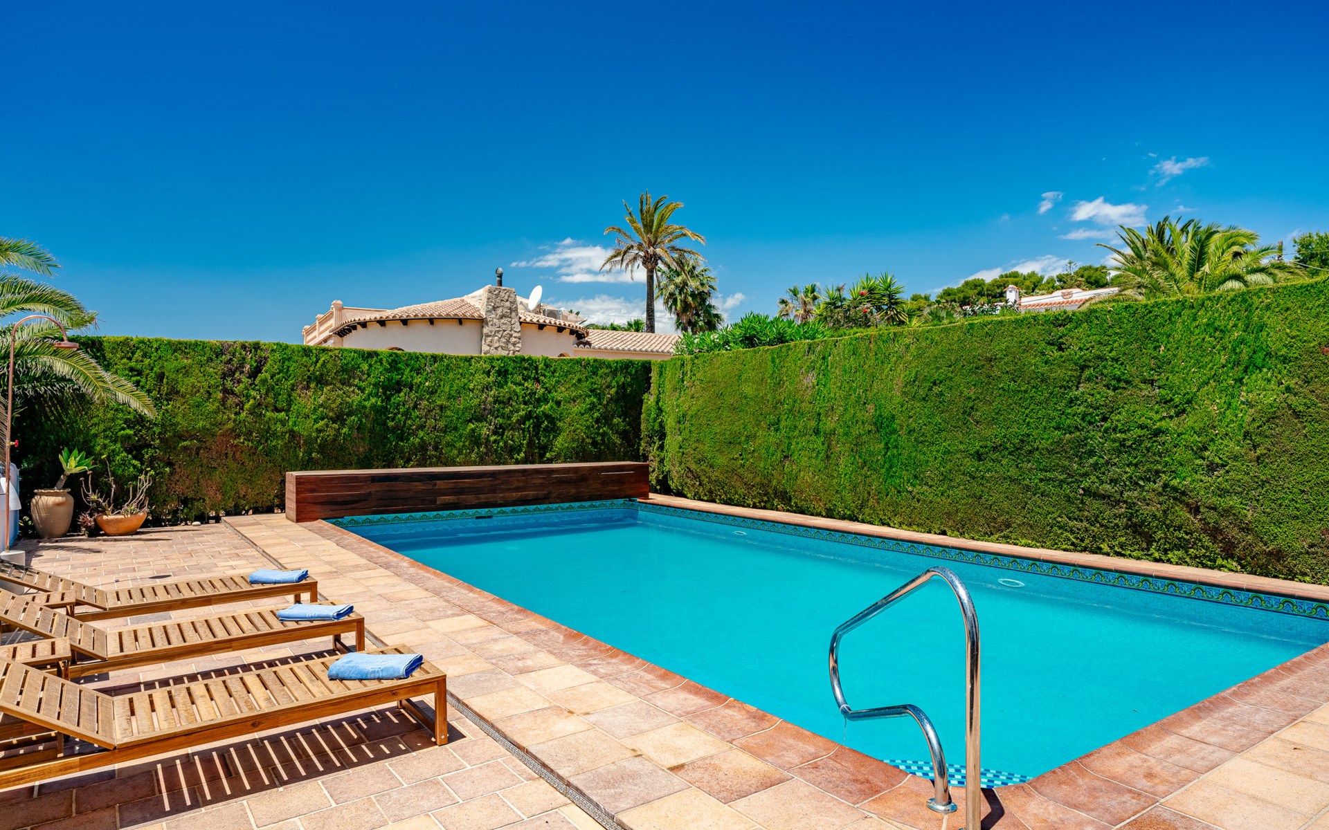 Zeer groot, zeer gezellig, zeer comfortabel huis "Amazing Views", van 2 verdiepingen. In de wijk Balcón al Mar, rustige, zonnige ligging tegen een helling, 4 km van zee, 4 km van het strand. Voor alleengebruik: planten en bomen, mooie tuin ter ontspanning, openluchtzwembad hoekig (10 x 5 m, 80 - 220 cm diepte, seizoensgebonden beschikbaarheid: 01.Jan. - 31.Dec.) met trap. Prieel, prieel, terras, tuinmeubelen, barbecue, parkeerplaats op het terrein. Winkel 1 km, supermarkt 1 km, restaurant 500 m, bakkerij 1 km, café 1 km, bushalte "Toscamar" 4.9 km, zandstrand "El Arenal" 6.5 km kiezelstrand "Cala Ambolo" 2.3 km, stenenstrand "Playa de la Granadella" 5 km. Jachthaven 6.5 km, jachthaven 6.5 km, golfterrein (9 holes) 7 km, surfschool 6 km, zeilschool 6 km, tennis 1 km. De eigenaar accepteert geen jeugdgroepen.