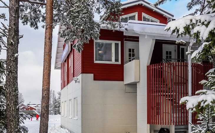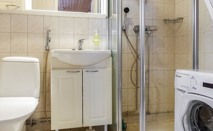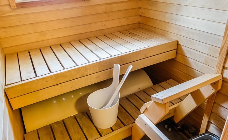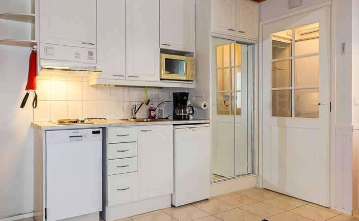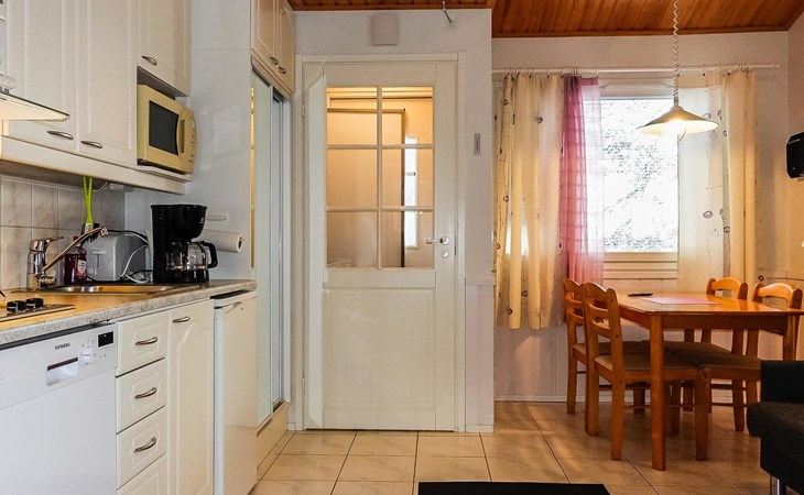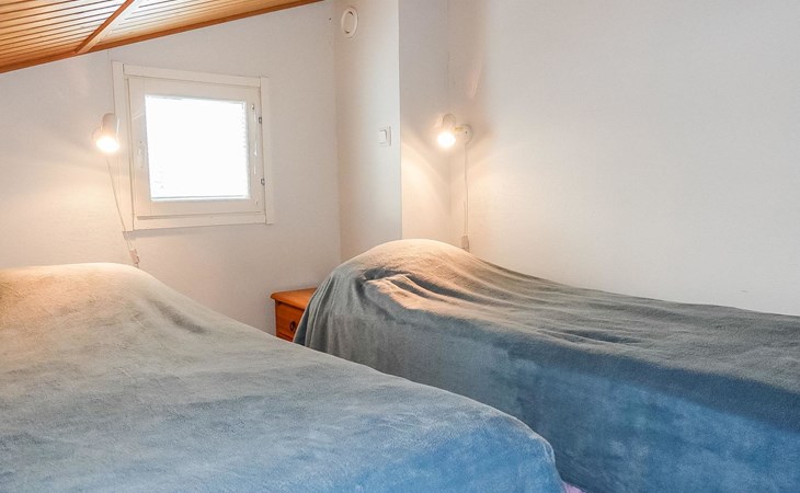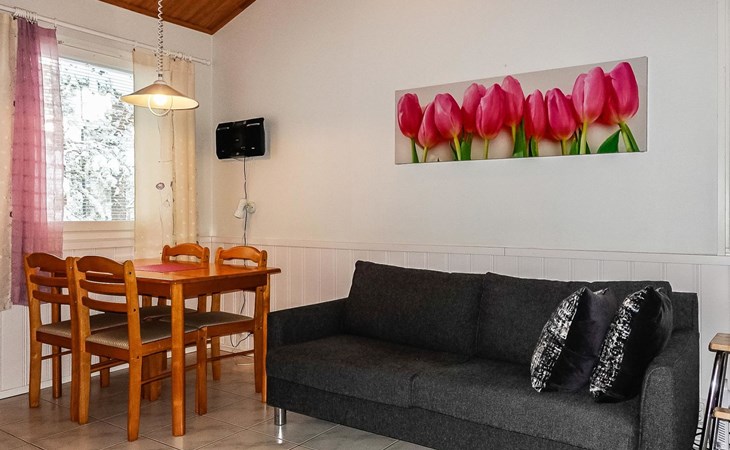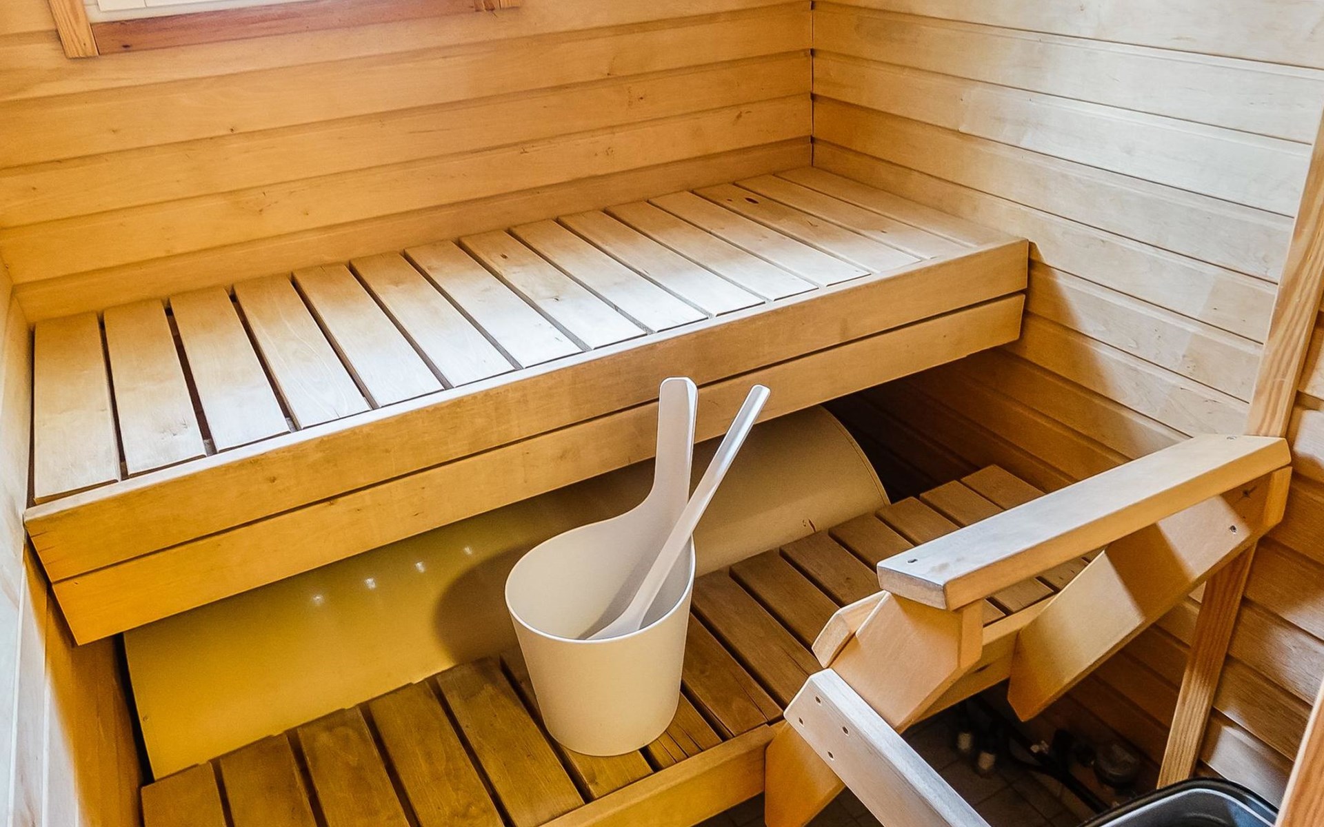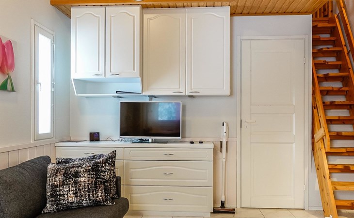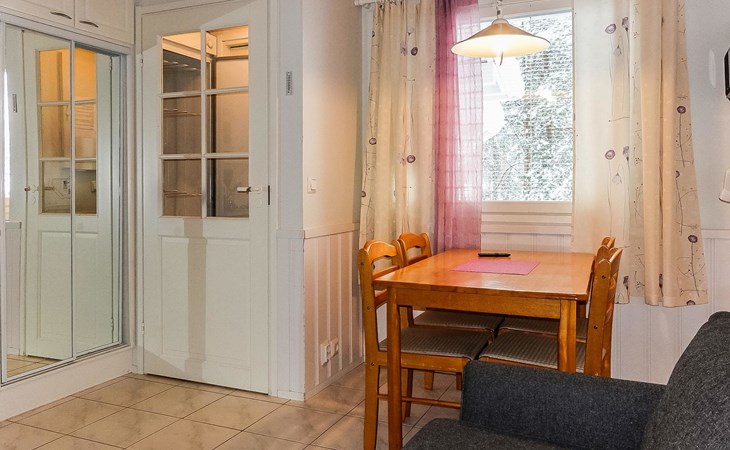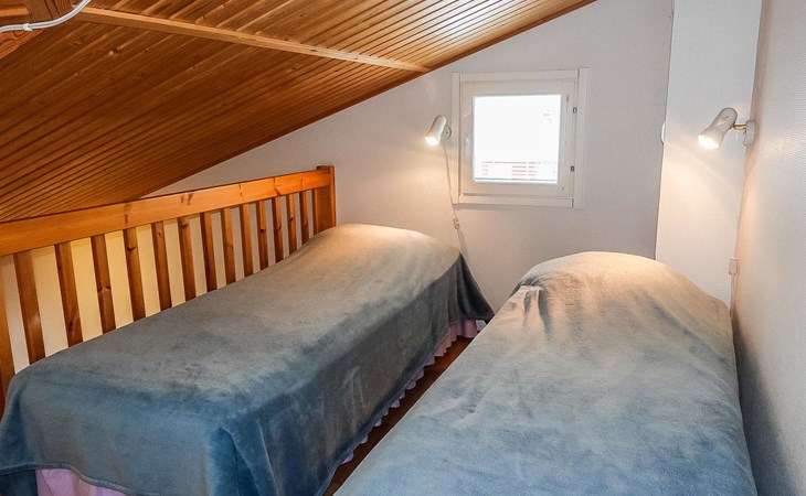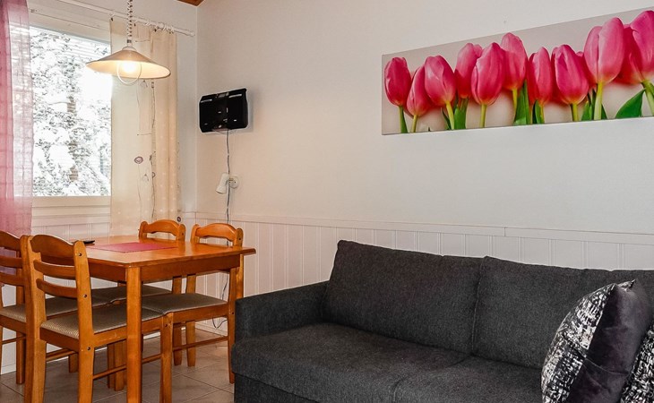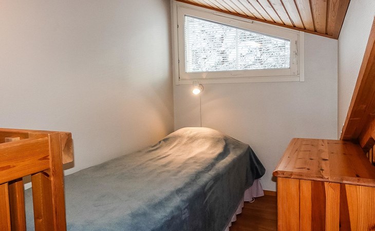 Wood and stone-built corner apartment on the second floor of the apartmenthotel, built in 2002, living area with 1 sofa bed, sleeping loft (steep stairs, low ceiling) 3 beds, sauna (electric stove), bathroom.