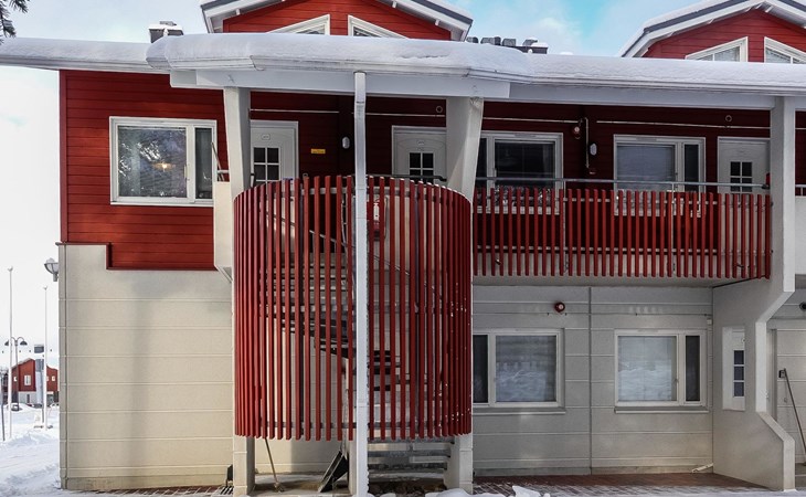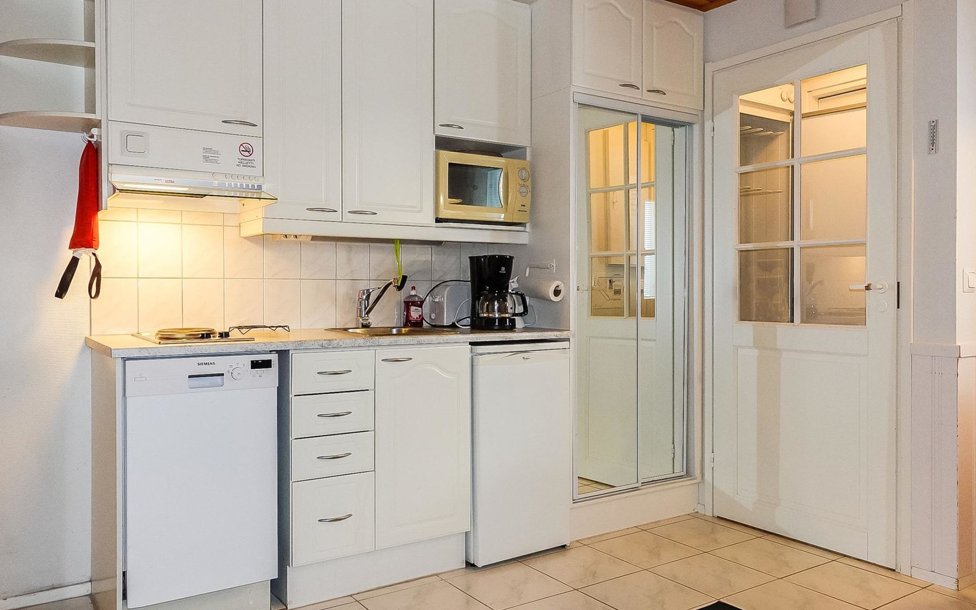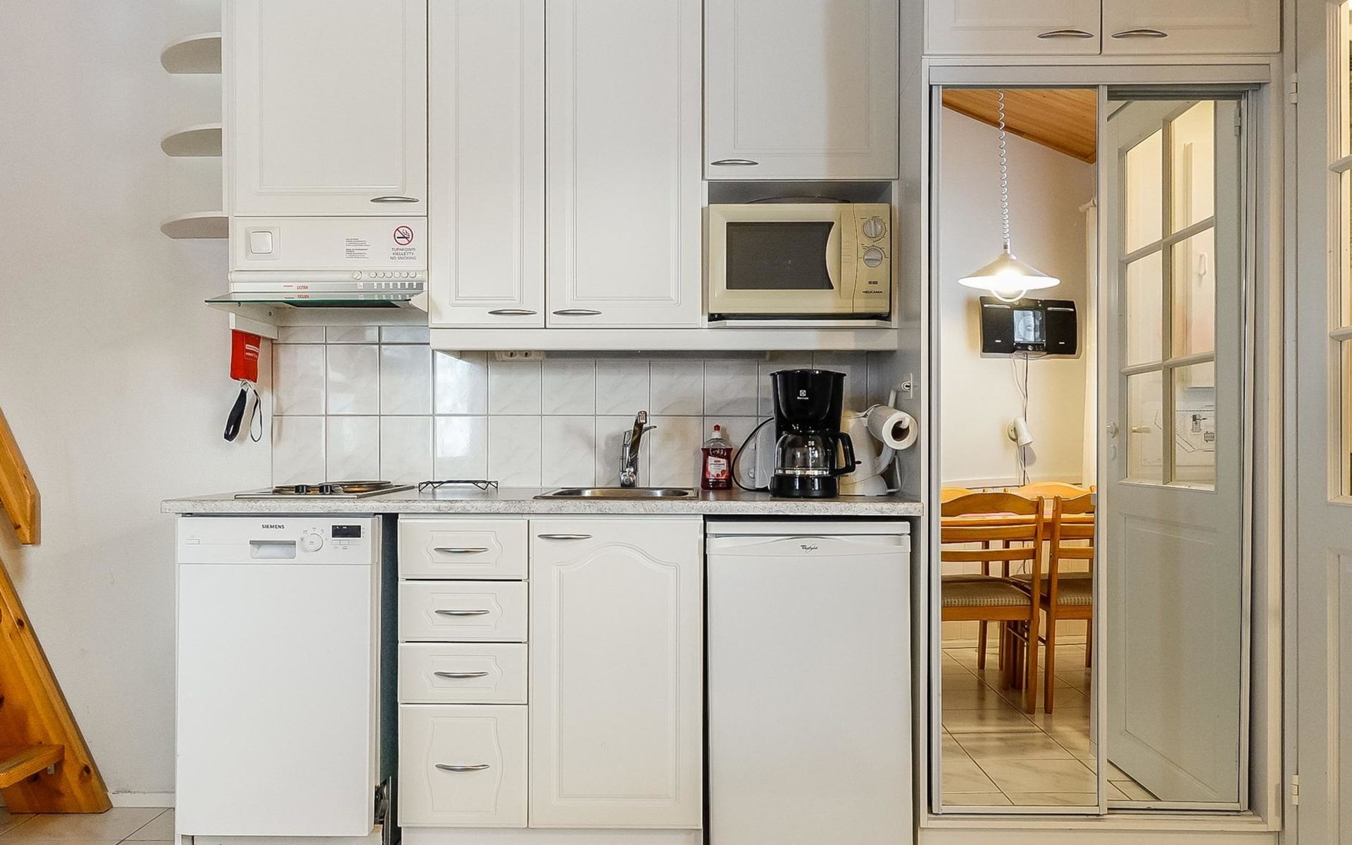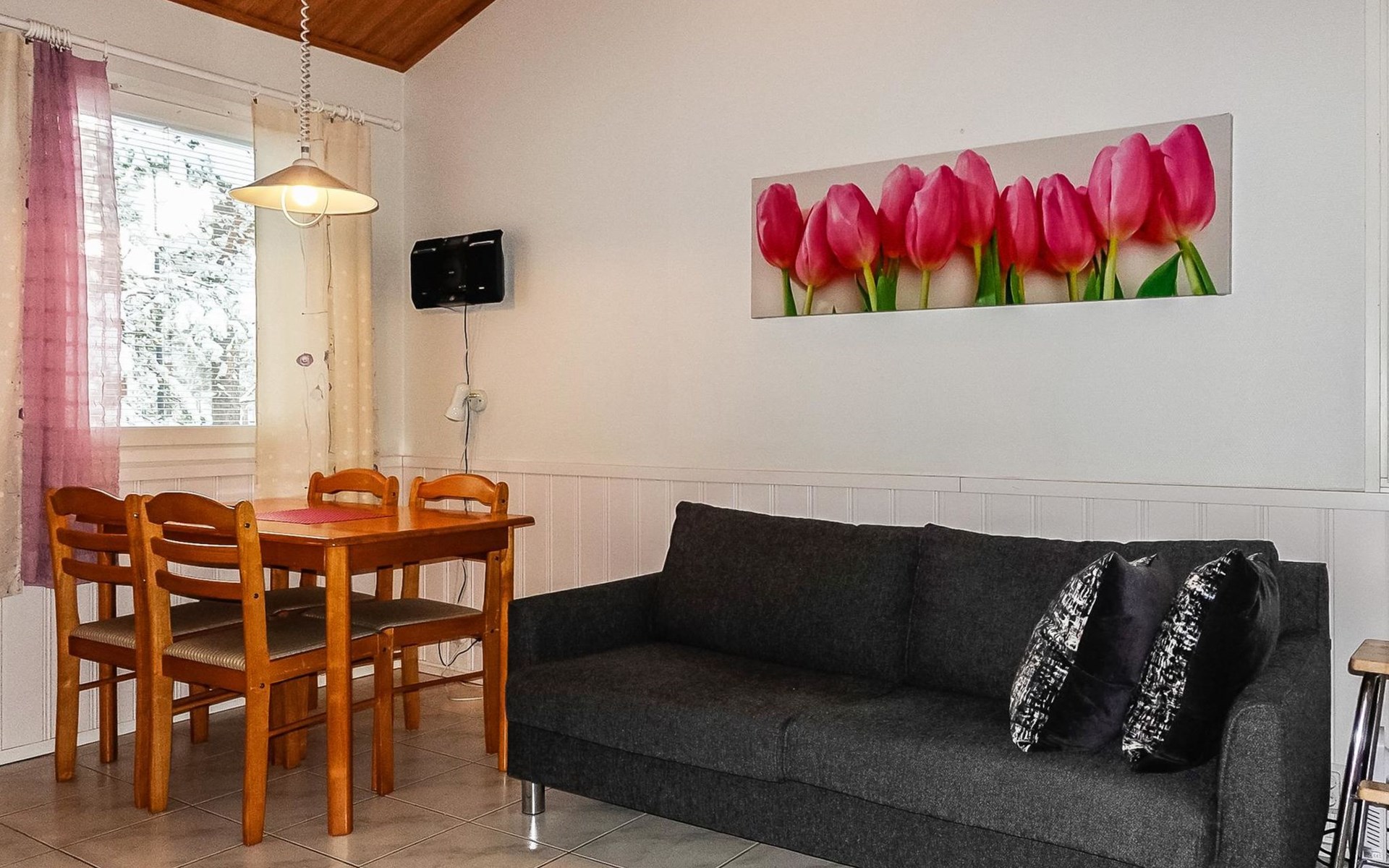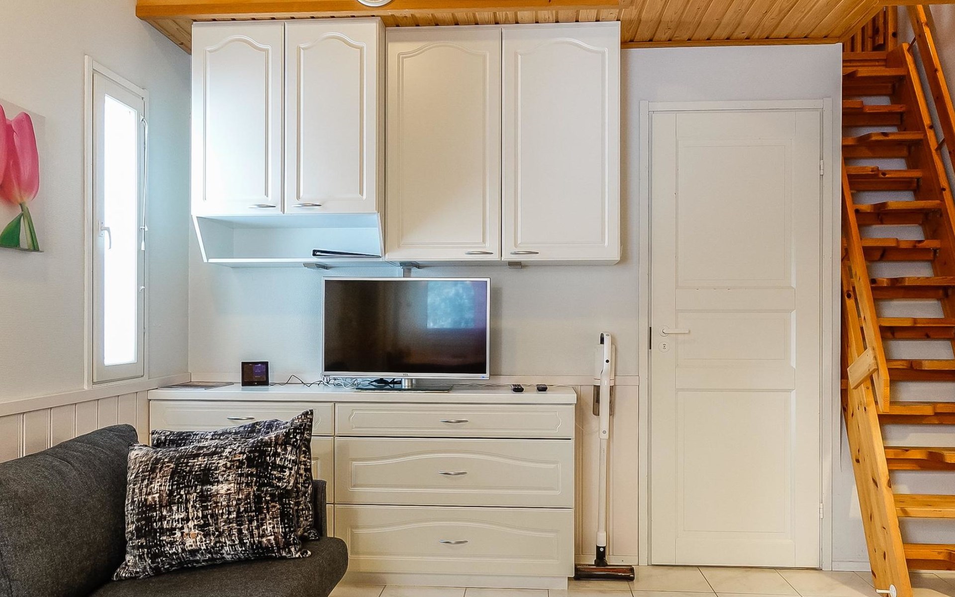 Wood and stone-built corner apartment on the second floor of the apartmenthotel, built in 2002, living area with 1 sofa bed, sleeping loft (steep stairs, low ceiling) 3 beds, sauna (electric stove), bathroom.