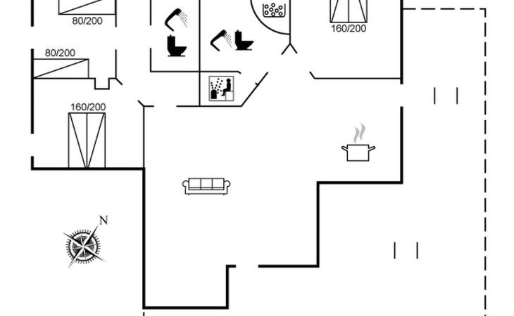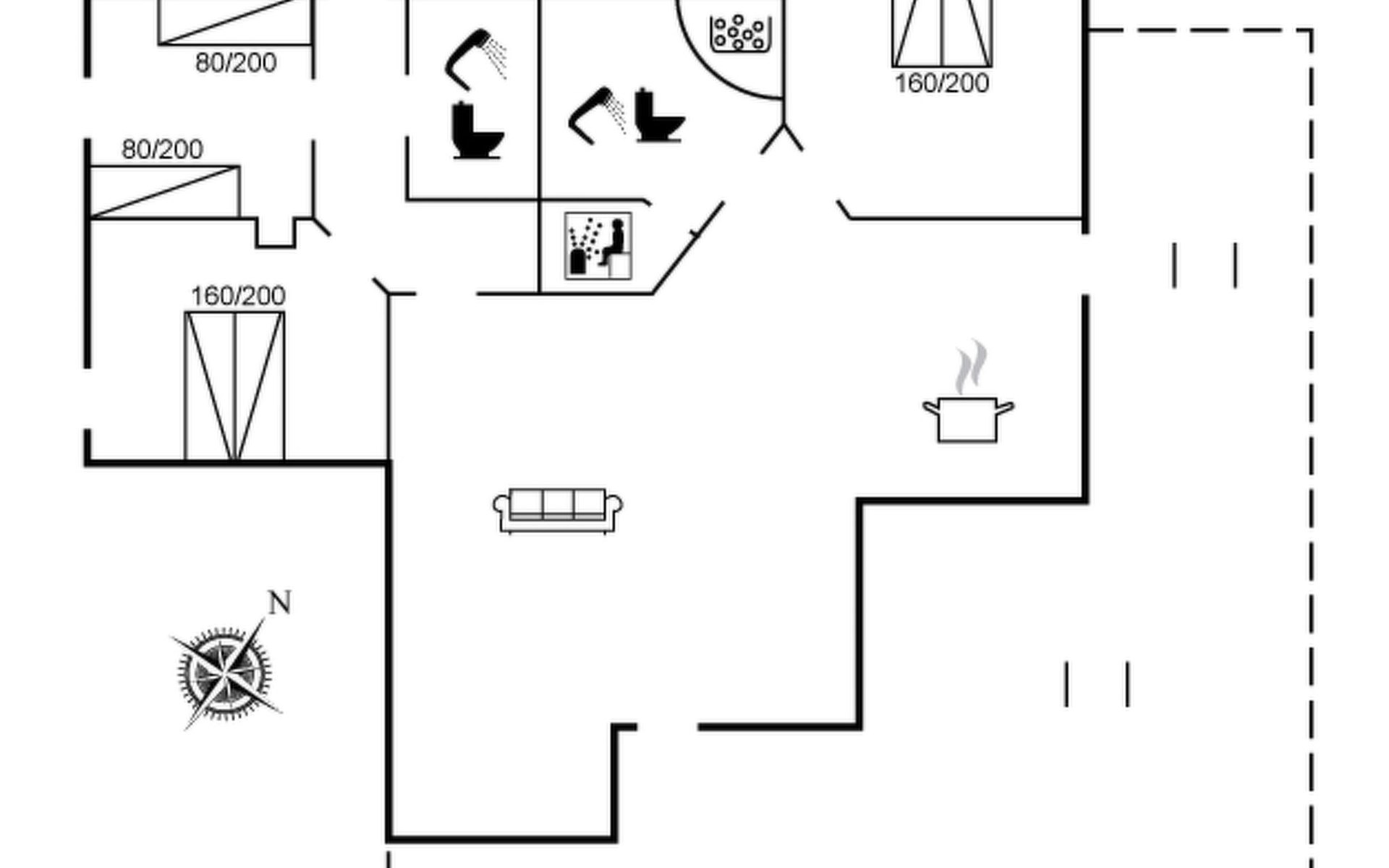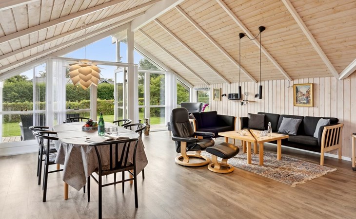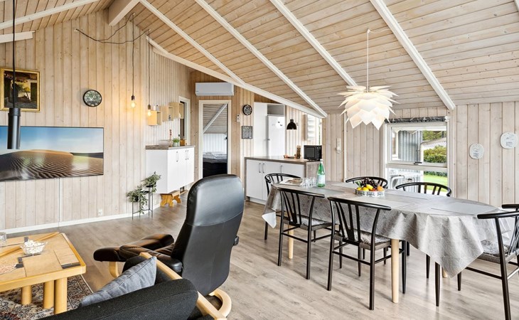Eengezinswoning, bouwjaar 1994. 300 m van zee. Voor alleengebruik: terrein 900 m2, verzorgde tuin. In het huis: sauna, wasmachine, droger. Parkeerplaats bij het huis. Levensmiddelenwinkel 4 km. Golfterrein 10 km. De eigenaar accepteert geen jeugdgroepen.