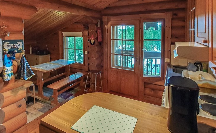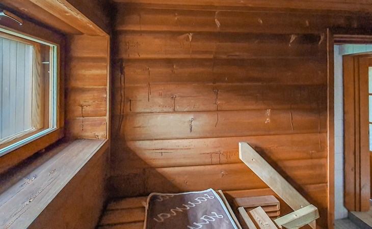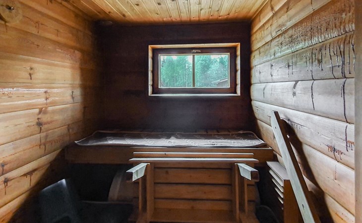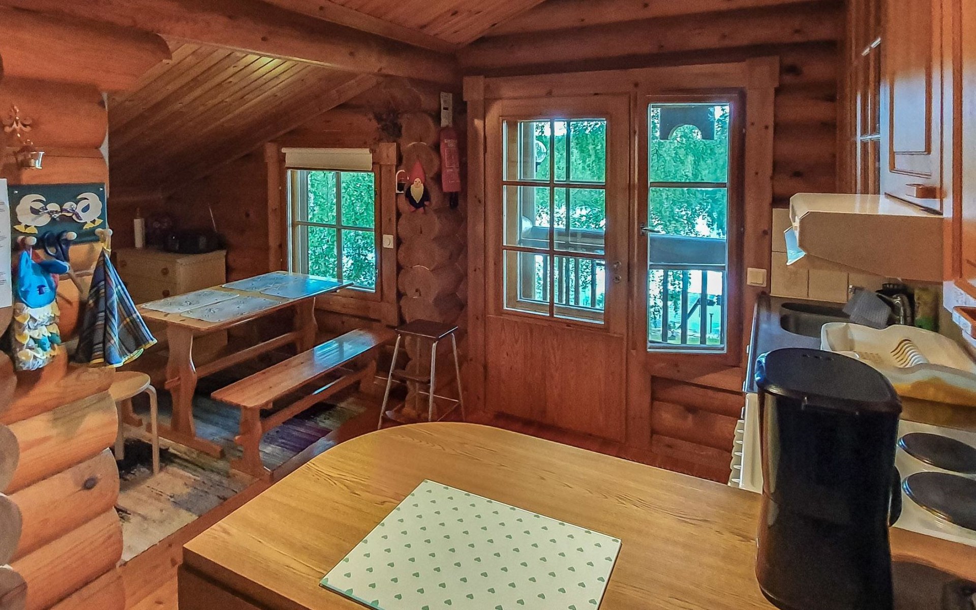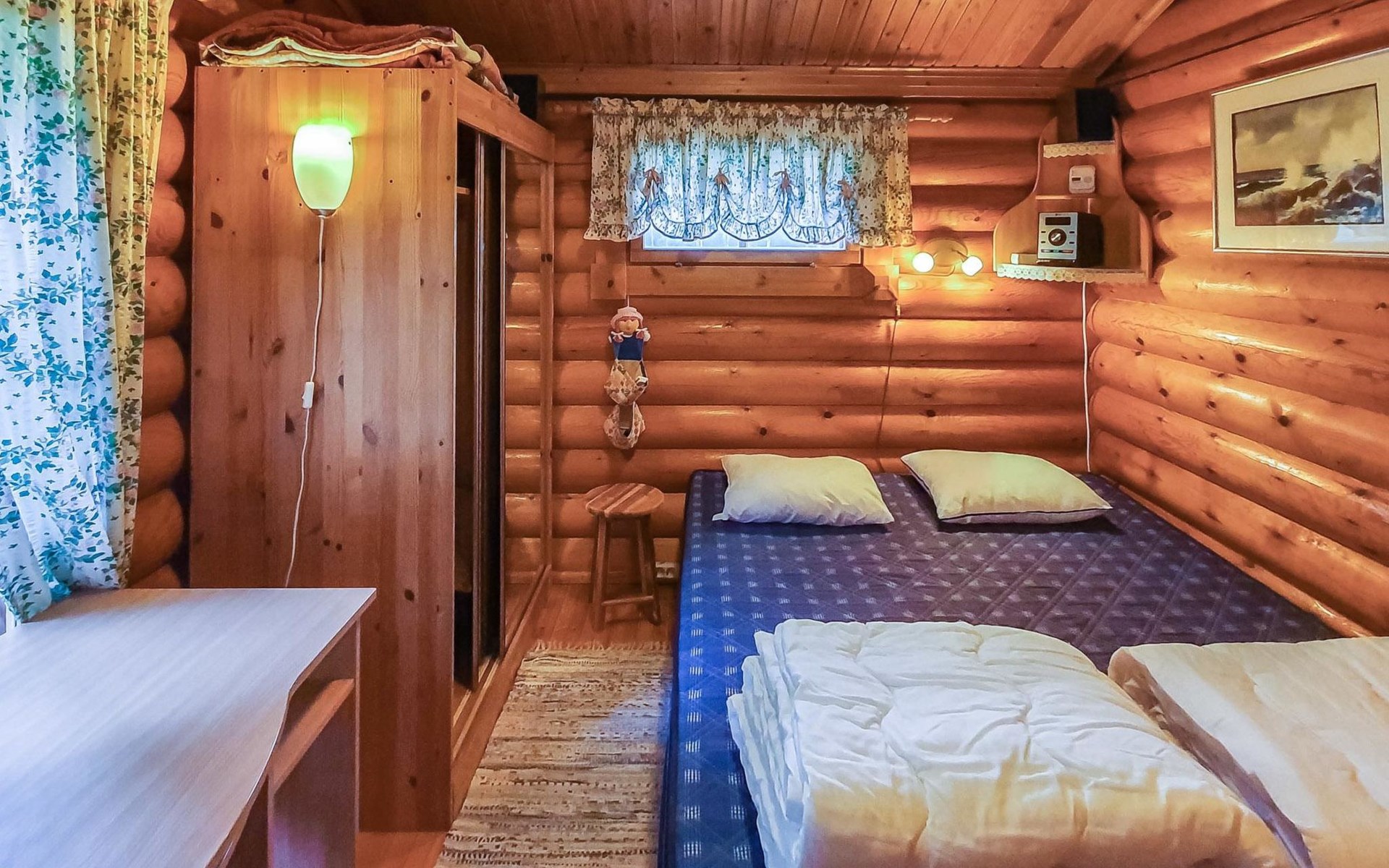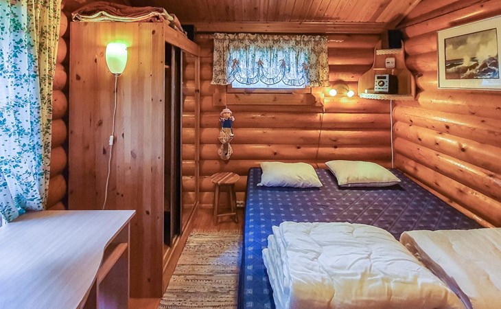 Log cottage 1992, kitchen 1 extra bed, living room, bedroom double bed, sleeping loft (sloping ceilings, height less than 160 cm , steep stairs !!) 2 mattresses, sauna (electric stove), washroom, dressing room, porch.
