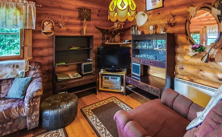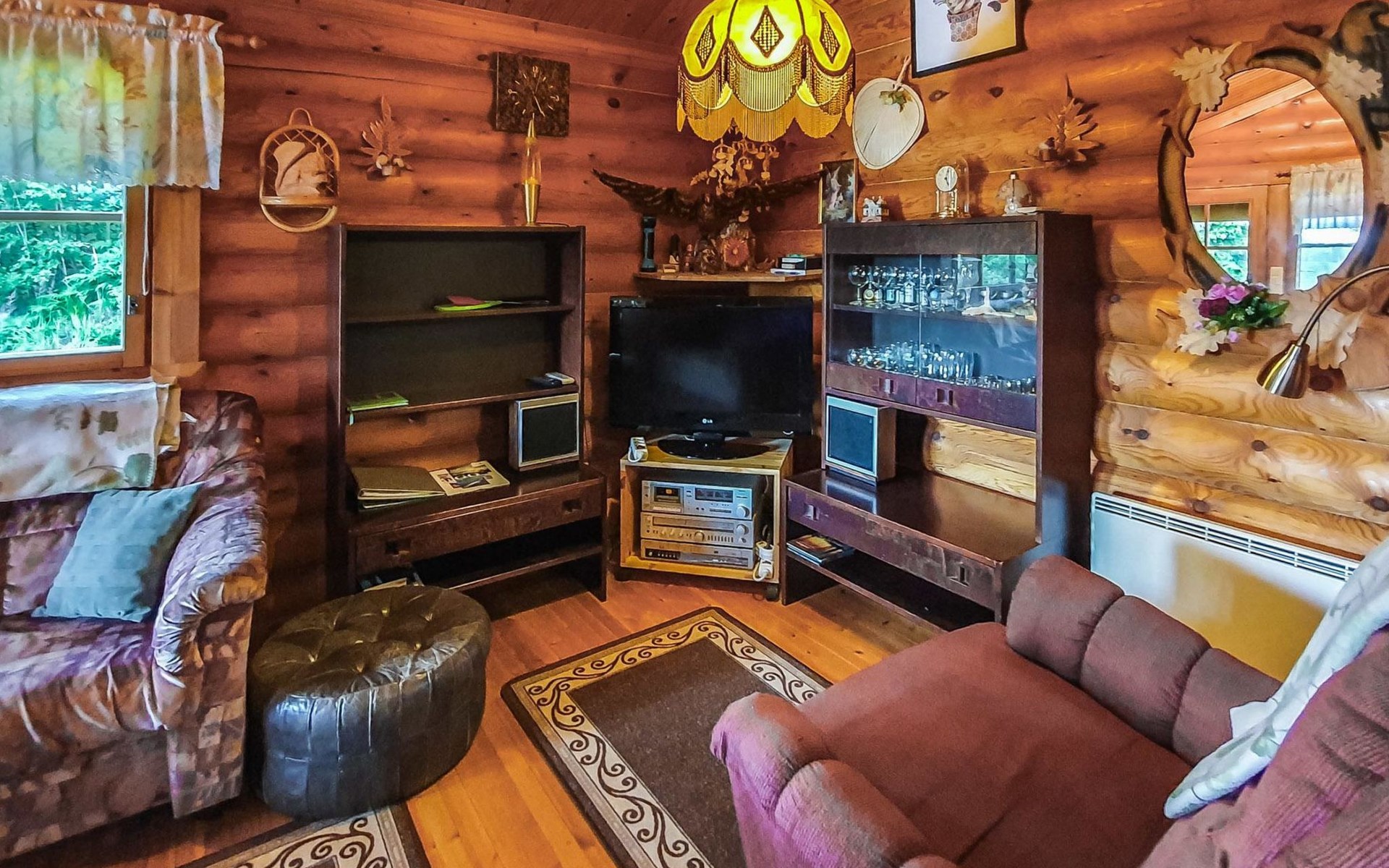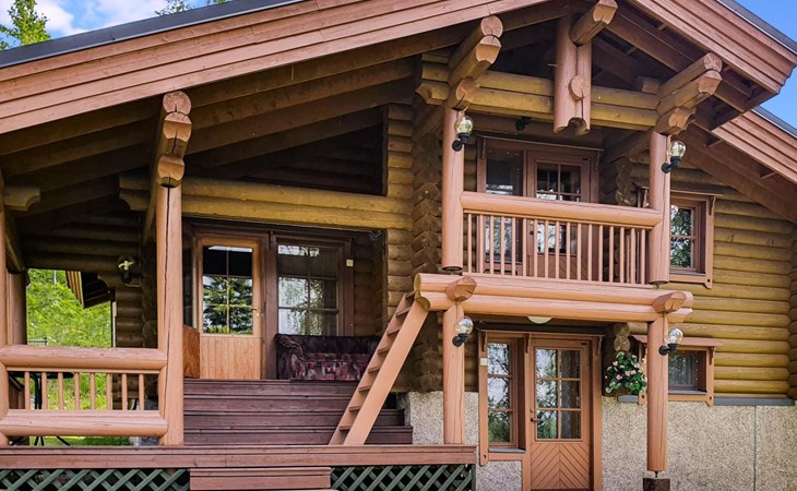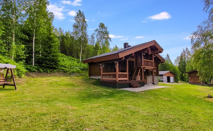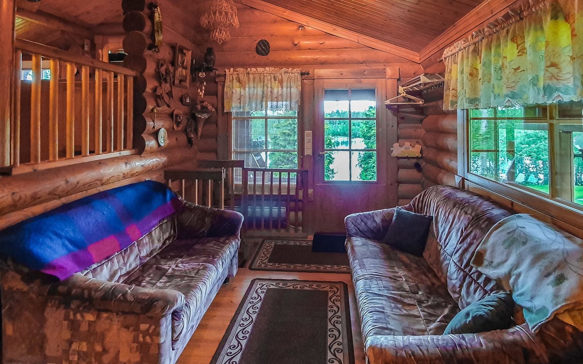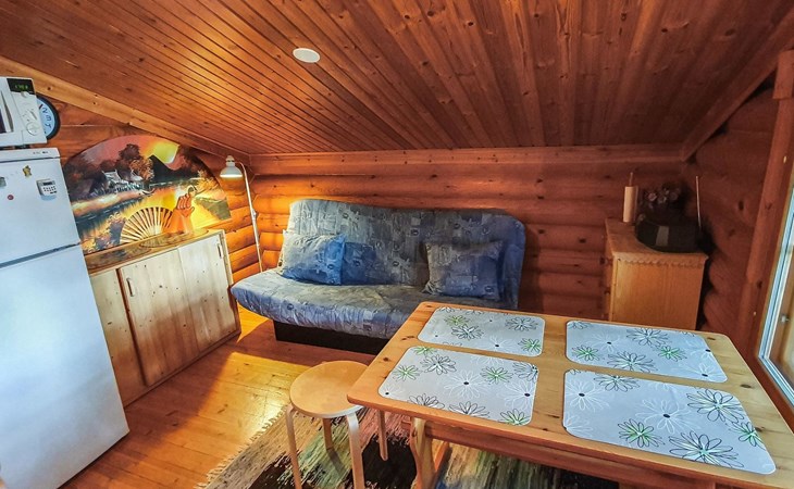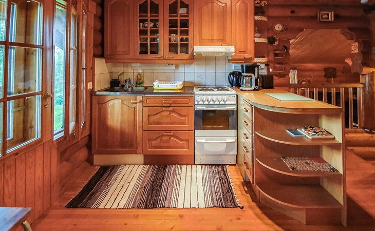 Log cottage 1992, kitchen 1 extra bed, living room, bedroom double bed, sleeping loft (sloping ceilings, height less than 160 cm , steep stairs !!) 2 mattresses, sauna (electric stove), washroom, dressing room, porch.