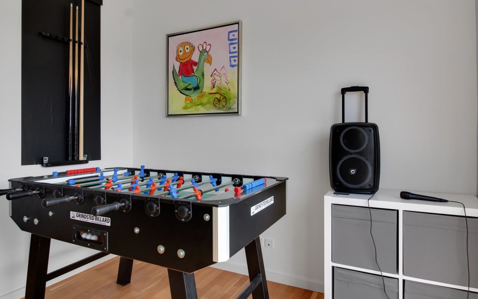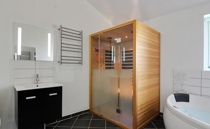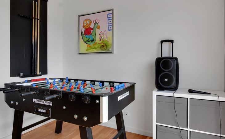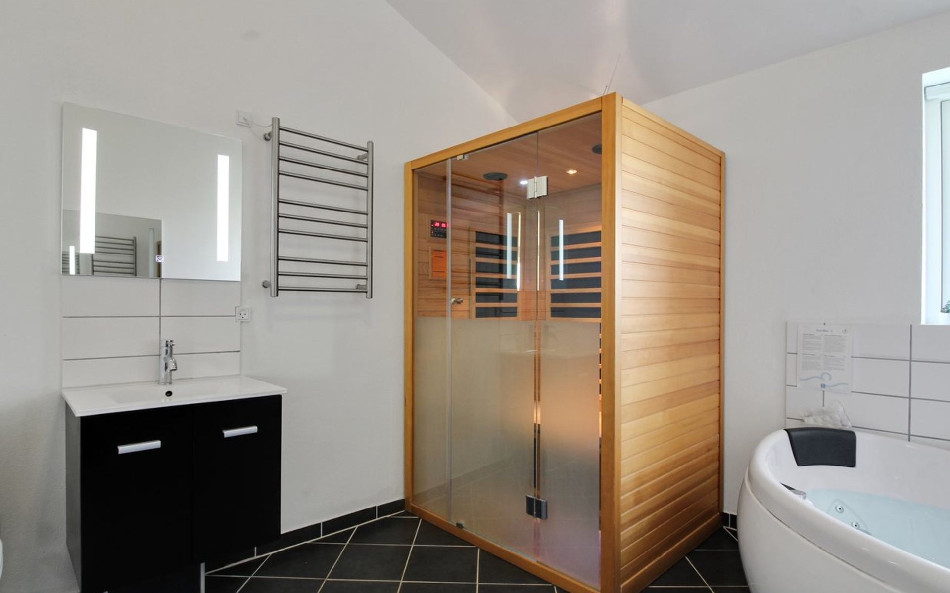 Eengezinswoning, bouwjaar 2016. 1.6 km van zee. Voor alleengebruik: wild terrein 2.318 m2. Terras (35 m2), kinderspeelplaats (schommel). In het huis: sauna, tafelvoetbal, trampoline, wasmachine, droger. Parkeerplaats bij het huis. Levensmiddelenwinkel 800 m. Golfterrein 6 km. De eigenaar accepteert geen jeugdgroepen.