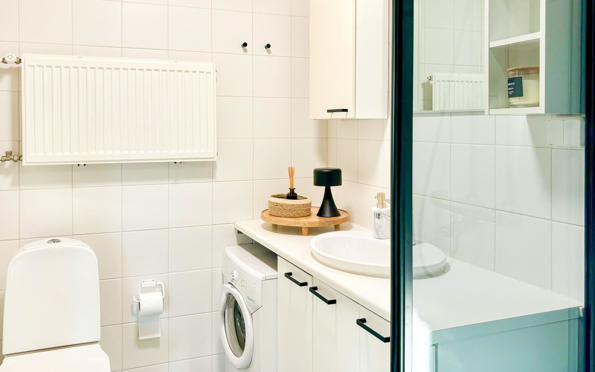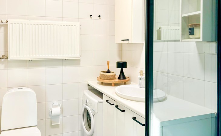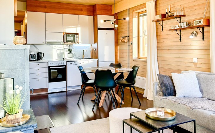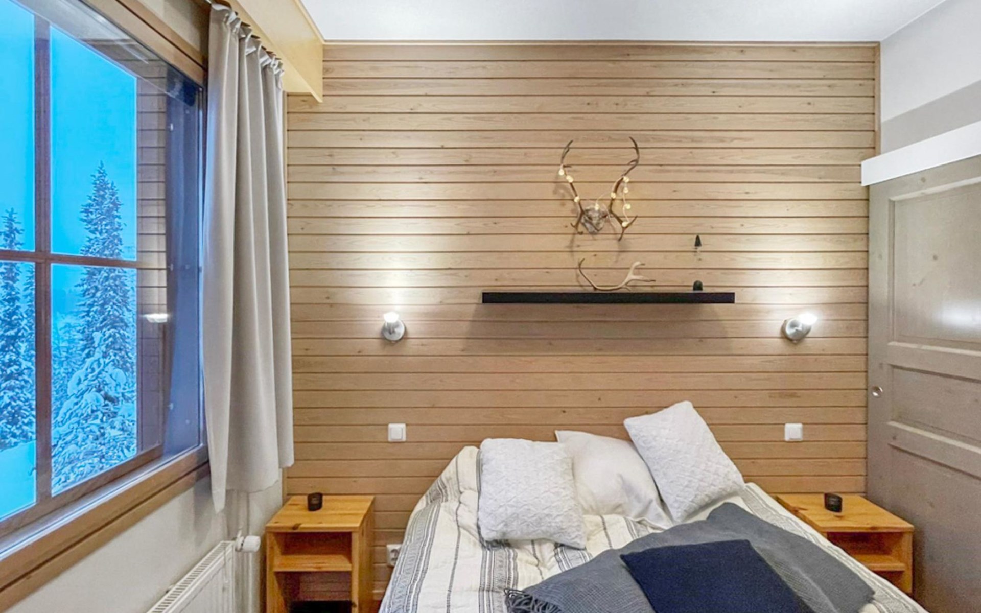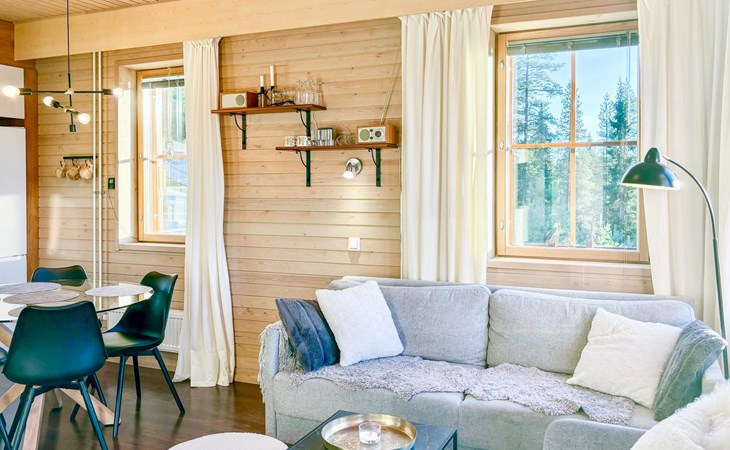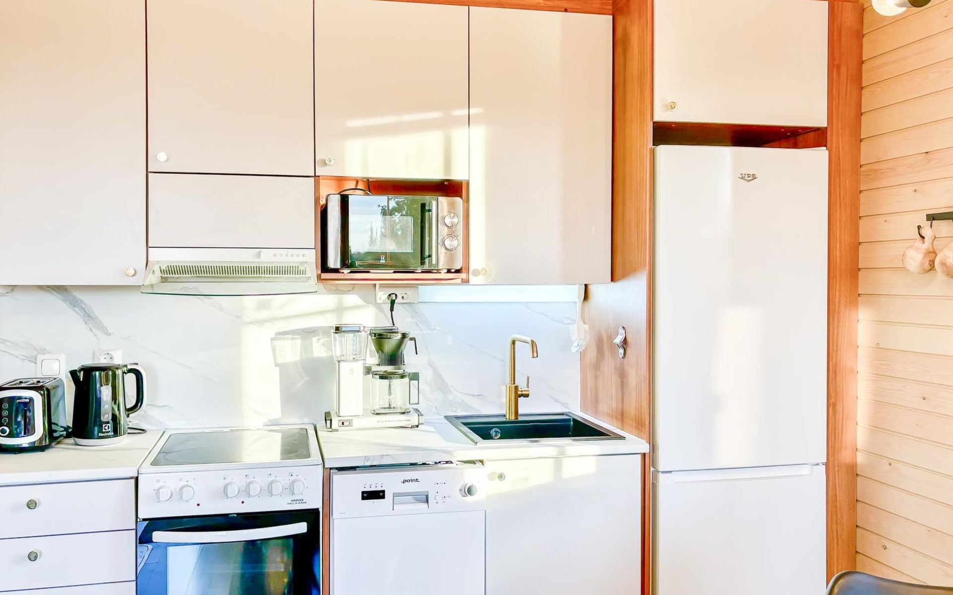 The apartment is an apartment on the ground floor of a 2-story building, with a view from the windows and a small balcony facing Talvijärvi.