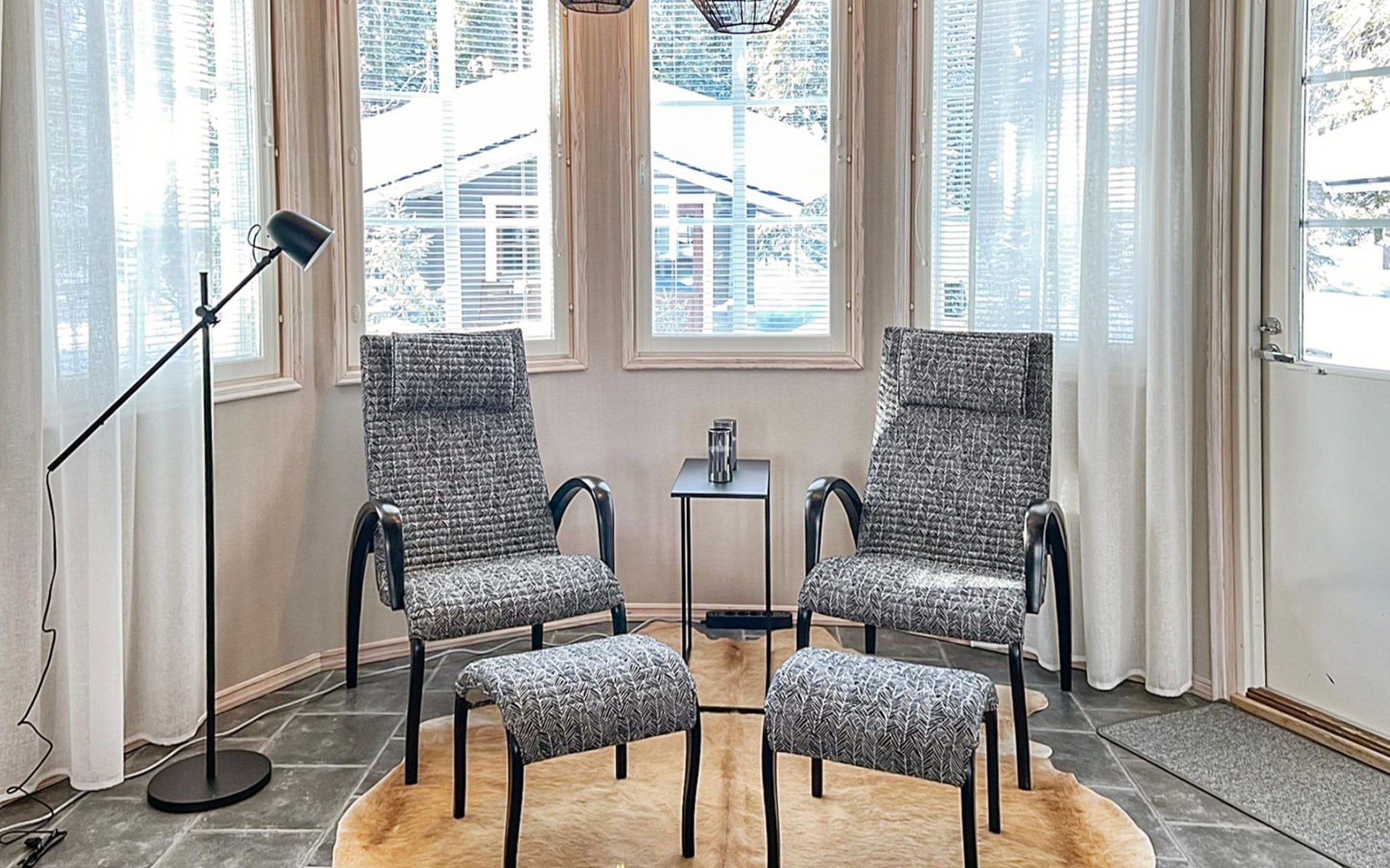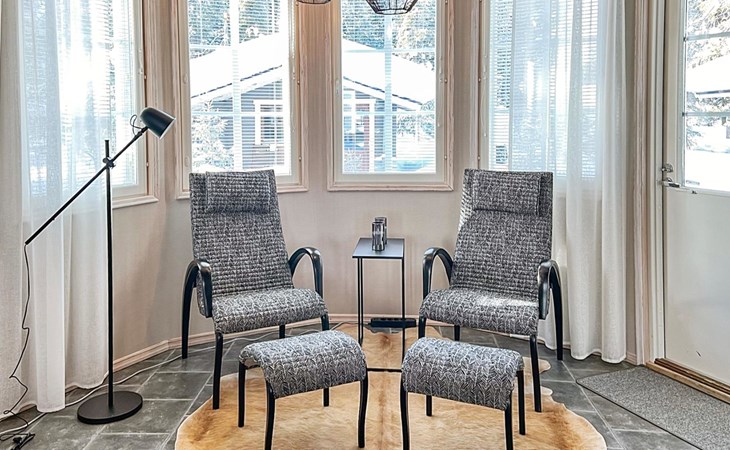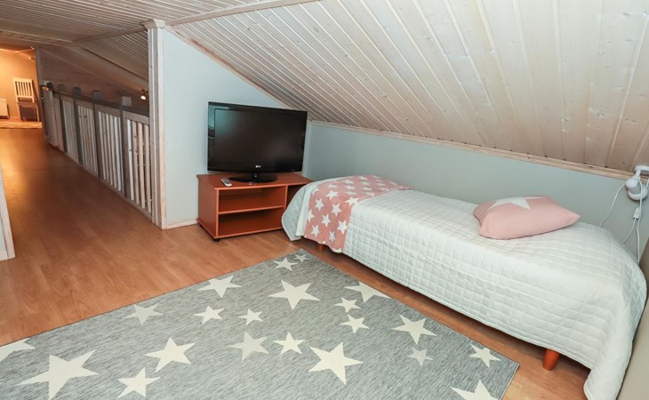 A Weber electric grill and a smoking oven. Electric car charging possibility for extra fee. Cottage and holiday apartment area on Pyrypolku road. Rukan Taikavuosseli is situated at the end of the road. There are 2 bedrooms in the apartment and also 2 alcoves on the loft so totally there are 4 separate sleeping rooms.