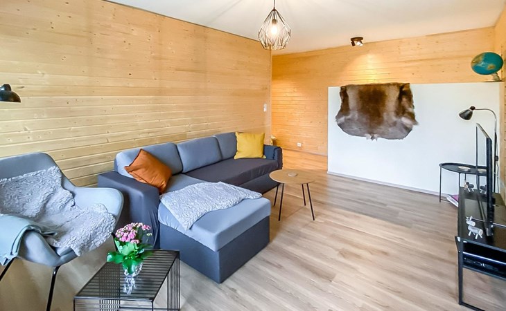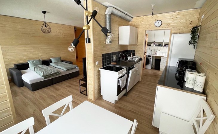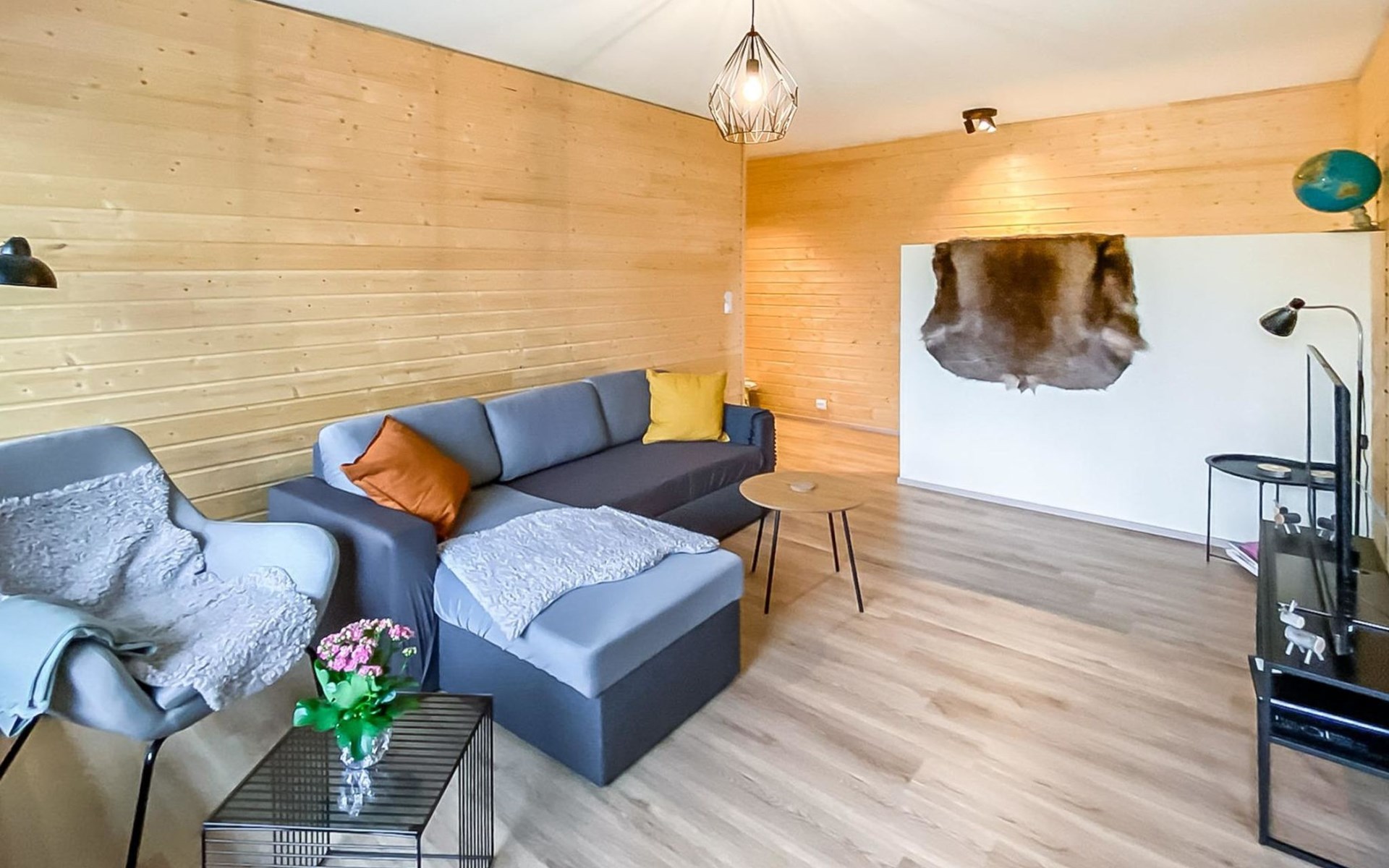 The Apartment can accommodate up to 4 people; Living room with sofa bed, bedroom with double bed, kitchenette, sauna, washroom, separate WC, balcony and storage.