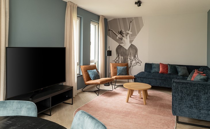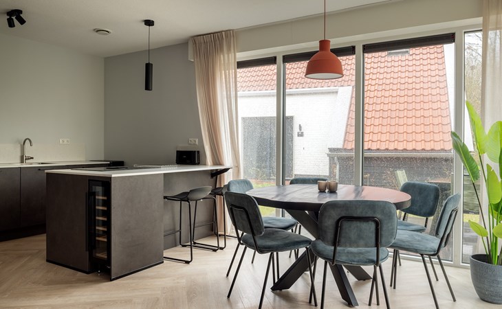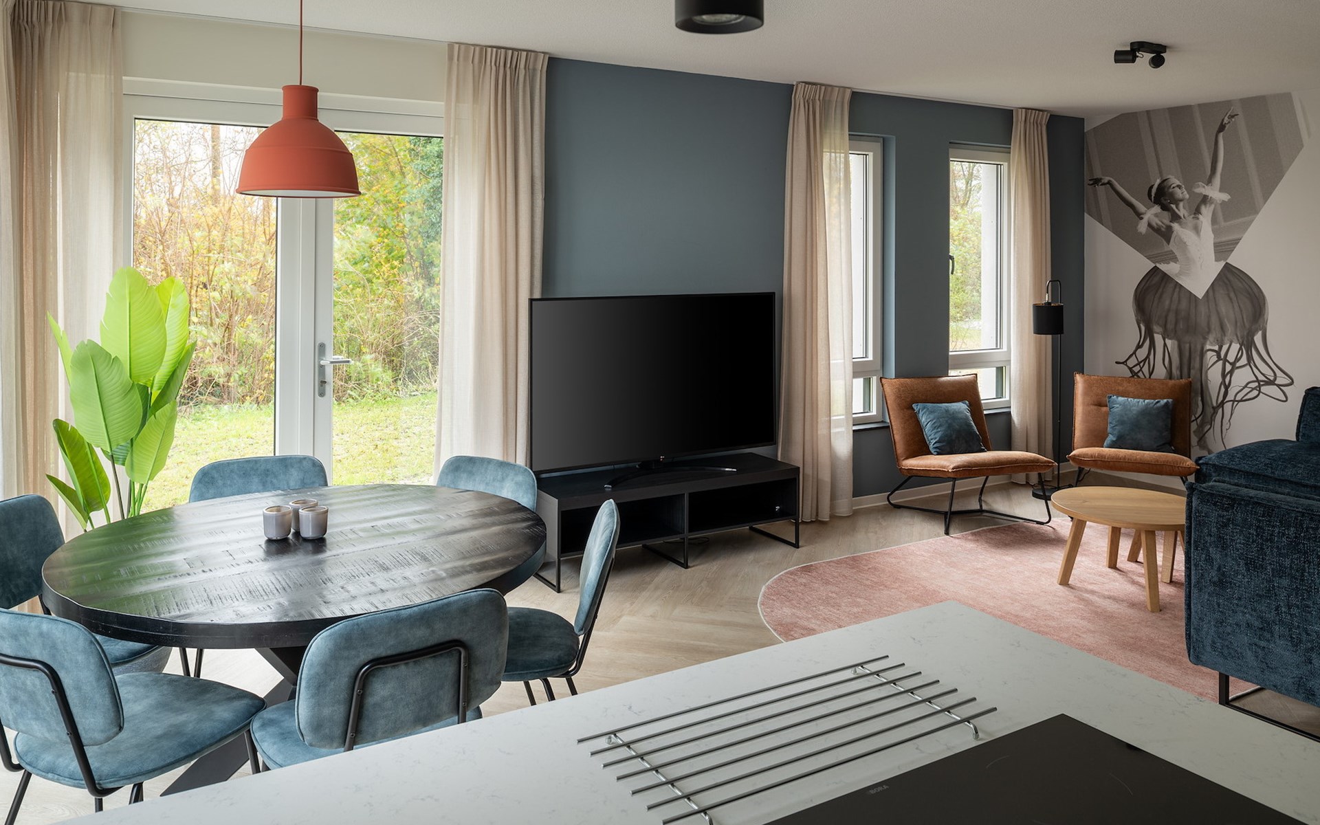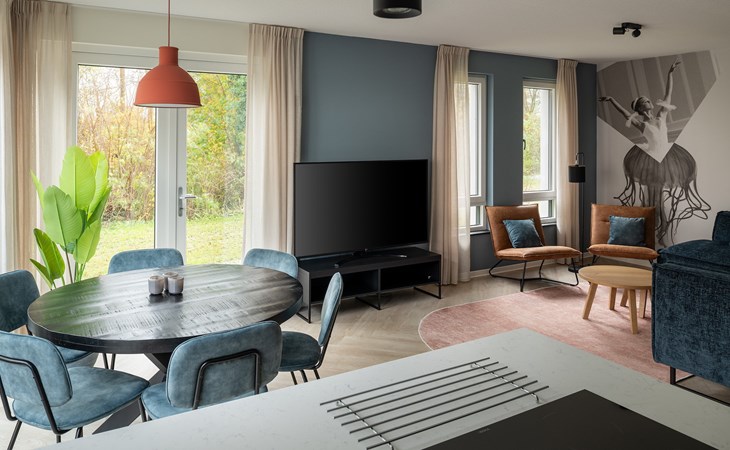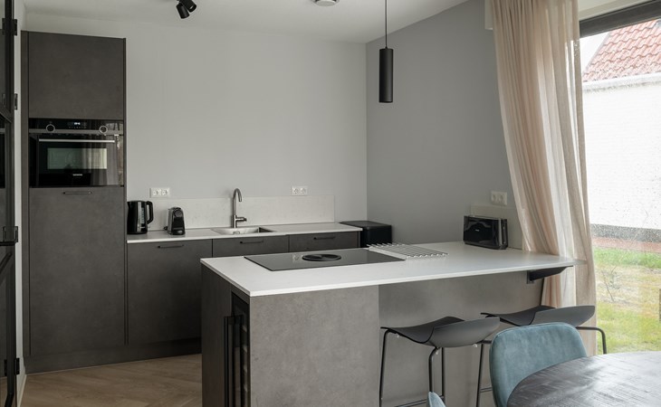 De woonkamer is voorzien van een sfeervolle zithoek met een smart-tv welke je de mogelijkheid biedt om je favoriete content te streamen. Verder is er een eetgedeelte en een moderne keuken. De keuken is van alle gemakken voorzien en beschikt onder andere over een kookeiland met een Bora kookplaat, Nespresso apparaat en een wijnkoelkast. Het hoeft je aan niets te ontbreken tijdens je verblijf op Dormio Resort Nieuwvliet-Bad!