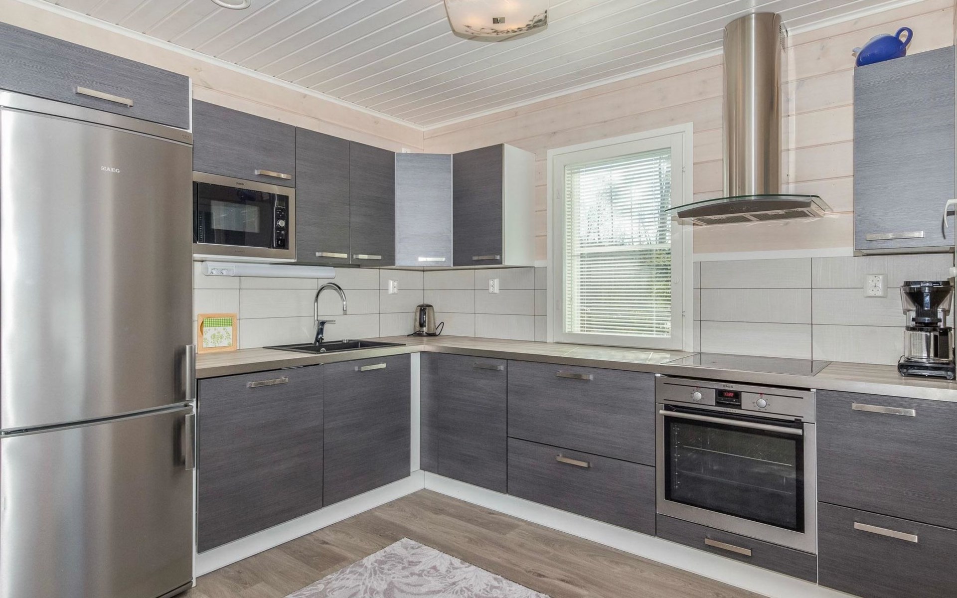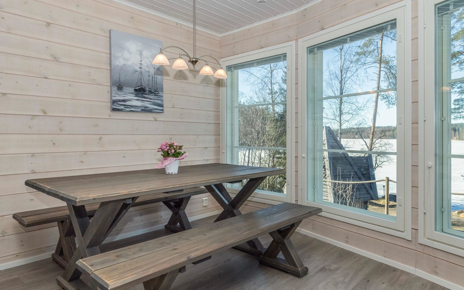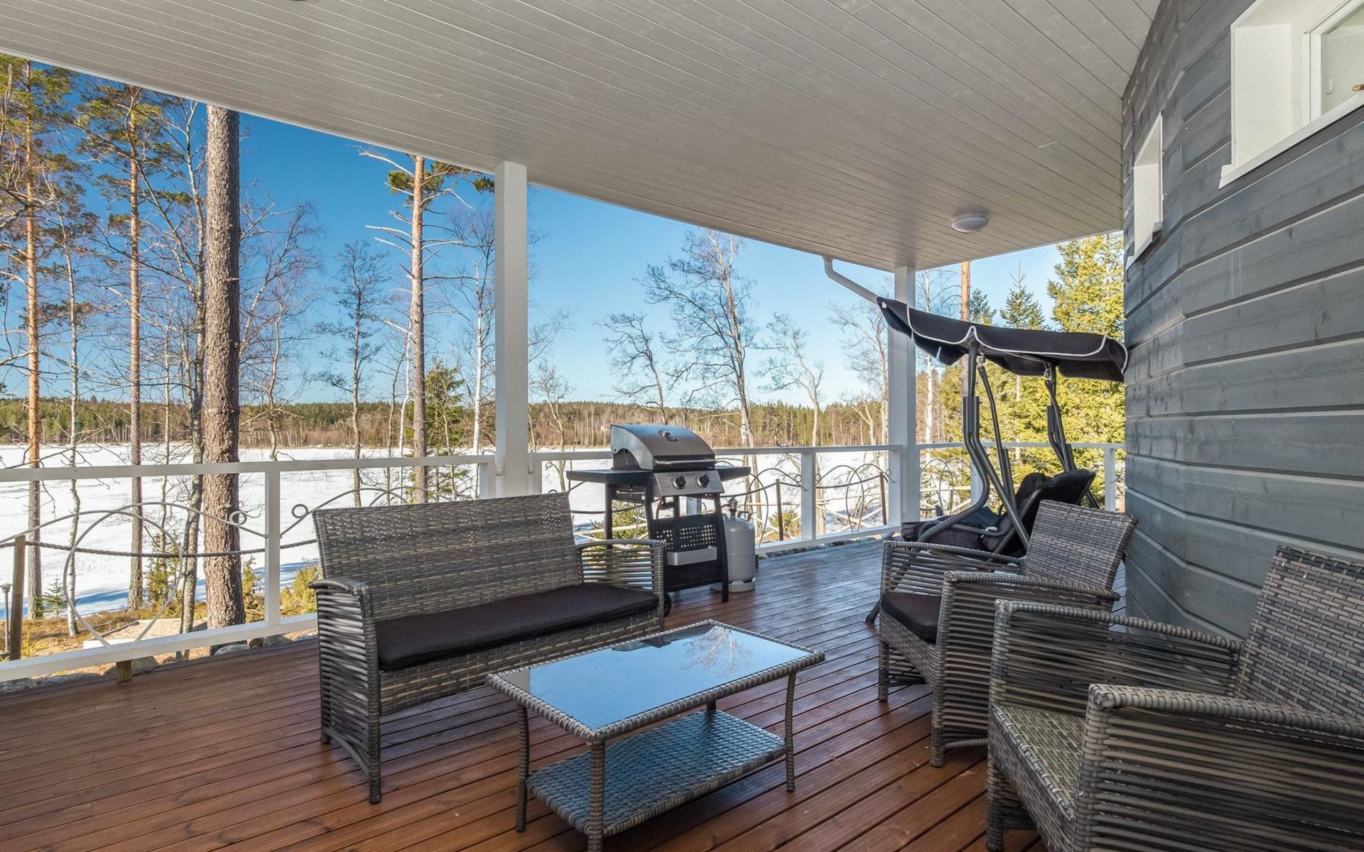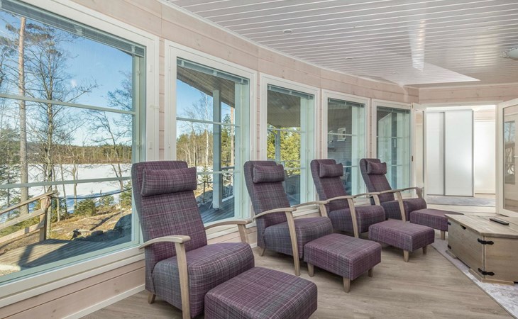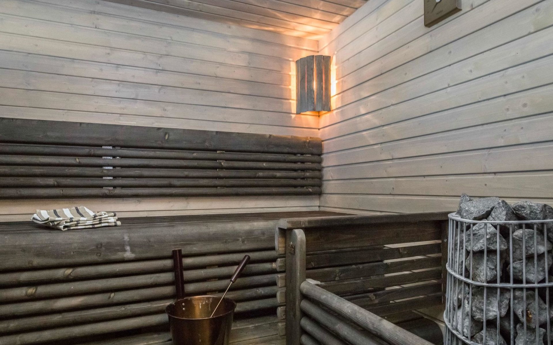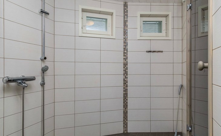 Wooden villa 2014, large livingroom/kitchen with two extra beds on the sofa bed, two bedrooms (10 m²), two beds in both, sofa bed for two in the sauna building, two separate WC’s, washroom and sauna (electric sauna stove), large covered terrace.