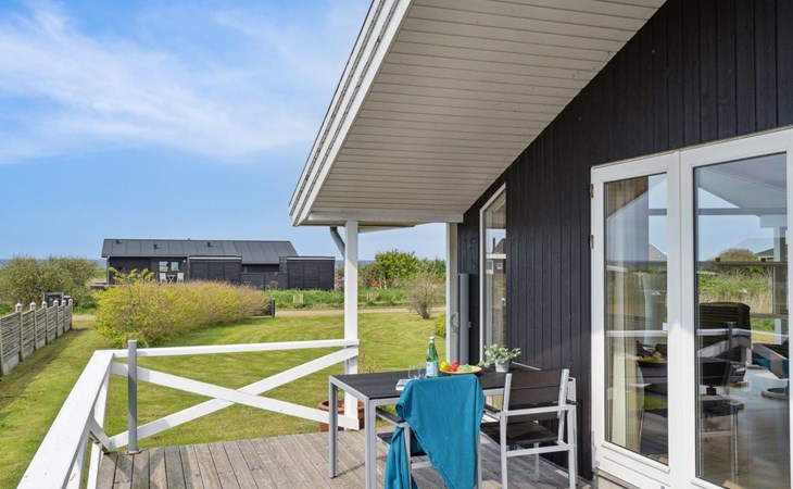 Eengezinswoning, bouwjaar 2008. 75 m van zee. Voor alleengebruik: terrein 949 m2, verzorgde tuin. Terras (30 m2), barbecue. In het huis: wasmachine. Parkeerplaats bij het huis. Levensmiddelenwinkel 5.7 km. Golfterrein 20 km. De eigenaar accepteert geen jeugdgroepen.
