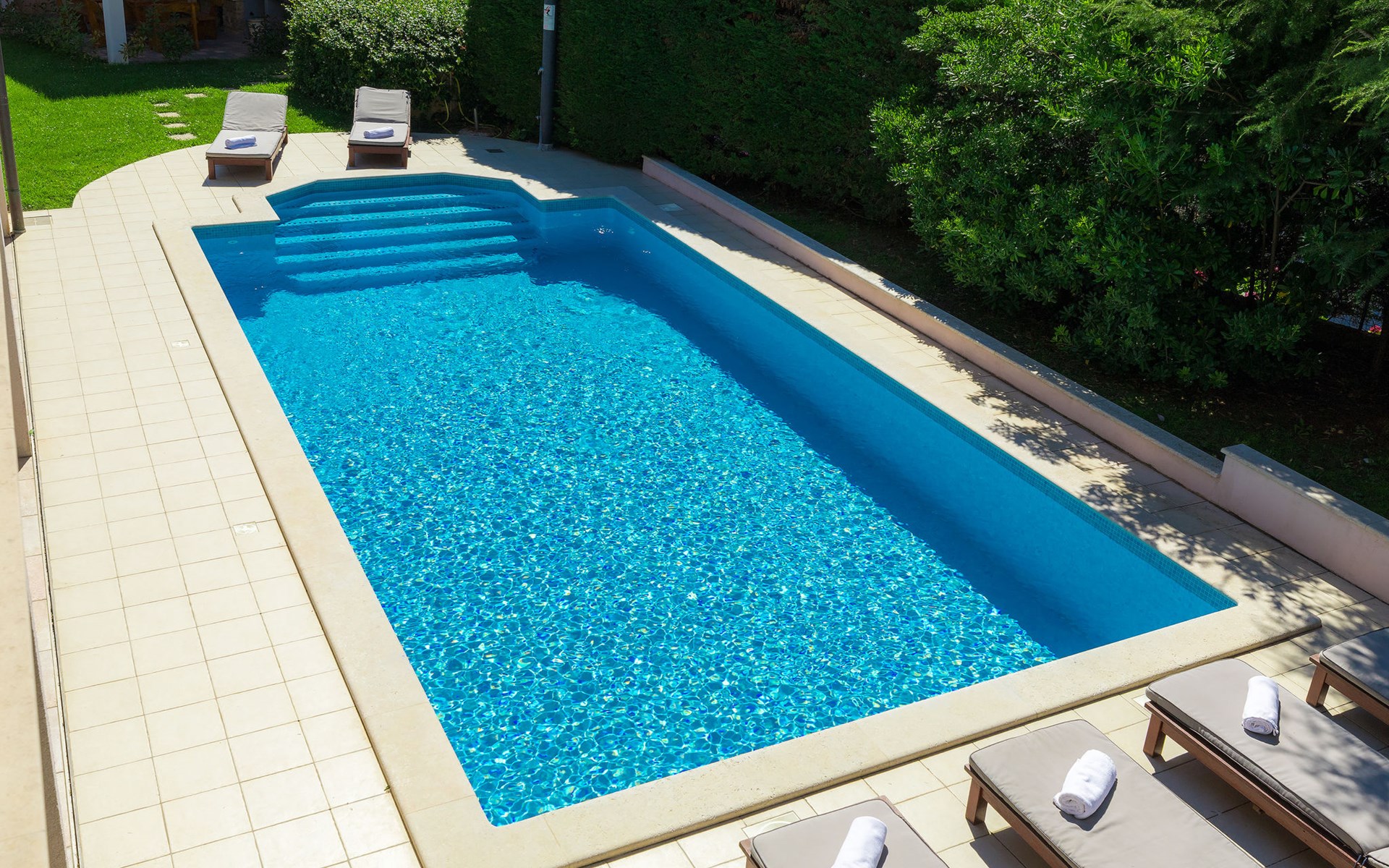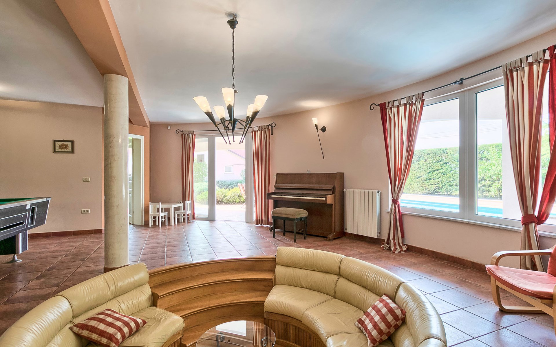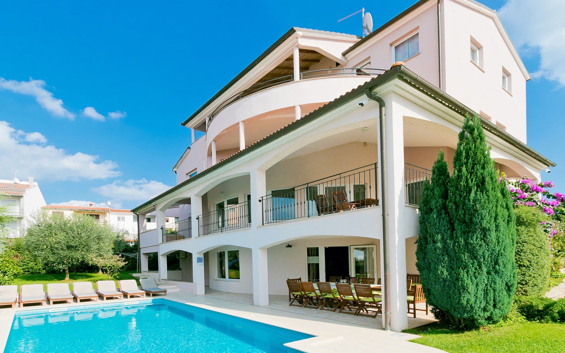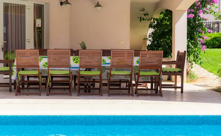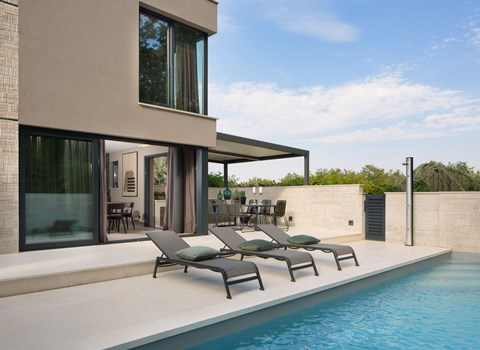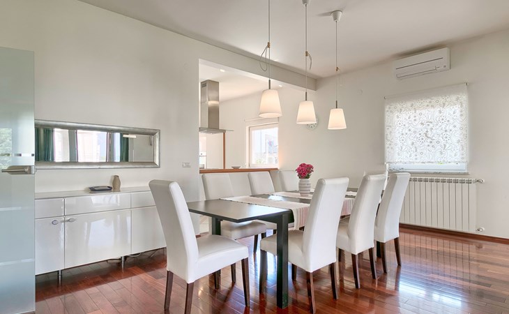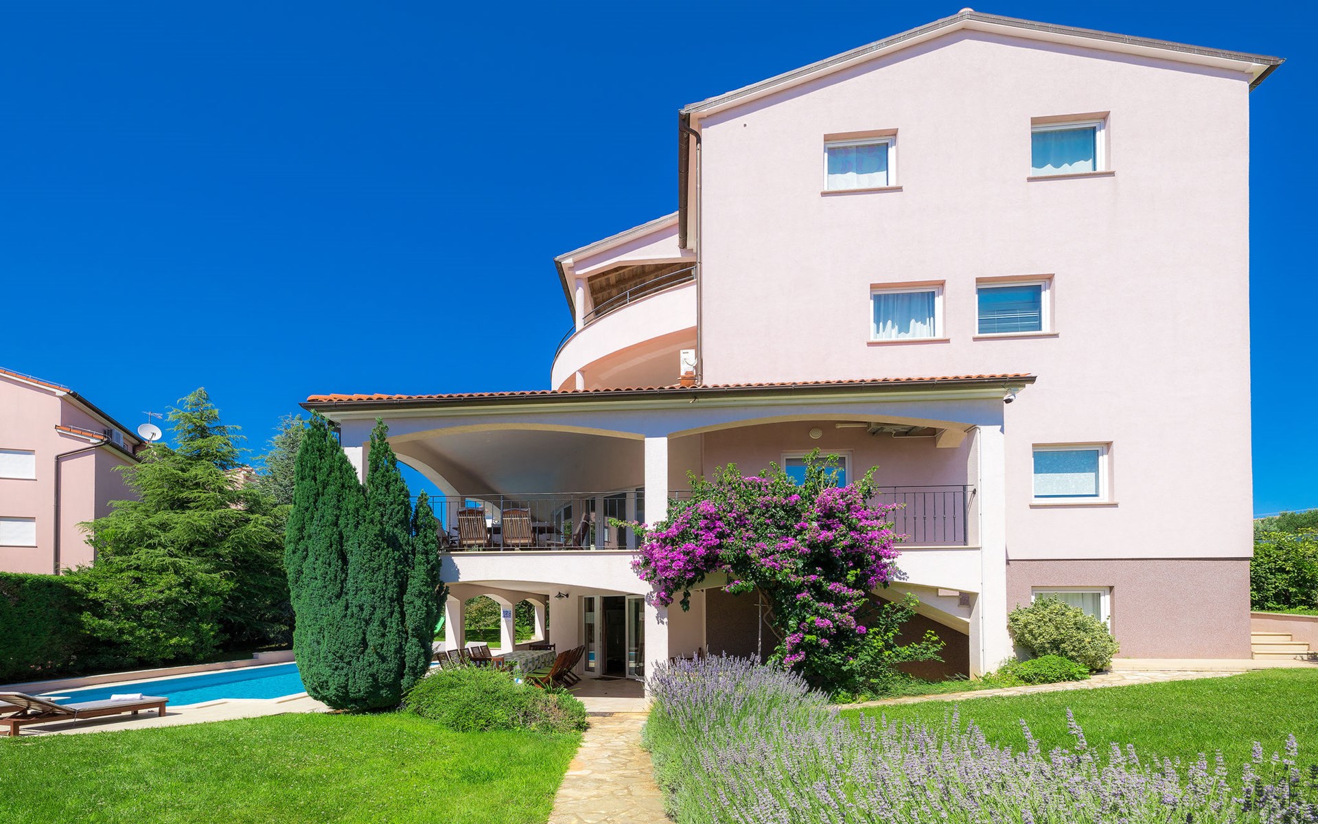Štinjan 5 km van Pula: Mooi villa "Carmen", van 4 verdiepingen. 3 km van het centrum van Fažana, zonnige ligging, 1 km van zee, 1 km van het strand. Voor alleengebruik: terrein 1.000 m2 (omheind), mooie tuin met gazon, openluchtzwembad verwarmd (40 m2, 140 cm diepte, seizoensgebonden beschikbaarheid: 09.Mrt. - 21.Nov.) met trap en zout-elektrolyse. Onregelmatig zwembad. Buitendouche, barbecue, kinderspeelplaats (glijbaan, schommel). In het huis: internetaansluiting, fitnessruimte, biljart, wasmachine. Parkeerplaats (voor 4 auto's) bij het huis op het terrein. Winkel 350 m, winkelcentrum 4 km, restaurant, bushalte 350 m, kiezelstrand 1 km, rotsstrand 1 km. Golfterrein (18 holes) 4.5 km, tennis 1 km, manege 1.5 km, wandelroutes 100 m vanaf het huis, fietspad 150 m. Attracties in de buurt: NP Brijuni 4.5 km, Amphitheater 6 km. De eigenaar accepteert geen jeugdgroepen. Vliegveld 15 km van het huis. Openluchtzwembad verwarmd (extra). Geen huisdieren toegestaan.