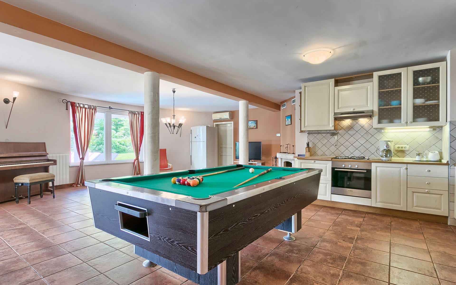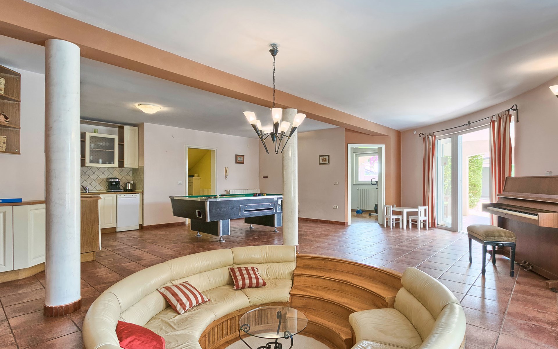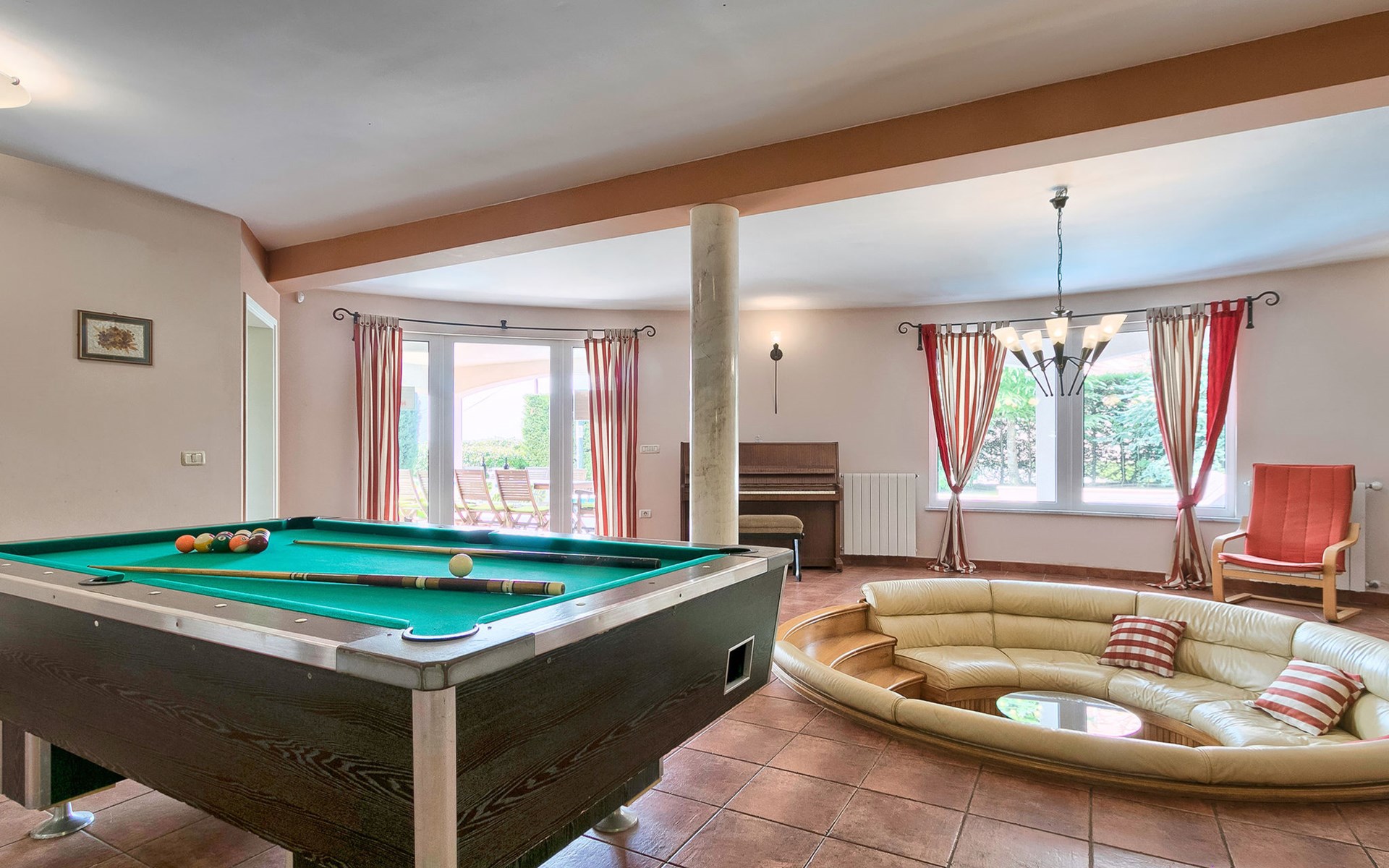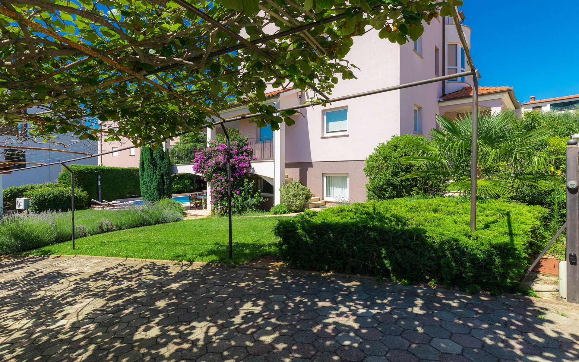 Štinjan 5 km van Pula: Mooi villa "Carmen", van 4 verdiepingen. 3 km van het centrum van Fažana, zonnige ligging, 1 km van zee, 1 km van het strand. Voor alleengebruik: terrein 1.000 m2 (omheind), mooie tuin met gazon, openluchtzwembad verwarmd (40 m2, 140 cm diepte, seizoensgebonden beschikbaarheid: 09.Mrt. - 21.Nov.) met trap en zout-elektrolyse. Onregelmatig zwembad. Buitendouche, barbecue, kinderspeelplaats (glijbaan, schommel). In het huis: internetaansluiting, fitnessruimte, biljart, wasmachine. Parkeerplaats (voor 4 auto's) bij het huis op het terrein. Winkel 350 m, winkelcentrum 4 km, restaurant, bushalte 350 m, kiezelstrand 1 km, rotsstrand 1 km. Golfterrein (18 holes) 4.5 km, tennis 1 km, manege 1.5 km, wandelroutes 100 m vanaf het huis, fietspad 150 m. Attracties in de buurt: NP Brijuni 4.5 km, Amphitheater 6 km. De eigenaar accepteert geen jeugdgroepen. Vliegveld 15 km van het huis. Openluchtzwembad verwarmd (extra). Geen huisdieren toegestaan.