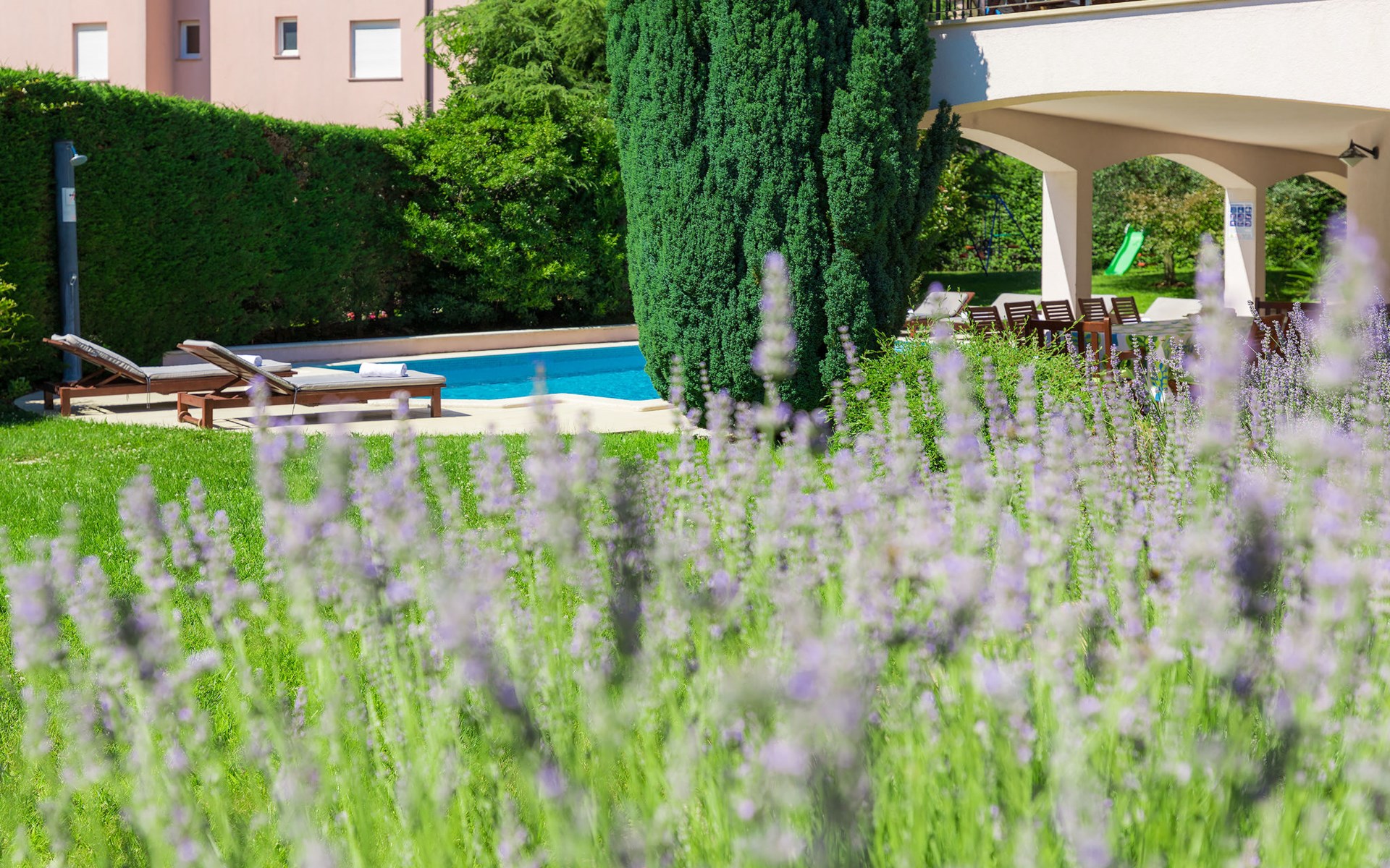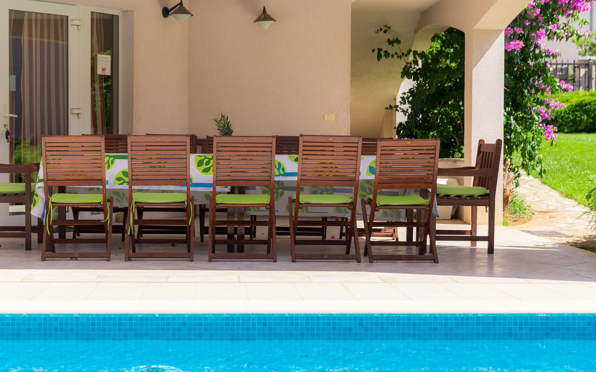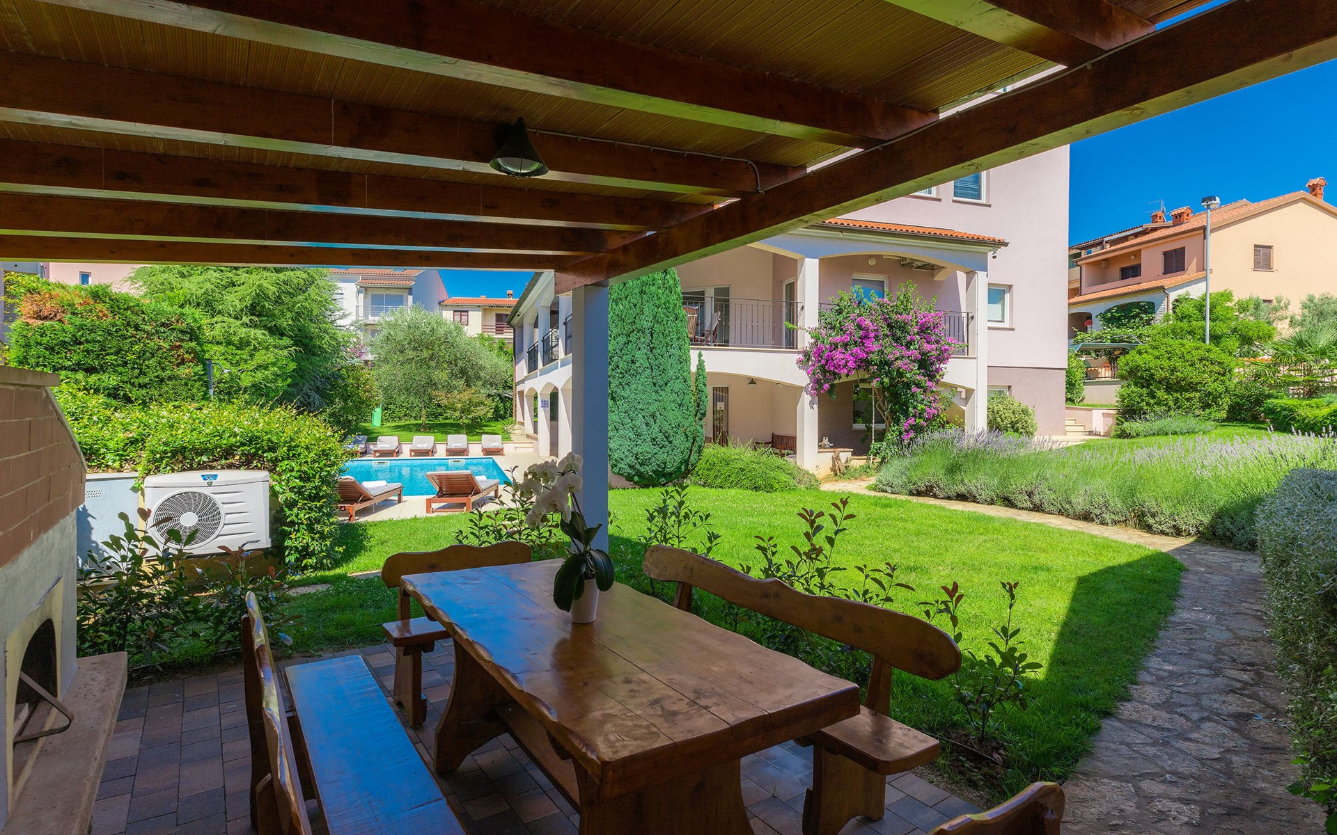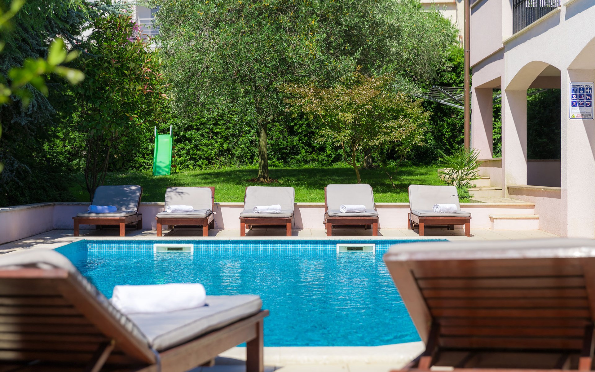 Štinjan 5 km van Pula: Mooi villa "Carmen", van 4 verdiepingen. 3 km van het centrum van Fažana, zonnige ligging, 1 km van zee, 1 km van het strand. Voor alleengebruik: terrein 1.000 m2 (omheind), mooie tuin met gazon, openluchtzwembad verwarmd (40 m2, 140 cm diepte, seizoensgebonden beschikbaarheid: 09.Mrt. - 21.Nov.) met trap en zout-elektrolyse. Onregelmatig zwembad. Buitendouche, barbecue, kinderspeelplaats (glijbaan, schommel). In het huis: internetaansluiting, fitnessruimte, biljart, wasmachine. Parkeerplaats (voor 4 auto's) bij het huis op het terrein. Winkel 350 m, winkelcentrum 4 km, restaurant, bushalte 350 m, kiezelstrand 1 km, rotsstrand 1 km. Golfterrein (18 holes) 4.5 km, tennis 1 km, manege 1.5 km, wandelroutes 100 m vanaf het huis, fietspad 150 m. Attracties in de buurt: NP Brijuni 4.5 km, Amphitheater 6 km. De eigenaar accepteert geen jeugdgroepen. Vliegveld 15 km van het huis. Openluchtzwembad verwarmd (extra). Geen huisdieren toegestaan.