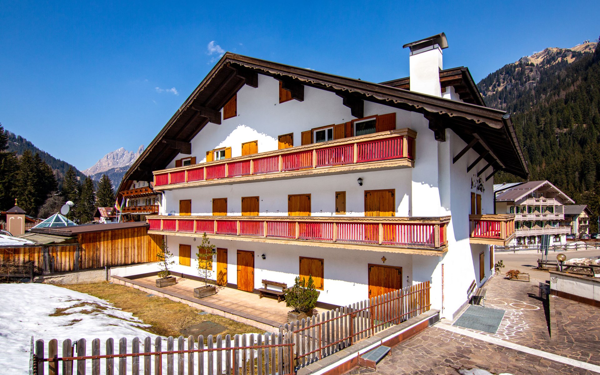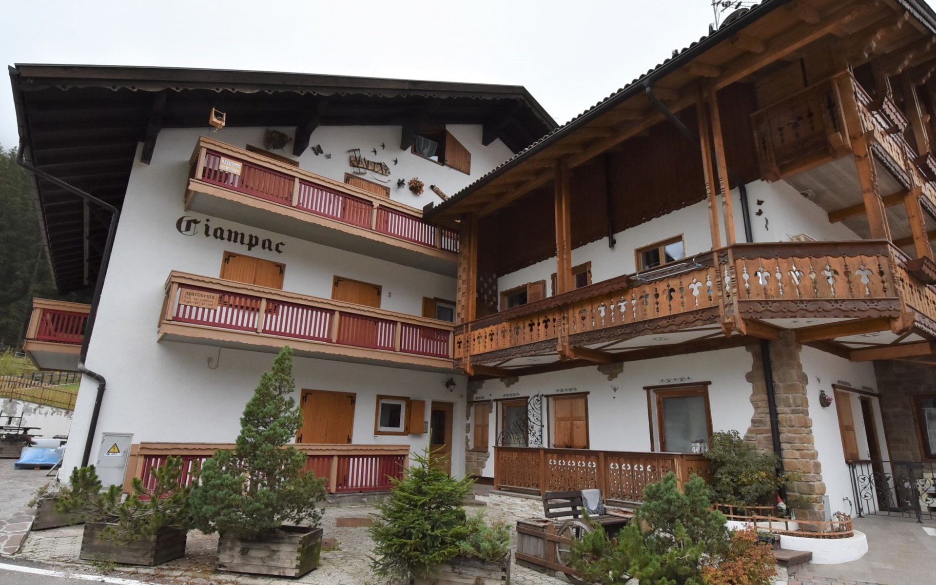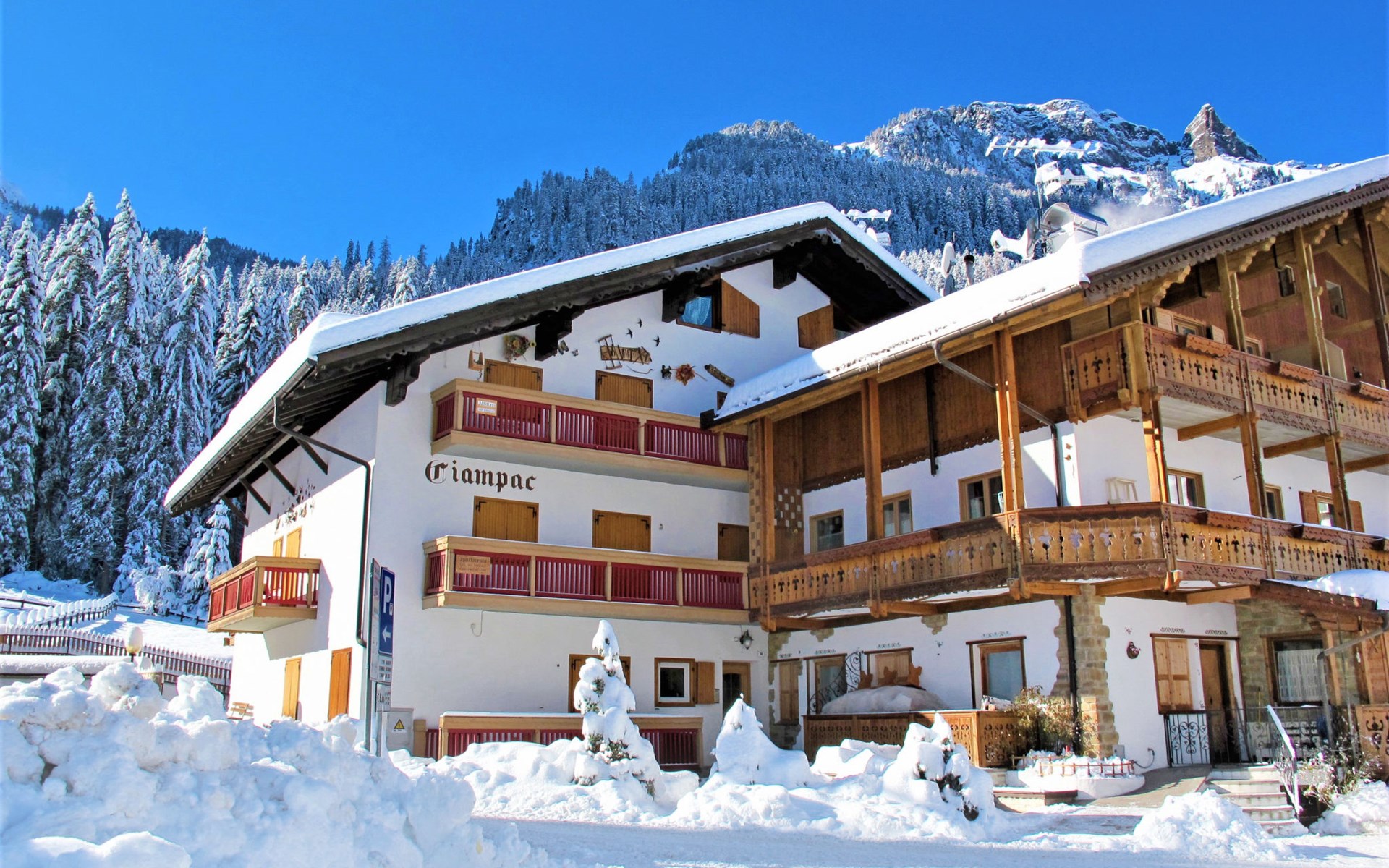 Klein flatgebouw "Ciampac", van 2 verdiepingen. 500 m van het centrum van Alba, 2.5 km van het centrum van Canazei, 100 m van het skigebied. In het huis: berging voor ski's, centrale verwarming, verwarming alleen beschikbaar van 01.Dec. - 01.Mei.. In de winter sneeuwkettingen aanbevolen. Eigen garage. Supermarkt 500 m, restaurant, bar 100 m, bushalte 200 m. Attracties in de buurt: Lago di Carezza 26 km, Sella Ronda 200 m, Funivia Ciampac/Bafaure 200 m. Bij goede skicondities is het huis bereikbaar per ski.