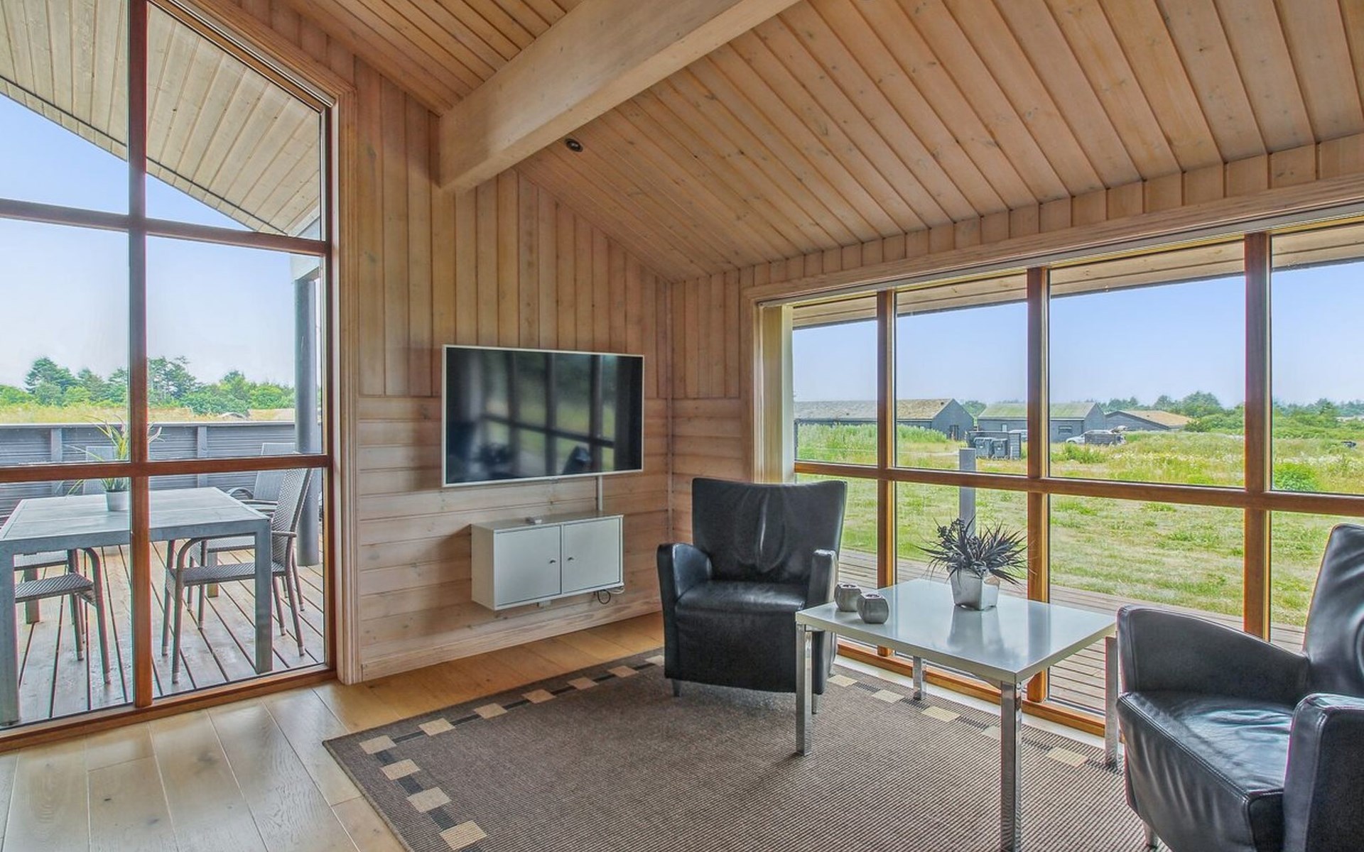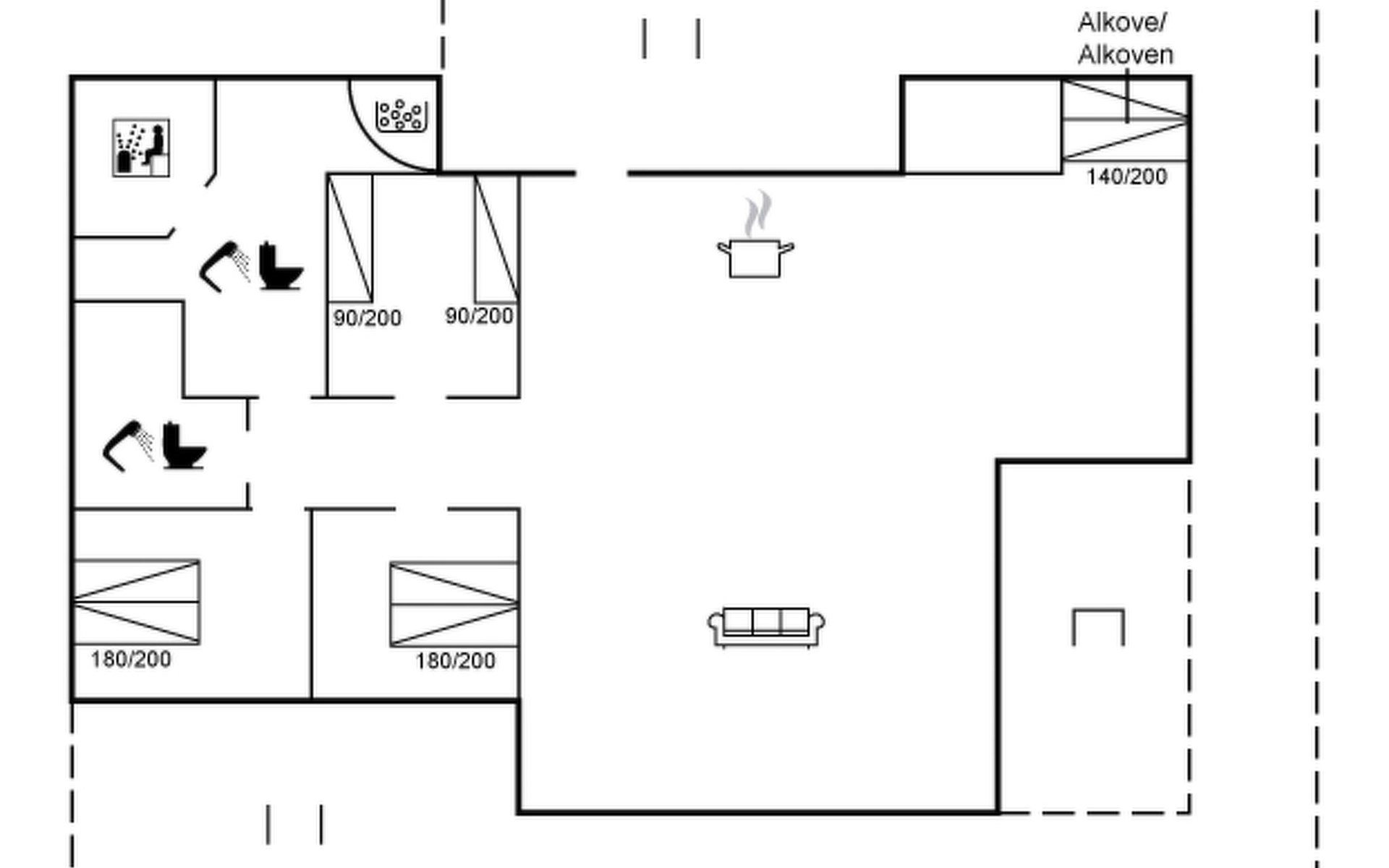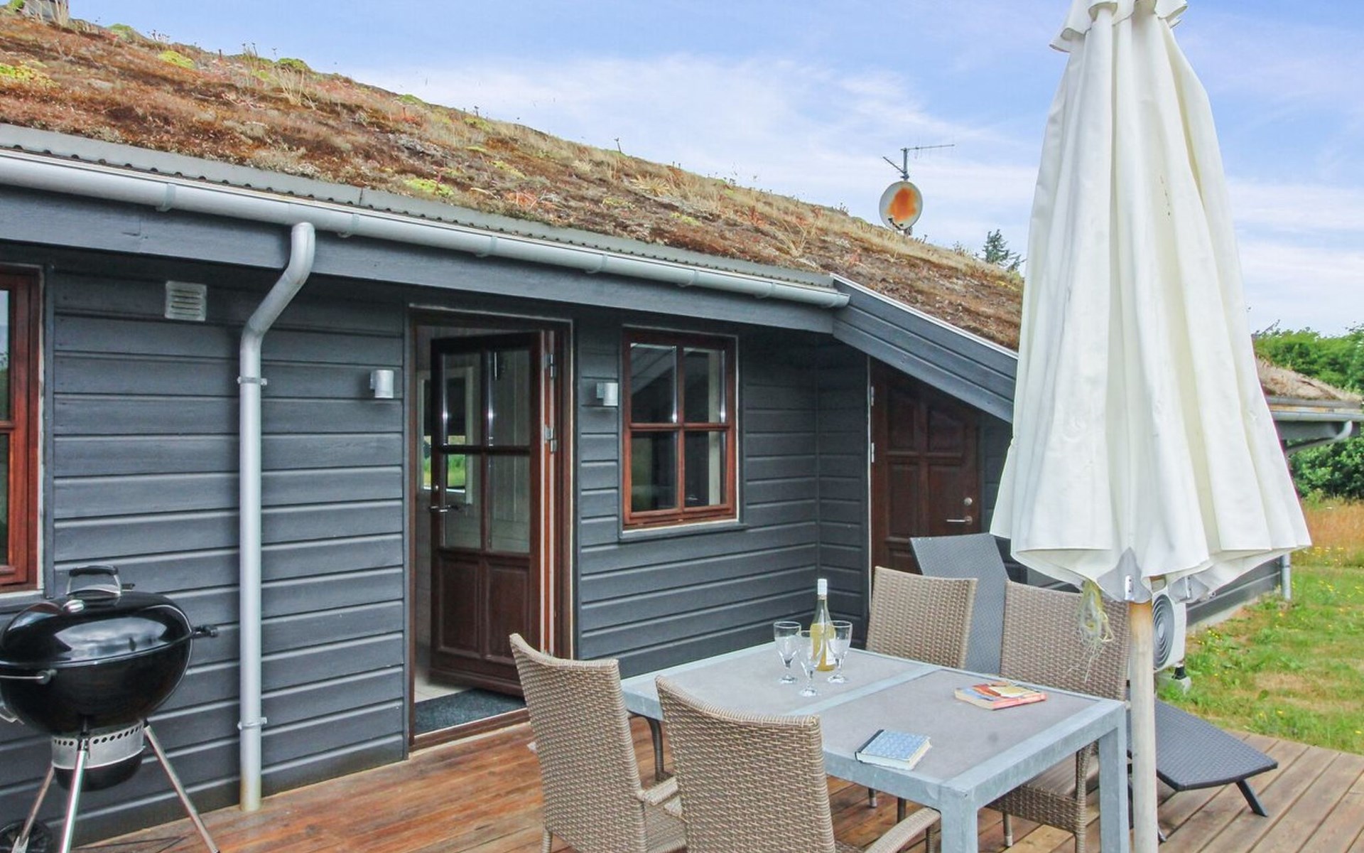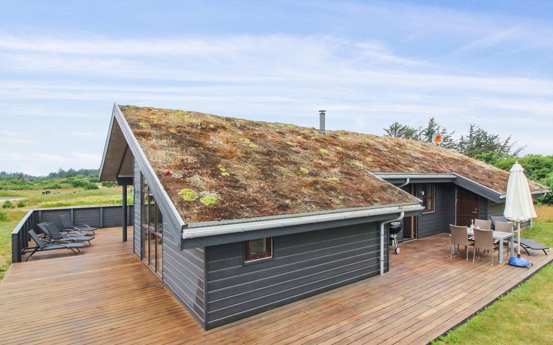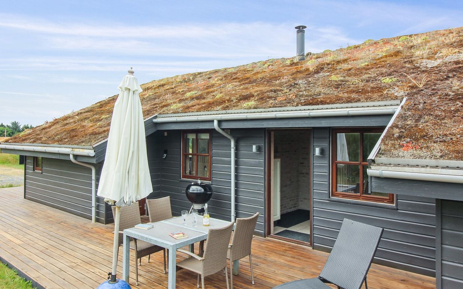 Eengezinswoning, bouwjaar 2008. 1.5 km van zee. Voor alleengebruik: wild terrein 2.500 m2. Terras (80 m2), barbecue. In het huis: sauna, wasmachine, droger. Parkeerplaats bij het huis. Levensmiddelenwinkel 3 km. Golfterrein 8 km. De eigenaar accepteert geen jeugdgroepen.