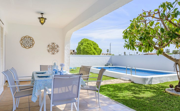 Costa Norte 5 km van Centro Vinaros: Gezellige villa "Villa Lolin", vrijstaand, gerenoveerd in 2023. In de wijk Zona Norte, 5 km van het centrum van Vinaròs, 25 km van het centrum van Peñiscola, in een woonwijk, 500 m van zee, 800 m van het strand, aan een doodlopende weg. Voor alleengebruik: terrein 558 m2 (omheind) met gazon en bomen, ligweide (omheind), mooie tuin ter ontspanning, openluchtzwembad (8 x 4 m, 150 cm diepte, seizoensgebonden beschikbaarheid: 01.Jan. - 31.Dec.). Buitendouche, barbecue, onderhoud zwembad door de eigenaar/tuinman. Smalle toegangsweg. Parkeerplaats (voor 2 auto's) op het terrein. Supermarkt 400 m, restaurant, café 400 m, bushalte "C/ 29 septiembre, Vinaròs" 3 km, treinstation "Vinaròs" 4.6 km, zandstrand "Playa de Colón / Fora del Forat" 3 km, stenenstrand "Playa Barbiguera" 800 m. Jachthaven 4 km, golfterrein (18 holes) 17 km. Attracties in de buurt: Peñiscola 23 km, Delta del Ebro 19 km, Museo Ciencia y Artes Valencia 155 km, Ermita de Vinaros 8 km, Golf Panoramica 17 km. Wandelgebied La Foradada del Montsia 19 km, Pantano Senia 33 km. Geen lift. Geschikt voor families. Het objekt is geschikt voor 6 volwassenen. Laden en lossen van de baggage is mogelijk bij het huis.