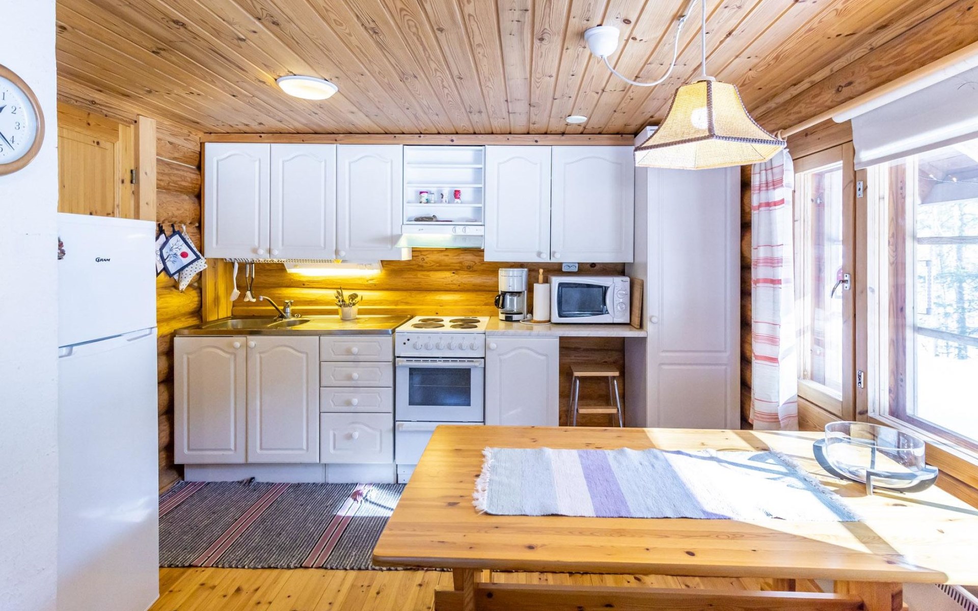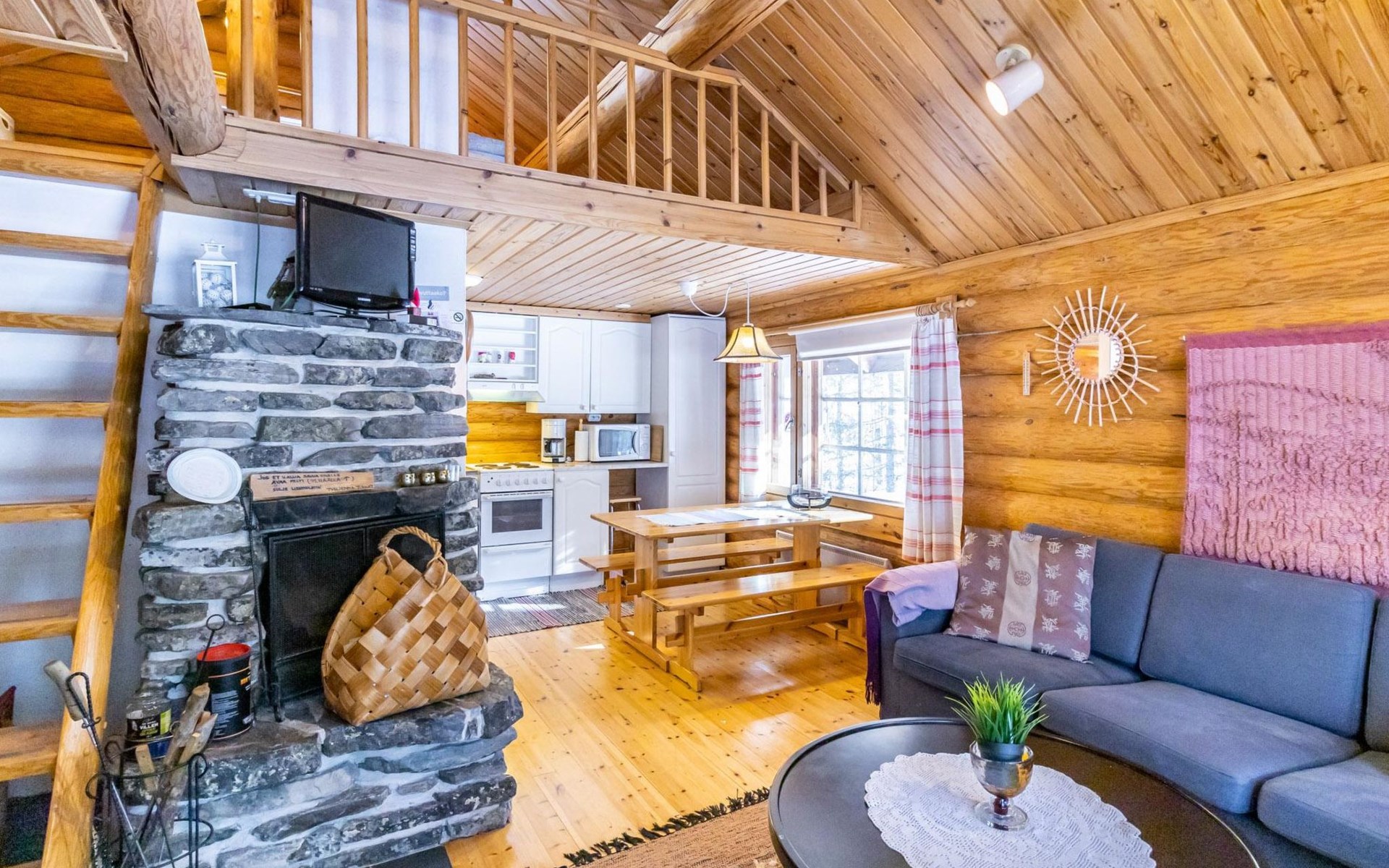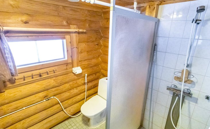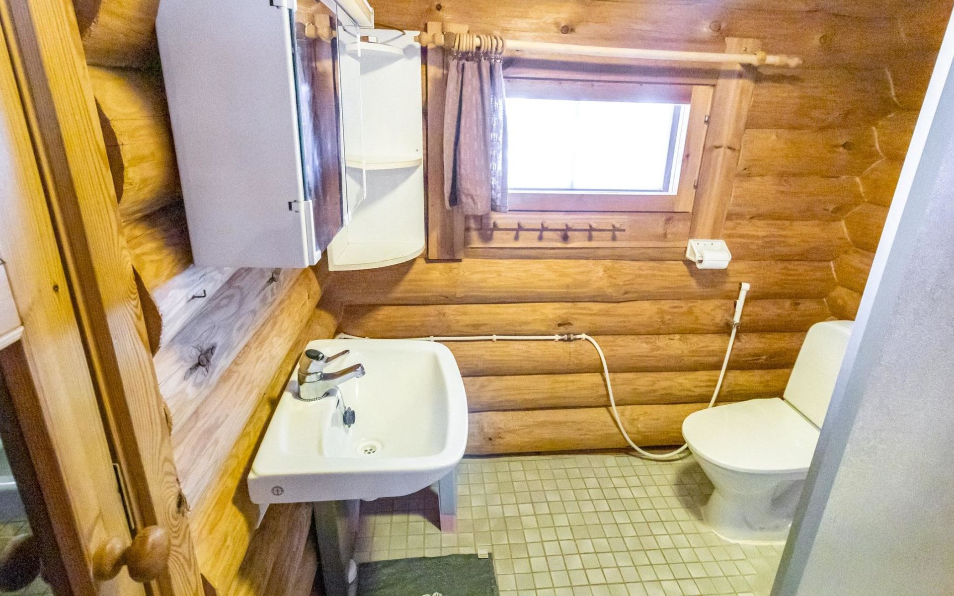 On the ground floor kitchen, bedroom with two beds 80*200 cm, sauna (electric sauna stove), washroom and open porch. In addition, sleeping loft (steep stairs), with 2 box springs, 80*200 cm. No child gate.