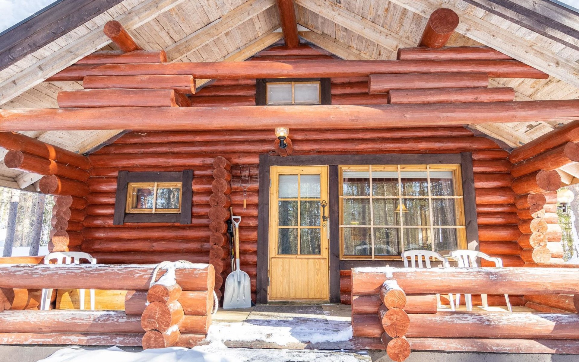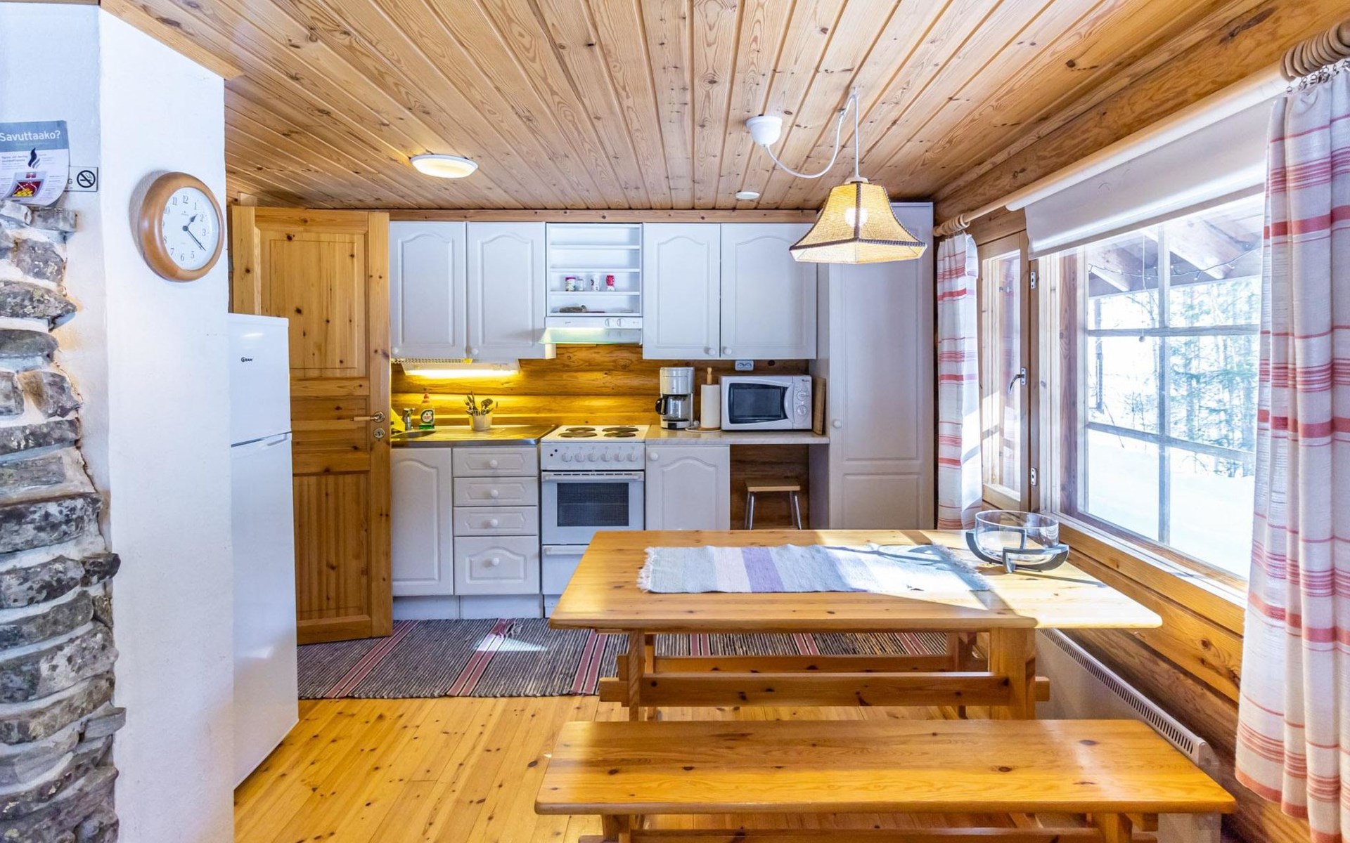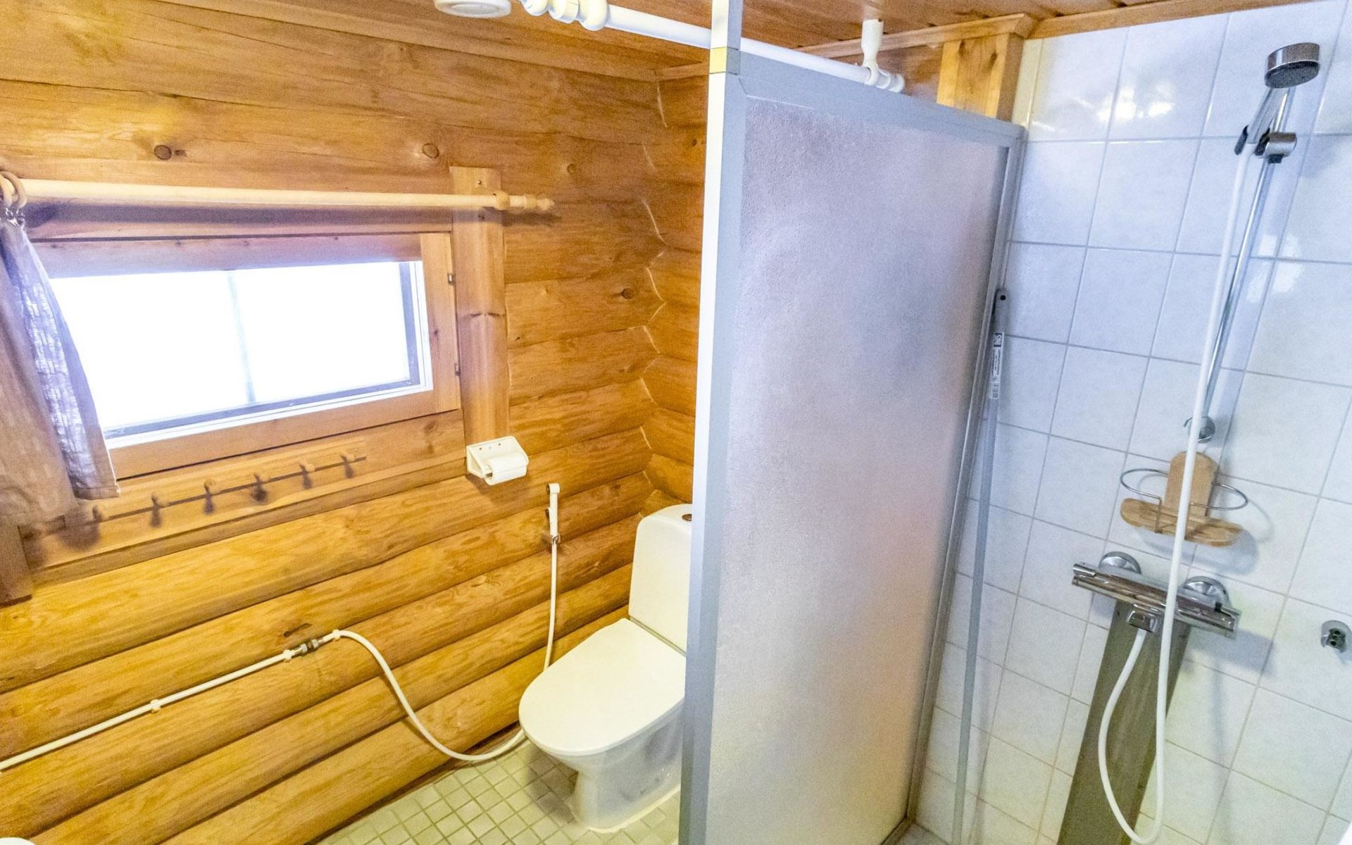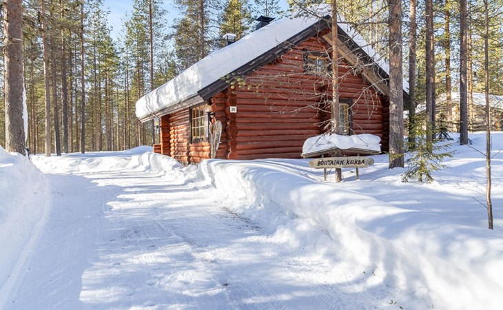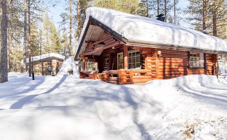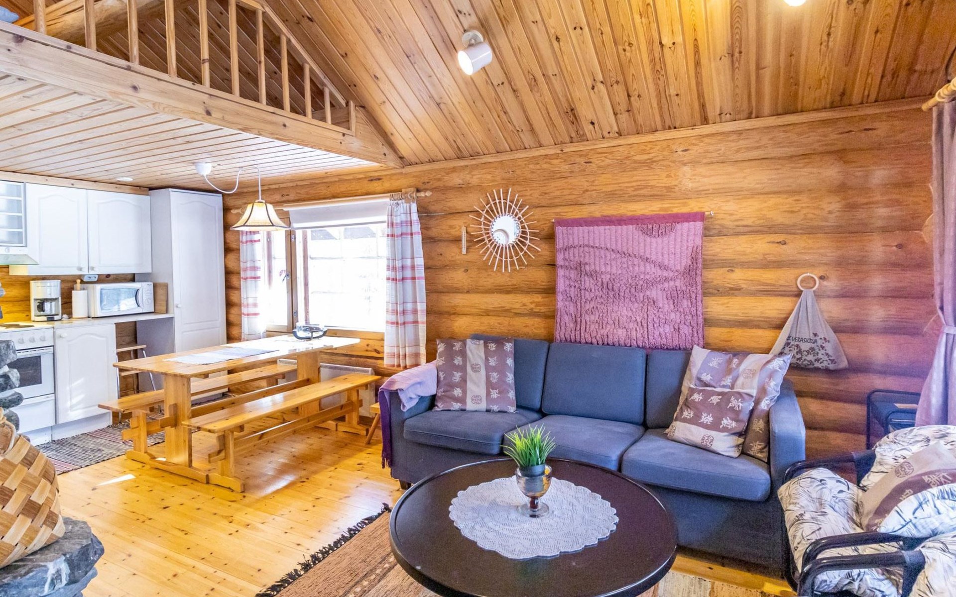 On the ground floor kitchen, bedroom with two beds 80*200 cm, sauna (electric sauna stove), washroom and open porch. In addition, sleeping loft (steep stairs), with 2 box springs, 80*200 cm. No child gate.