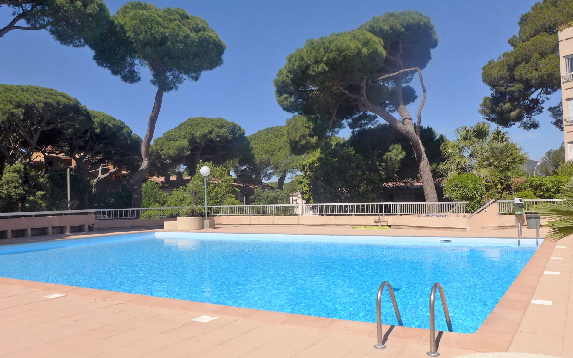 Residentie "Le Zodiaque II", van 5 verdiepingen, omgeven door bomen. In de plaats de Hyères, 300 m van zee, 600 m van het strand. Voor medegebruik: openluchtzwembad omheind (10 x 8 m, 130 - 210 cm diepte, seizoensgebonden beschikbaarheid: 15.Mei. - 30.Sep.). Buitendouche. In het complex: lift. Openbare parkeerplaatsen in de straat. Winkel 750 m, levensmiddelenwinkel, winkelcentrum 5.9 km, restaurant, bar 750 m, bakkerij 750 m, café 750 m, bushalte 200 m, station "de Hyères" 4.7 km, zandstrand "de Ceinturon" 600 m, baai 3 km. Jachthaven 650 m. Attracties in de buurt: Magic World 1.9 km, Kiddy Parc 2.3 km, Parc Olbius Riquier 4.6 km. De sleuteloverdracht vindt plaats bij het agentschap INTERHOME in Hyères sur le port. Vliegveld in de buurt.