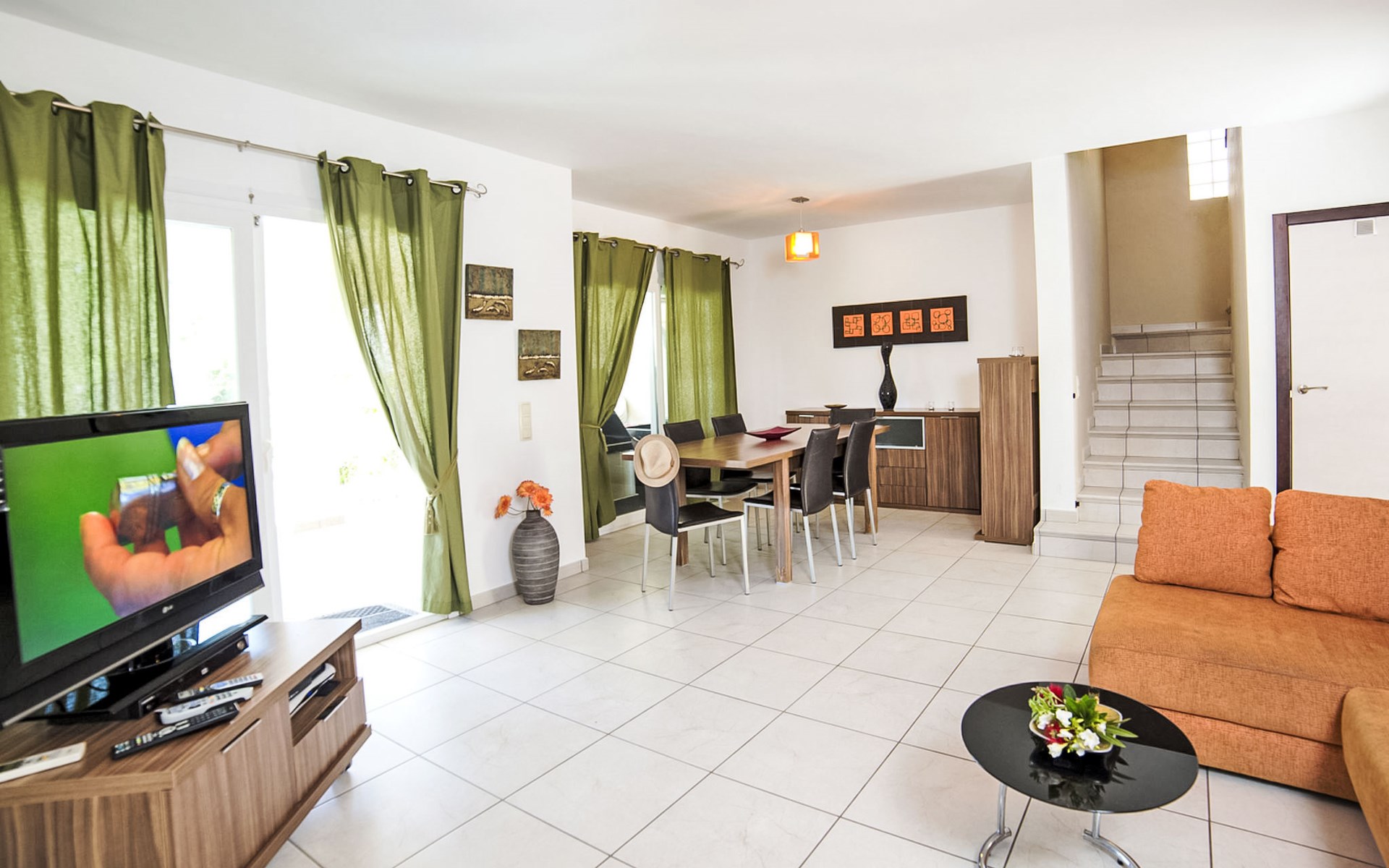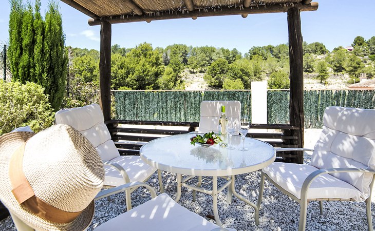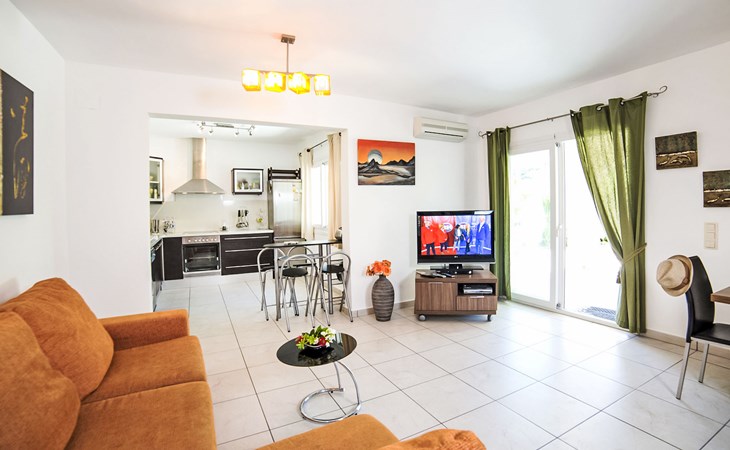 Empedrola: Mooi, gezellig rijtjeshuis "Una". In de plaats, 5 km van het centrum van Calpe, rustige, zonnige ligging, 5 km van zee, 5 km van het strand. Voor medegebruik: terrein (omheind) met gazon en bomen, openluchtzwembad (seizoensgebonden beschikbaarheid: 01.Jan. - 31.Dec.). Kinderzwembad. Voor alleengebruik: terrein (omheind), tuin bloemen en bomen, parkeerplaats bij het huis. Levensmiddelenwinkel 5.4 km, supermarkt 5.4 km, bushalte "Parada Bus" 2.7 km, zandstrand "Playa de La Fosa" 5.7 km. Jachthaven 6.3 km, golfterrein (9 holes) 9 km, tennis 3.9 km. Attracties in de buurt: Aqualandia, Mundomar, Terra MÃtica, Terra Natura, Benidorm Palace (Benidorm).