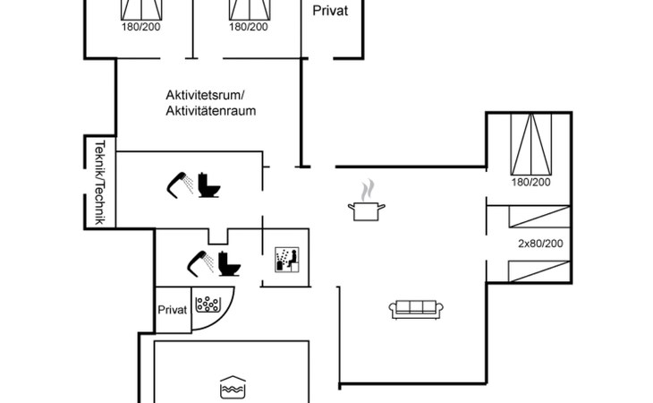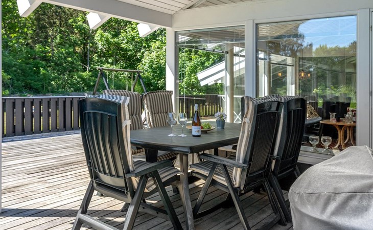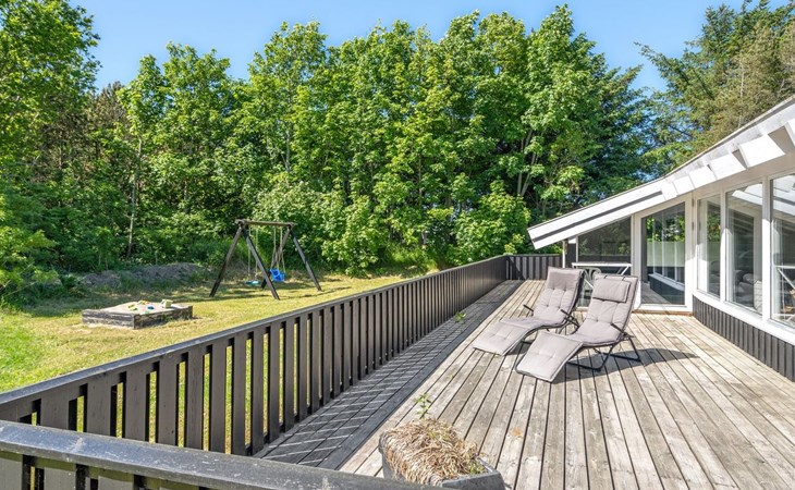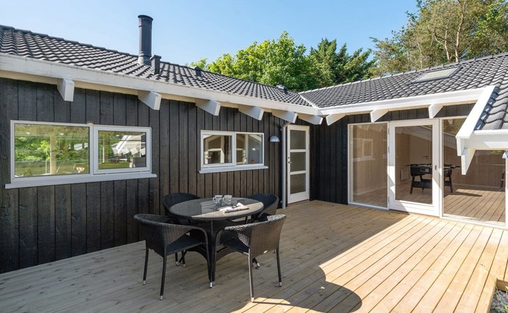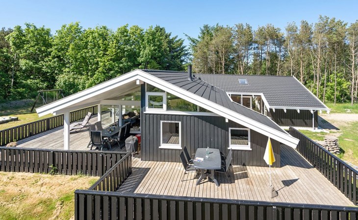 Eengezinswoning, bouwjaar 1989. 800 m van zee. Voor alleengebruik: wild terrein 1.725 m2, overdekt zwembad. Buitendouche, terras (80 m2), barbecue, kinderspeelplaats (schommel). In het huis: sauna, solarium, wasmachine, droger. Parkeerplaats bij het huis. Oplaadstation. Levensmiddelenwinkel 400 m. De eigenaar accepteert geen jeugdgroepen.