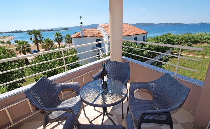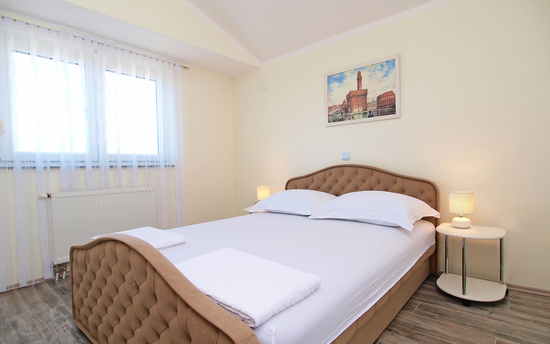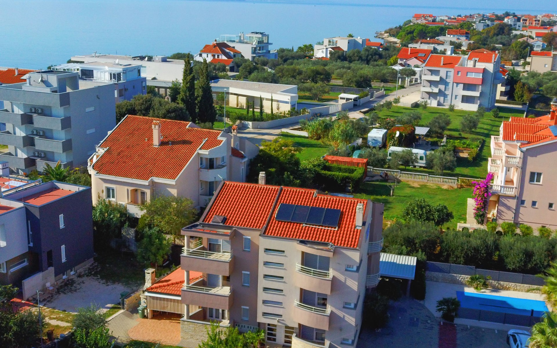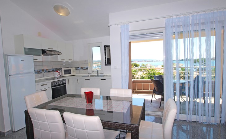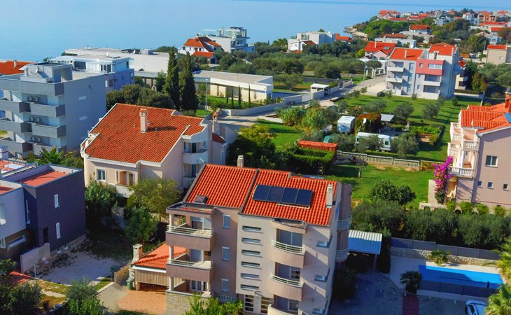 Bibinje 10 km van Zadar: Appartementencomplex "Marko". 2 km van het centrum van Bibinje, zonnige ligging, 70 m van zee, 70 m van het strand. Voor medegebruik: terrein 700 m2 (omheind), verzorgde tuin met gazon en bomen, openluchtzwembad hoekig verwarmd (7 x 3 m, 24 m2, 150 cm diepte, seizoensgebonden beschikbaarheid: 15.Mei. - 19.Okt.) met trap. Buitendouche, poolhouse met koelkast, WC en fornuis, terras (32 m2), tuinmeubelen, barbecue, kinderspeelplaats (schommel). In het huis: internetaansluiting. Parkeerplaats bij het huis op het terrein. Winkel, restaurant 650 m, café 100 m, bushalte 2.9 km, kiezelstrand 70 m, duikschool 100 m, strandbad 70 m. Jachthaven 50 m, kinderspeelplaats 100 m. Privé aanlegsteiger voor een boot (extra) op aanvraag. Voor medegebruik: terras (20 m2). Mogelijkheid tot het huren van de auto en de boot van de huiseigenaar voor (op aanvraag, extra).
