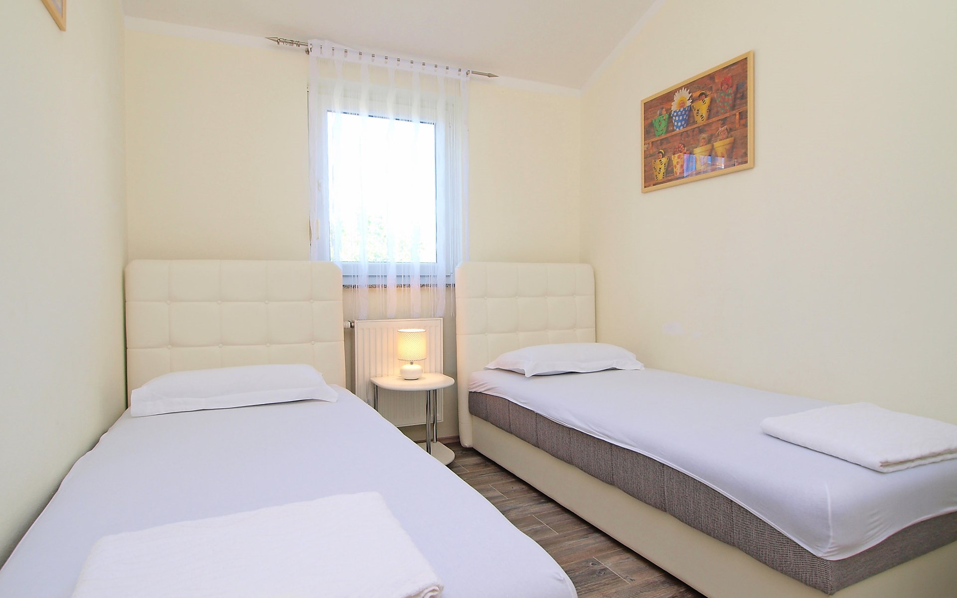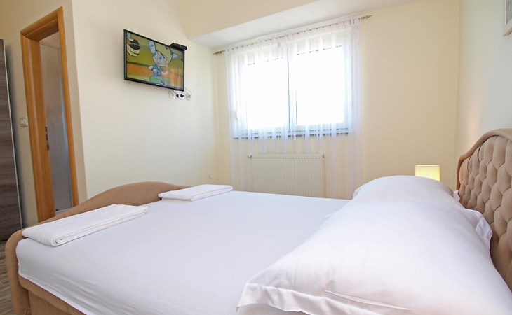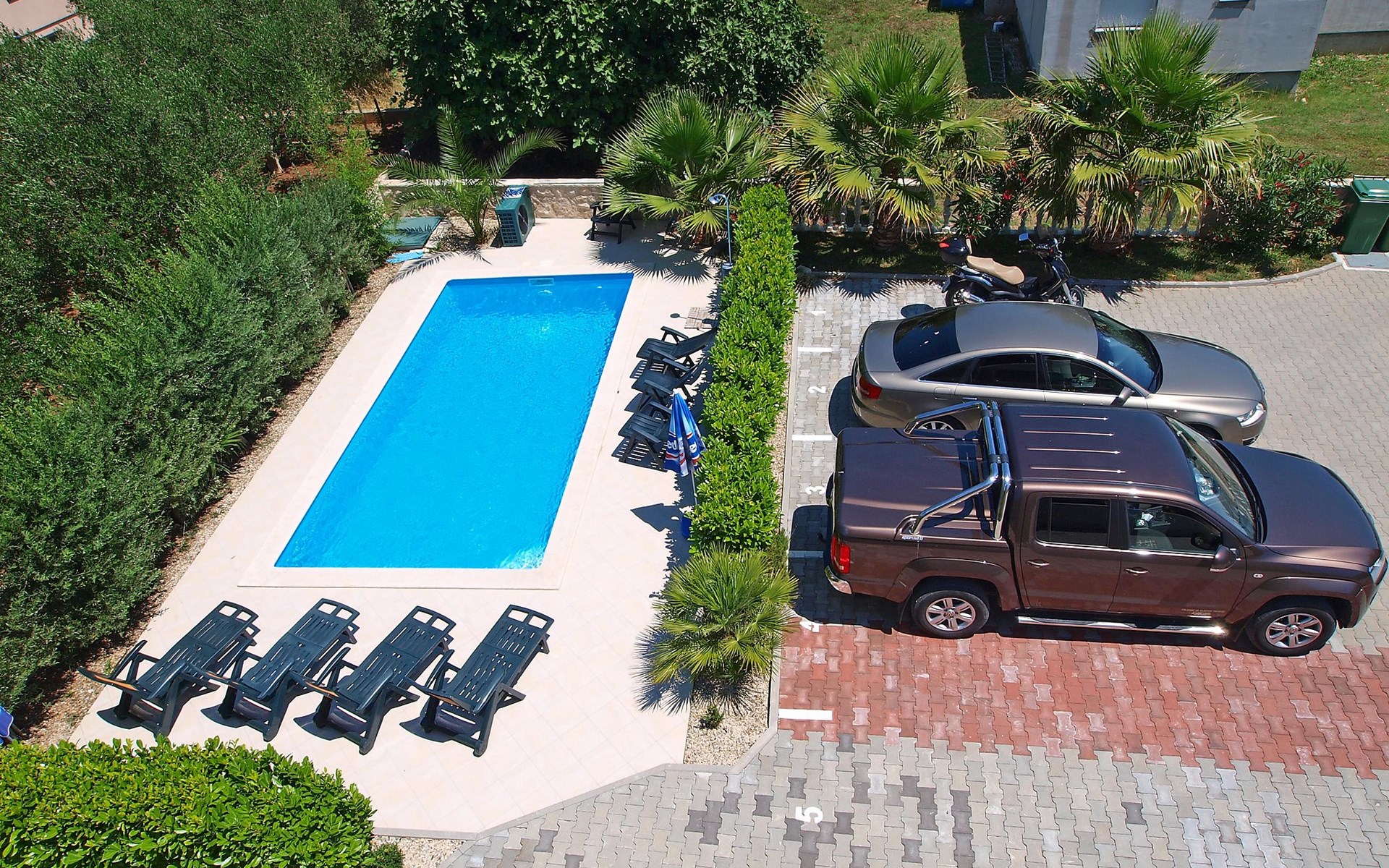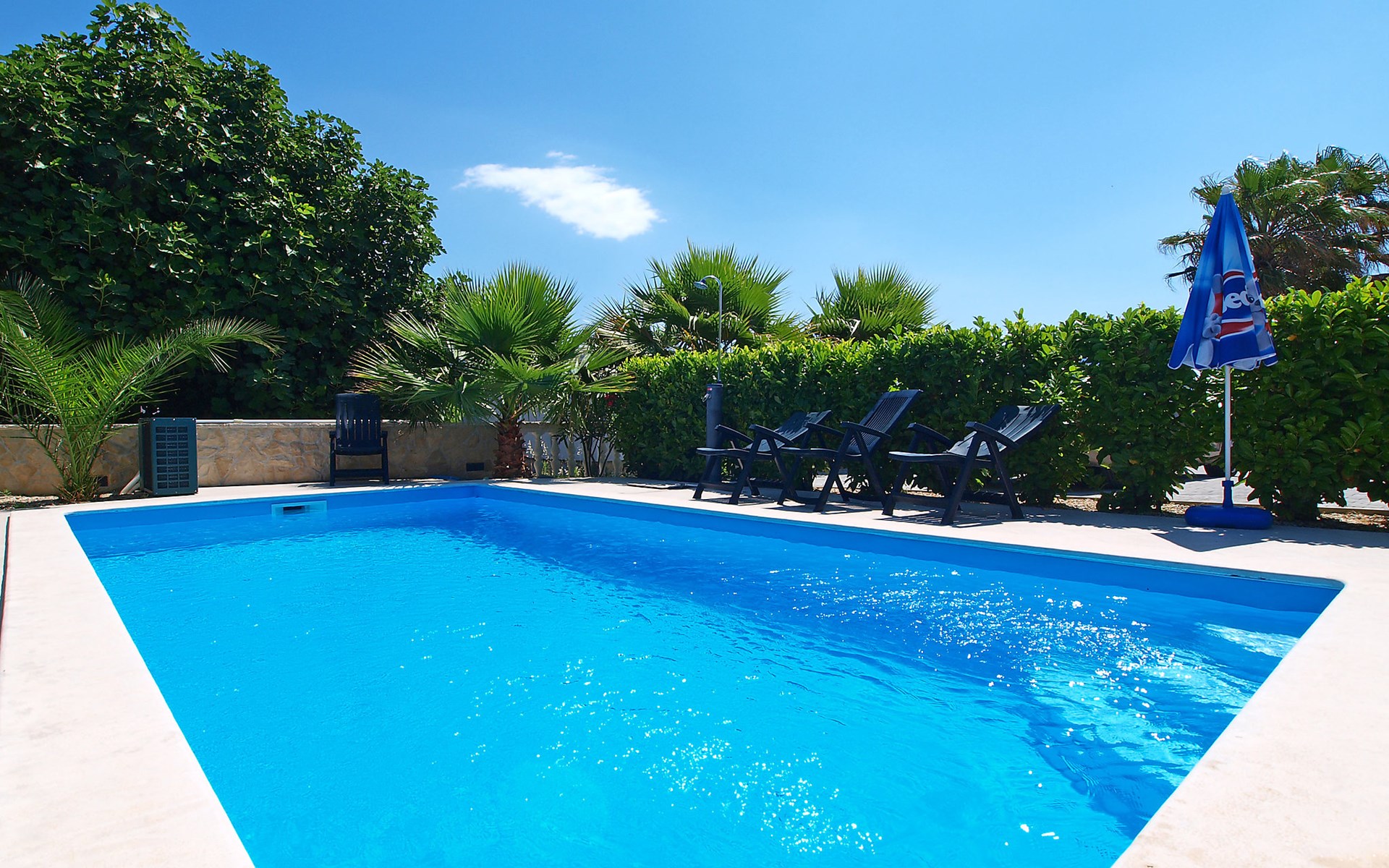 Bibinje 10 km van Zadar: Appartementencomplex "Marko". 2 km van het centrum van Bibinje, zonnige ligging, 70 m van zee, 70 m van het strand. Voor medegebruik: terrein 700 m2 (omheind), verzorgde tuin met gazon en bomen, openluchtzwembad hoekig verwarmd (7 x 3 m, 24 m2, 150 cm diepte, seizoensgebonden beschikbaarheid: 15.Mei. - 19.Okt.) met trap. Buitendouche, poolhouse met koelkast, WC en fornuis, terras (32 m2), tuinmeubelen, barbecue, kinderspeelplaats (schommel). In het huis: internetaansluiting. Parkeerplaats bij het huis op het terrein. Winkel, restaurant 650 m, café 100 m, bushalte 2.9 km, kiezelstrand 70 m, duikschool 100 m, strandbad 70 m. Jachthaven 50 m, kinderspeelplaats 100 m. Privé aanlegsteiger voor een boot (extra) op aanvraag. Voor medegebruik: terras (20 m2). Mogelijkheid tot het huren van de auto en de boot van de huiseigenaar voor (op aanvraag, extra).