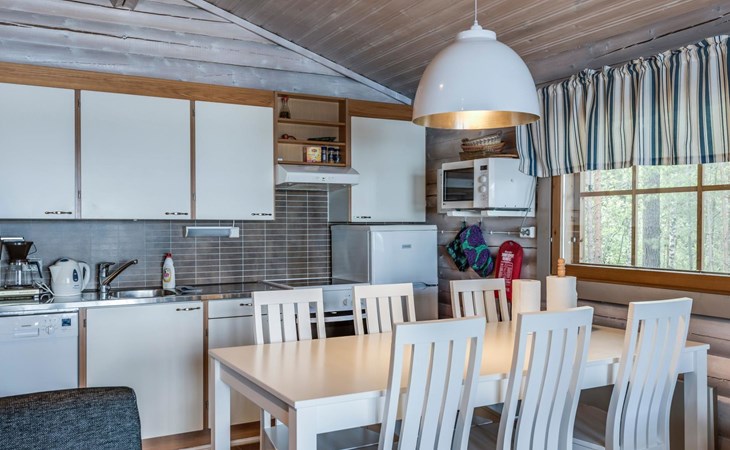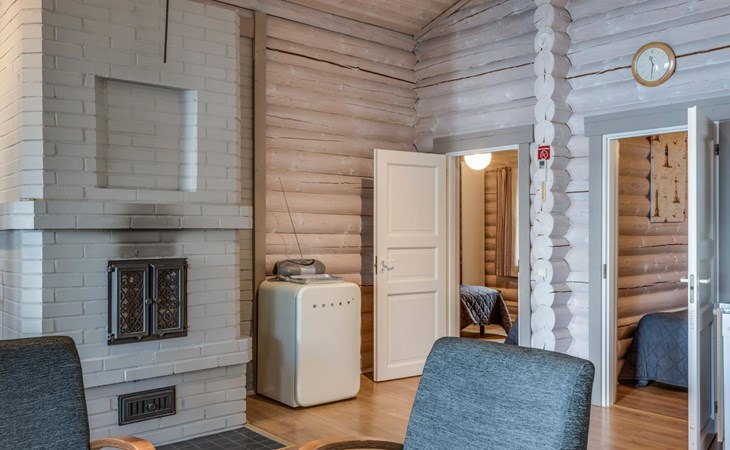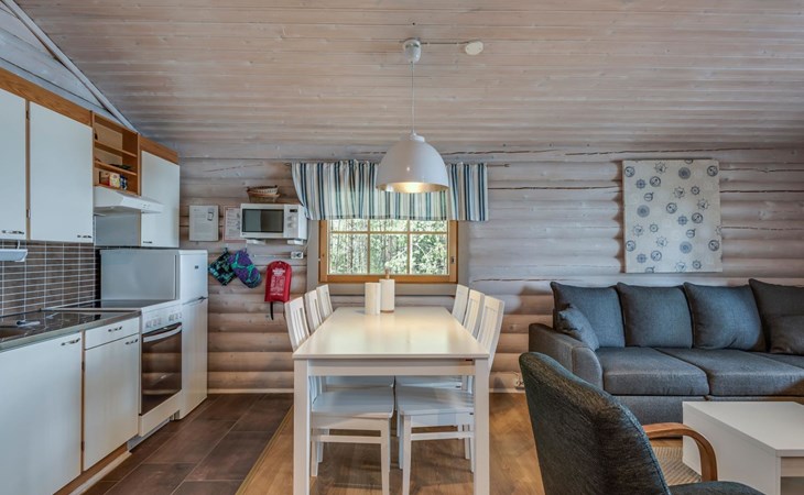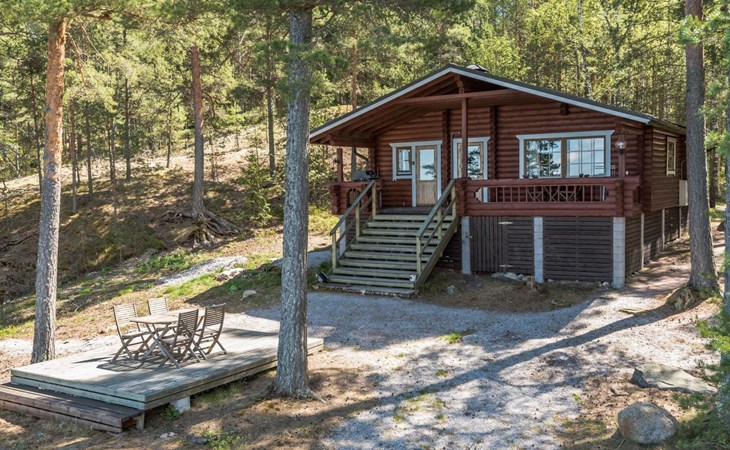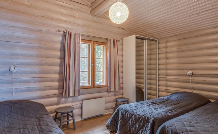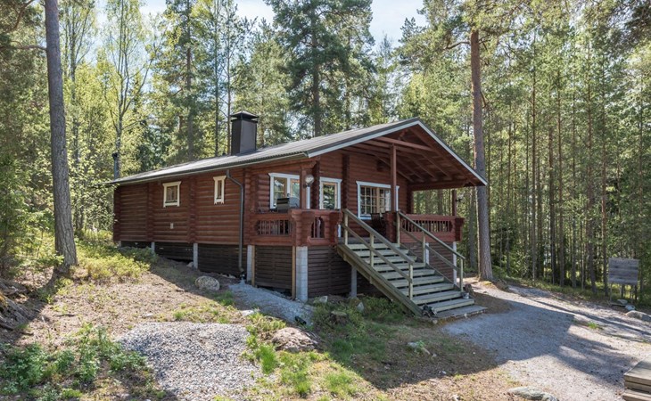 Log cottage 1997, renovated 2015, sauna and shower renovated 2020, kitchen-living room with sofa bed, bedroom 3 beds, bedroom 3 beds, sauna (wooden stove, underfloor heating), shower room / toilet (underfloor heating), terrace.