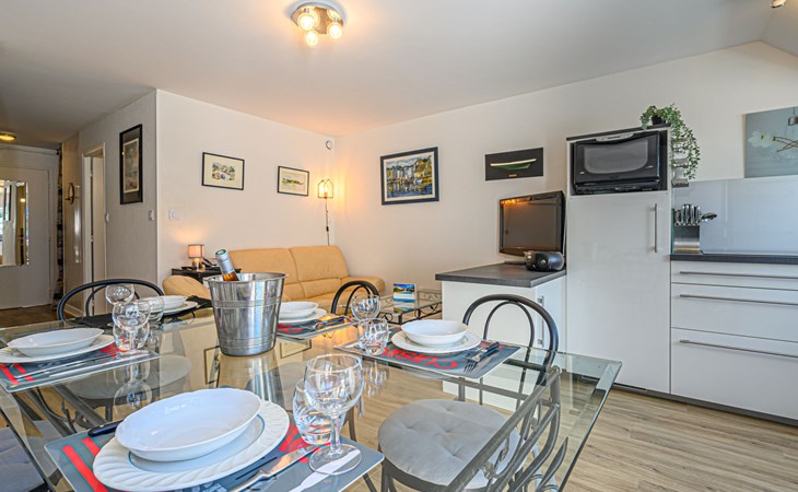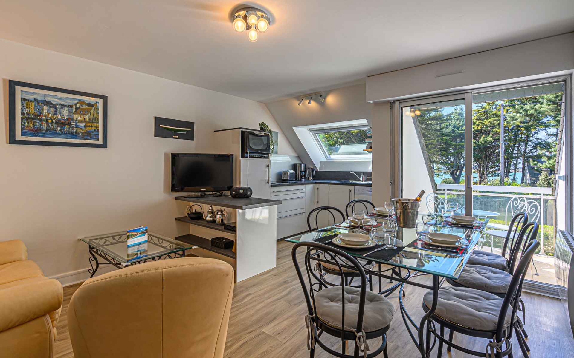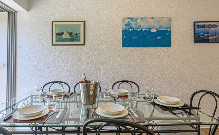 Flatgebouw "Phare de Kernevest". Aan de rand van de plaats, 200 m van zee, 500 m van het strand. Voor medegebruik: tennisbaan, parkeerplaats. Winkel 2 km, levensmiddelenwinkel 2 km, supermarkt 2 km, restaurant 2 km, bakkerij 2 km, zandstrand "Kernevest" 500 m. Golfterrein (18 holes) 18 km, zeilschool 500 m. Attracties in de buurt: La Trinité sur Mer 4.3 km, Alignements de Carnac 8 km, Auray 14 km, Presqu'Ile de Quiberon 21 km, Vannes 30 km, Belle-Ile-en-Mer.