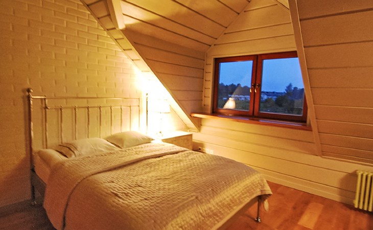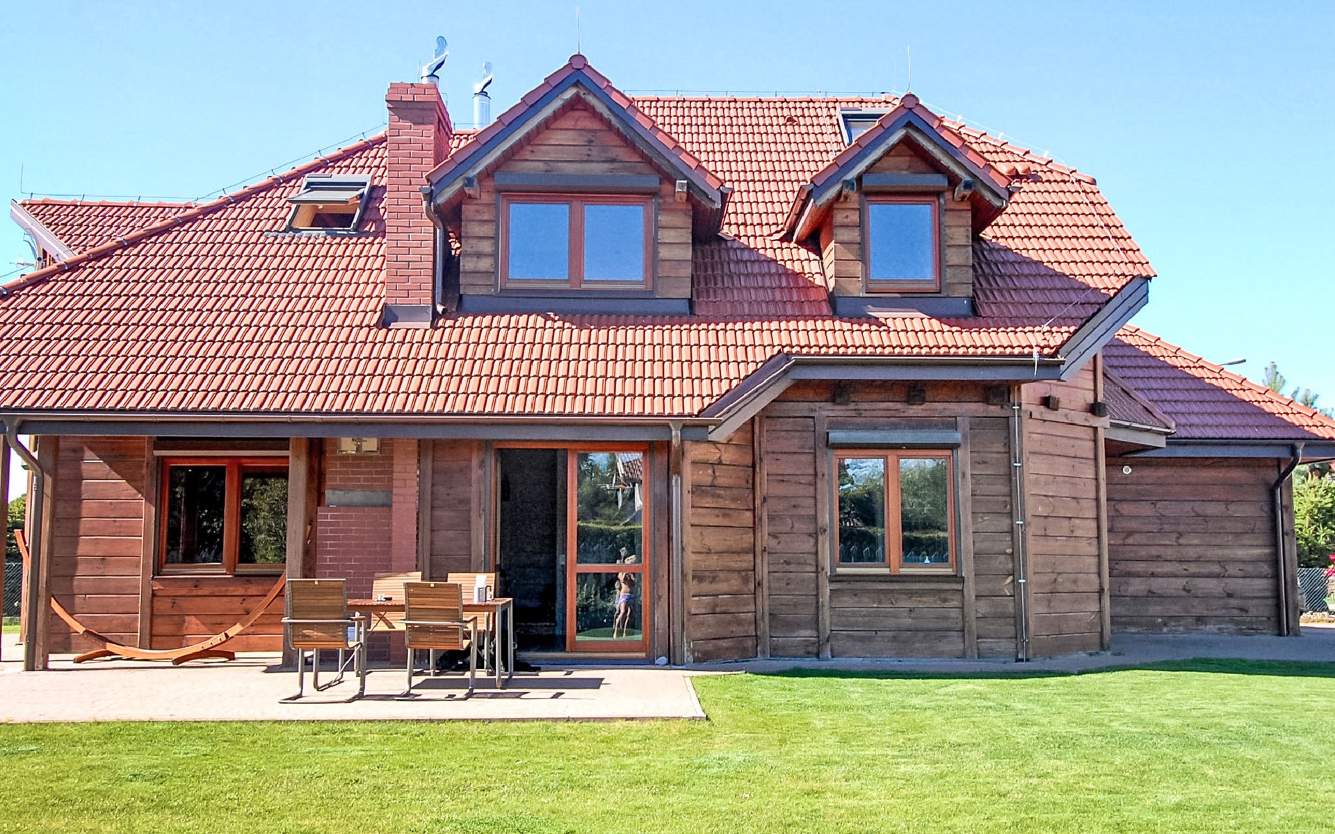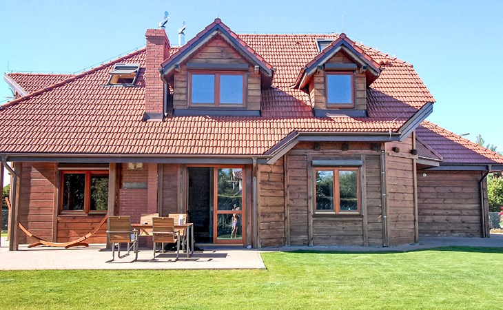 Eengezinswoning "Drewniany z bala", bouwjaar 2010, omgeven door weiden. In de plaats, rustige, zonnige ligging, 550 m van zee, 500 m van het strand, 1 km van de rivier, te midden van groen. Voor alleengebruik: terrein 1.500 m2 (omheind), gazon, openluchtzwembad hoekig, verwarmd (4 x 9 m, seizoensgebonden beschikbaarheid: 01.Apr. en 31.Okt.). Terras (70 m2), tuinmeubelen, barbecue. In het huis: sauna, droger. Beschikbaar: fietsen (2). Toegangsweg tot aan het huis. Parkeerplaats bij het huis op het terrein. Levensmiddelenwinkel 350 m, supermarkt 350 m, restaurant 150 m, bushalte 100 m, station "Wejherowo" 30 km, zandstrand 400 m, overdekt zwembad 15 km, strandbad 500 m. Golfterrein (18 holes) 35 km, manege 7 km, kinderspeelplaats 300 m. Bekende meren kunnen gemakkelijk worden bereikt: Jez. Żarnowieckie 10 km.