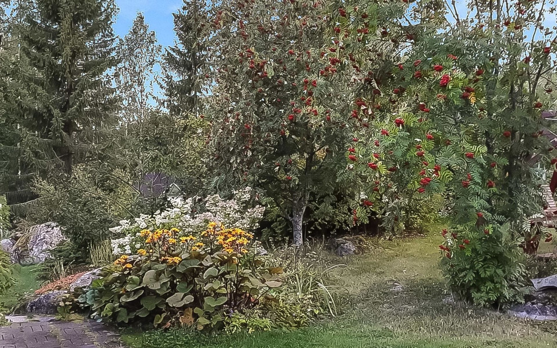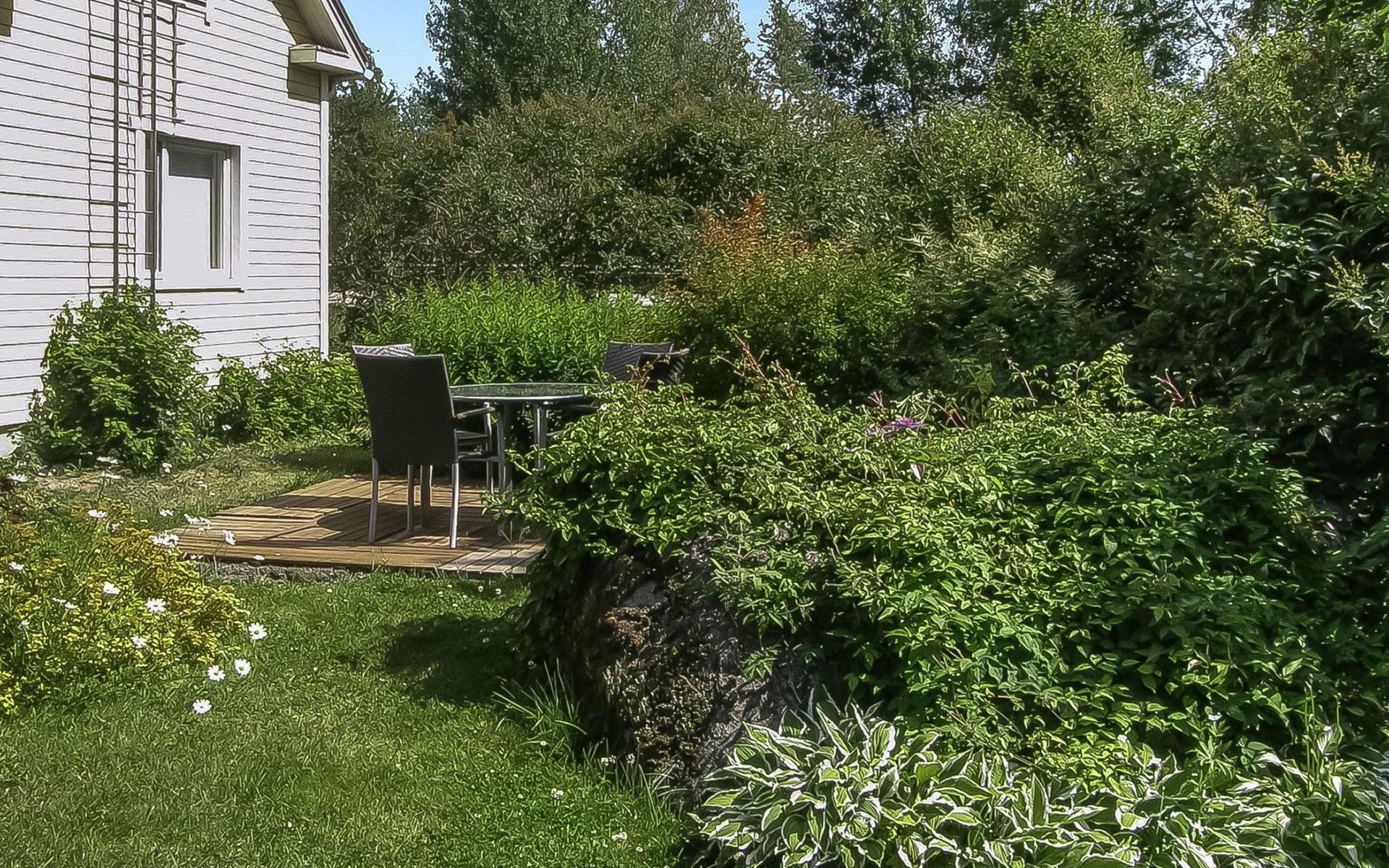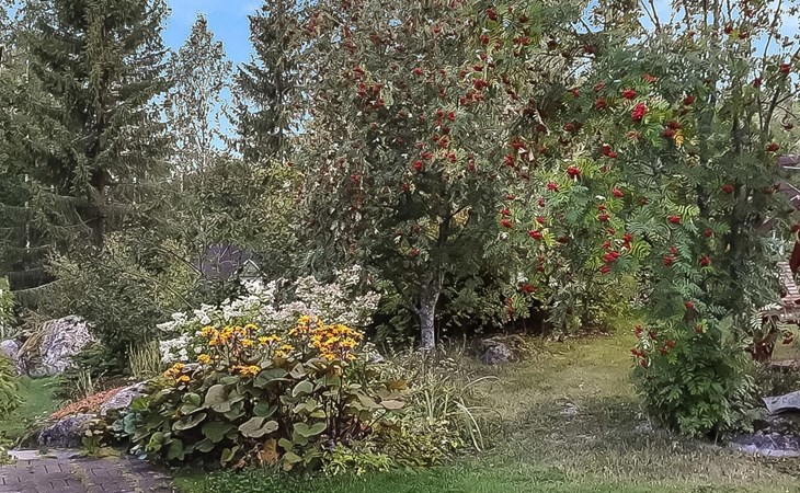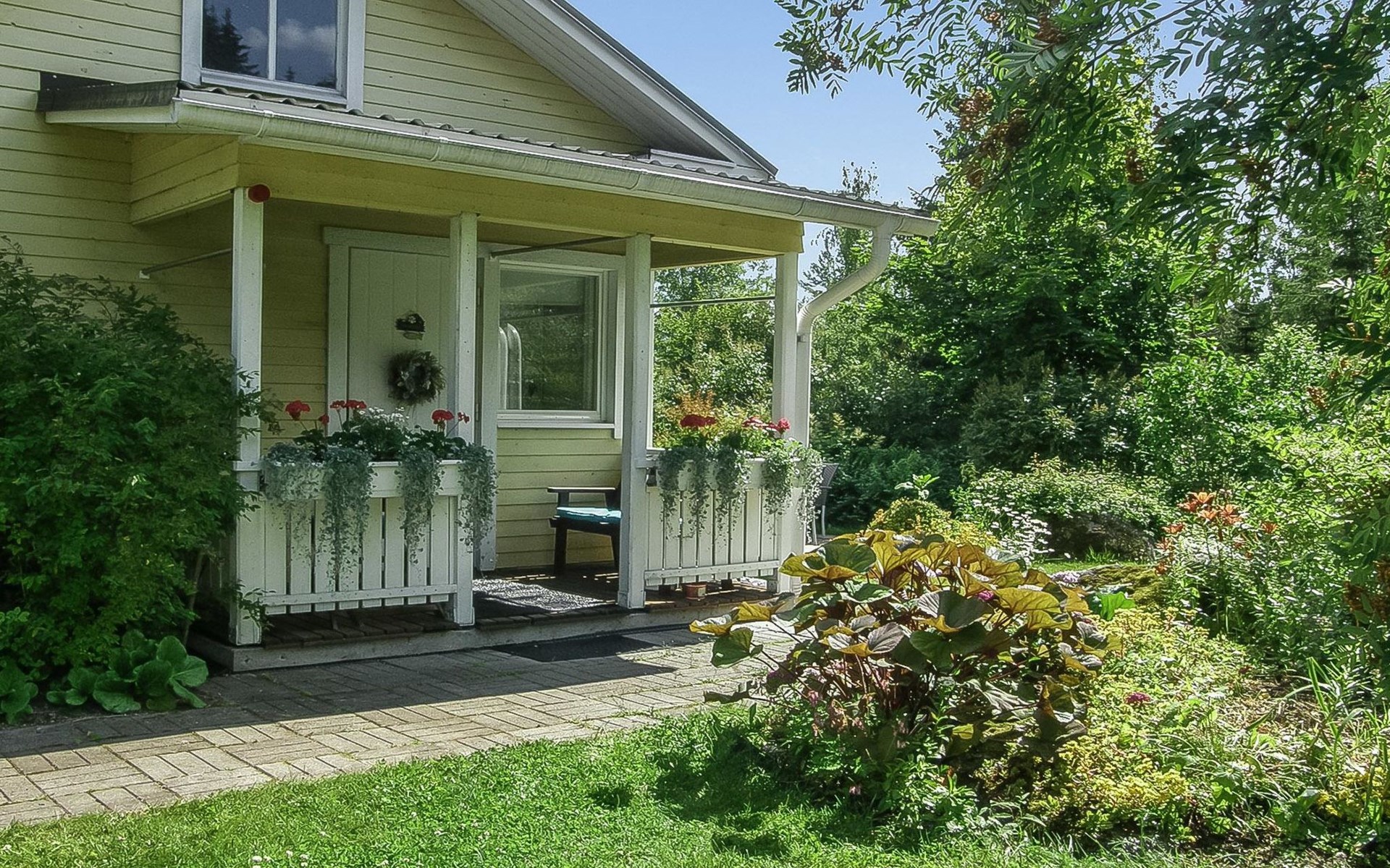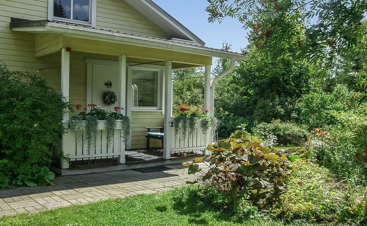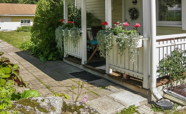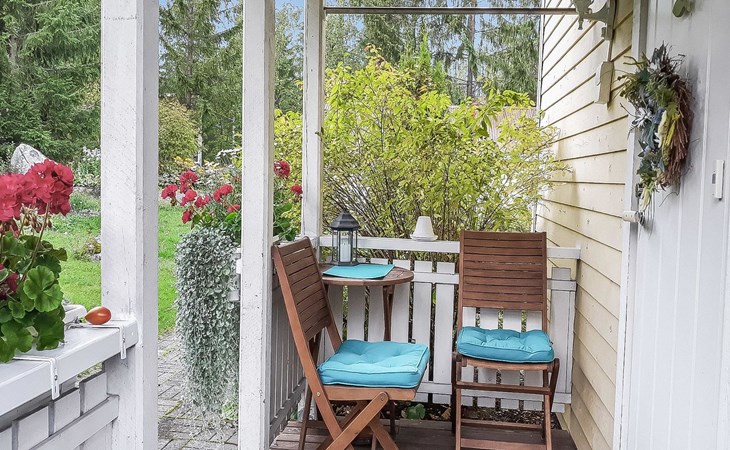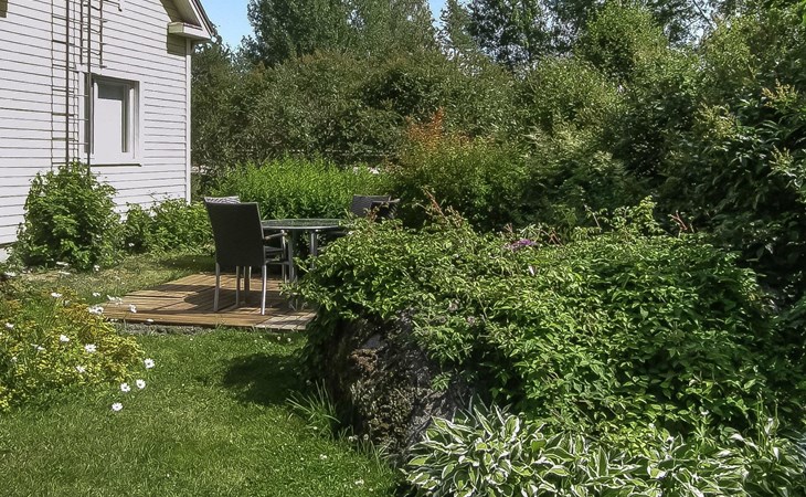 Villa Paasirinne B is located on a sunny flat lawn plot. The well-kept yard area is rich in flowering shrubs and groups of perannas that provide also privacy.