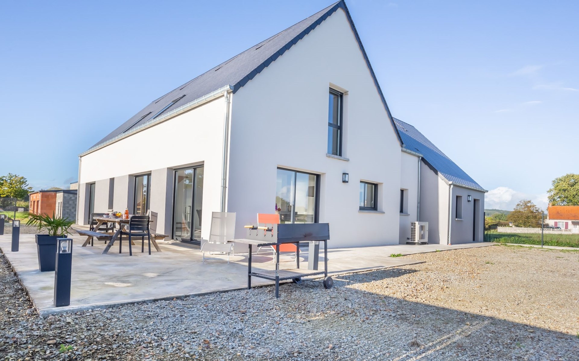 Groot, mooi eengezinswoning "Bollevilla", bouwjaar 2021. 200 m van het centrum van Bolleville, 2.6 km van het centrum van La Haye, 28 km van het centrum van Valognes, in een woonwijk, 8 km van zee, 8 km van het strand. Voor alleengebruik: terrein 600 m2 (omheind), parkeerplaats (voor 3 auto's), eigen garage. Winkel 2.6 km, supermarkt 2.6 km, bushalte "LA HAYE-DU-PUITS_Rue de Verdun" 3.4 km, zandstrand "portbail" 8 km. Golfterrein (18 holes) 15 km. Attracties in de buurt: portbail 8 km.