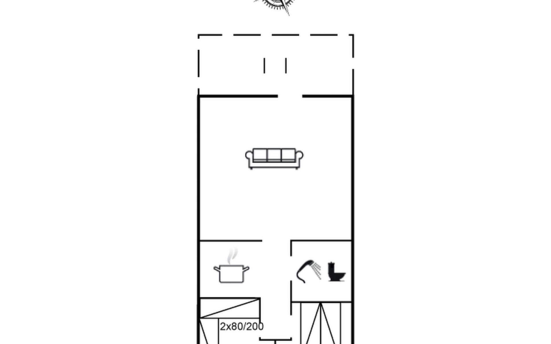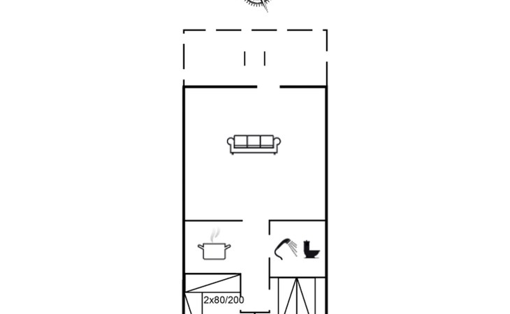 Eengezinswoning, bouwjaar 1975. 600 m van zee. Voor alleengebruik: terrein 1.200 m2. Terras (40 m2), parkeerplaats bij het huis. Levensmiddelenwinkel 300 m.