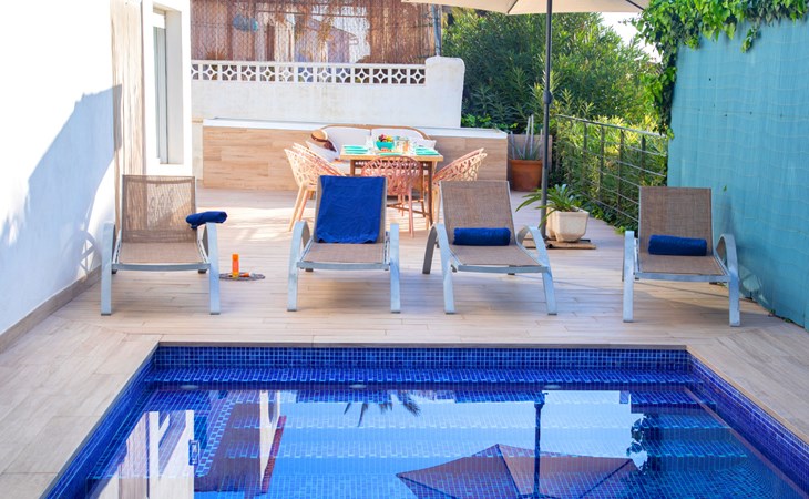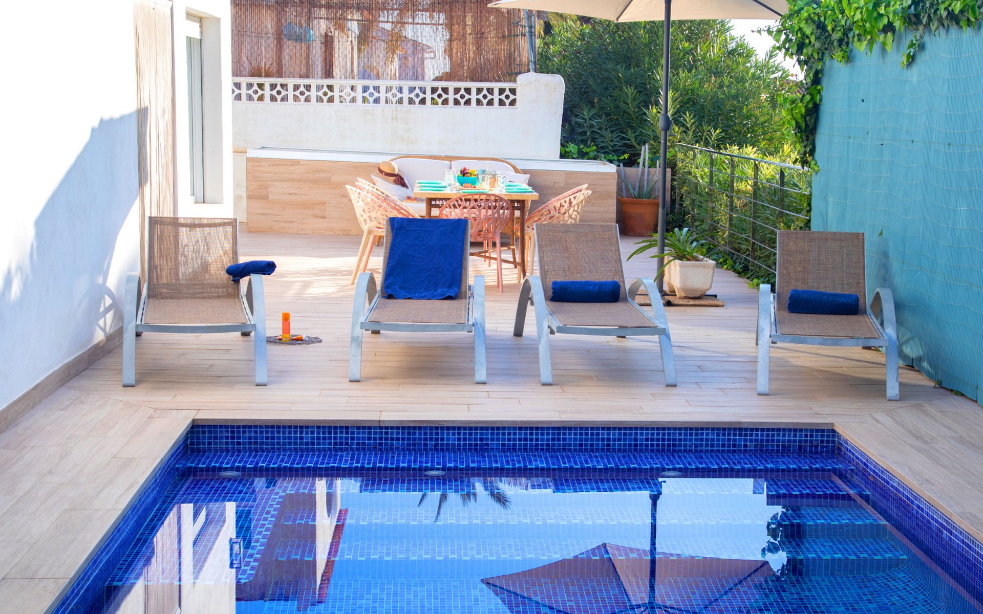 La Caleta: Huis "La Cala". 3 km van het centrum van Calpe, rustige, zonnige ligging, 250 m van zee. Voor alleengebruik: terrein 355 m2 (omheind), openluchtzwembad hoekig (3 x 7 m, seizoensgebonden beschikbaarheid: 01.Jan. - 31.Dec.). Buitendouche, parkeerplaats bij het huis. Supermarkt, restaurant, bar 800 m, bushalte "Parada Bus" 350 m, zandstrand "Playa de Levante" 900 m. Jachthaven 2 km, golfterrein (9 holes) 9 km, surfschool 2 km, zeilschool 2 km. Attracties in de buurt: Terra MÃtica, Aqualandia, Mundomar, Terra Natura, Benidorm Palace (Benidorm).
