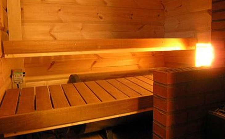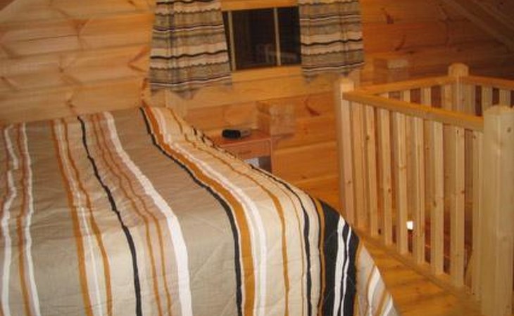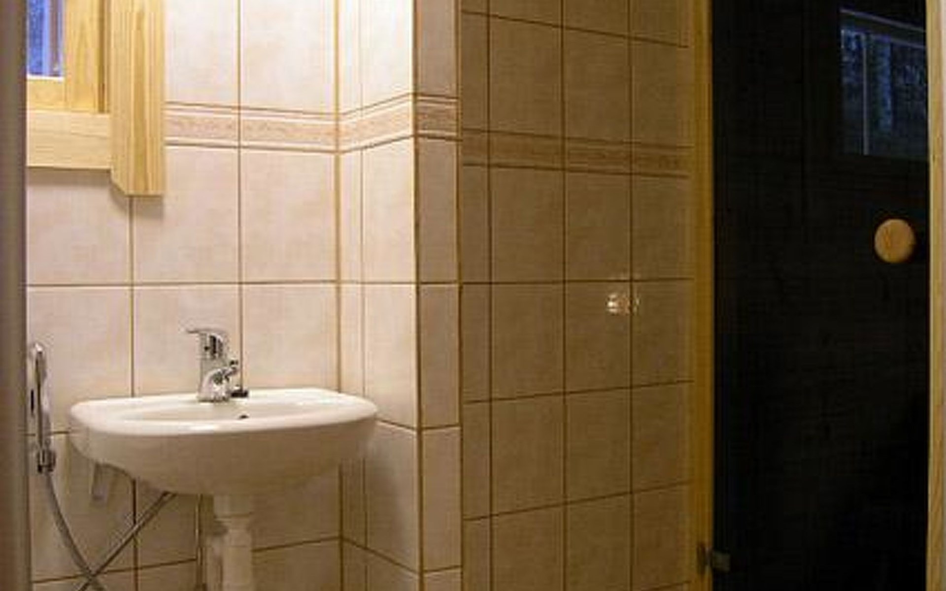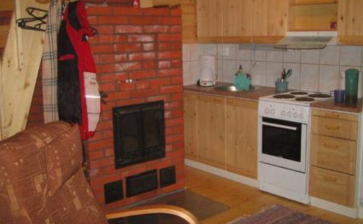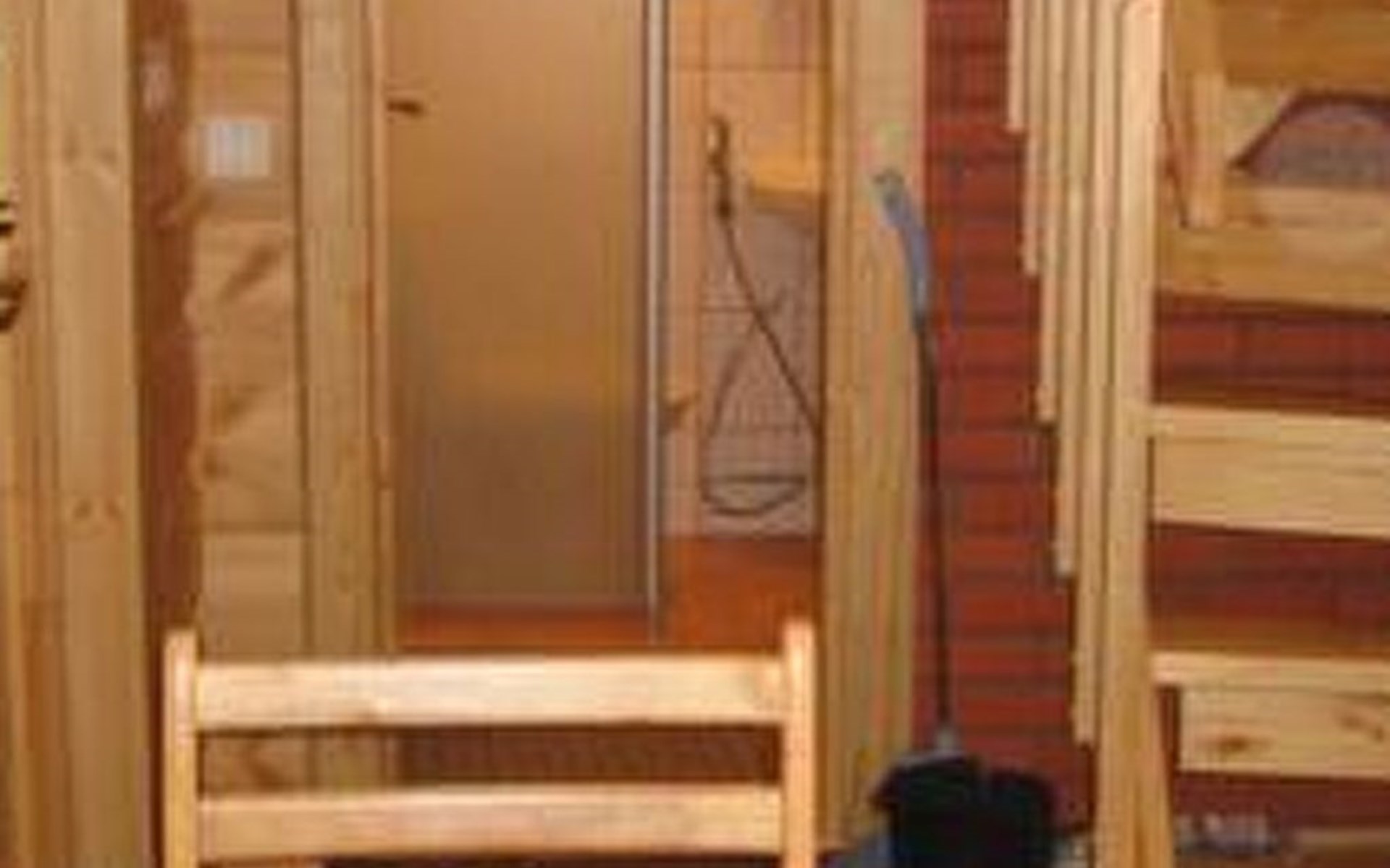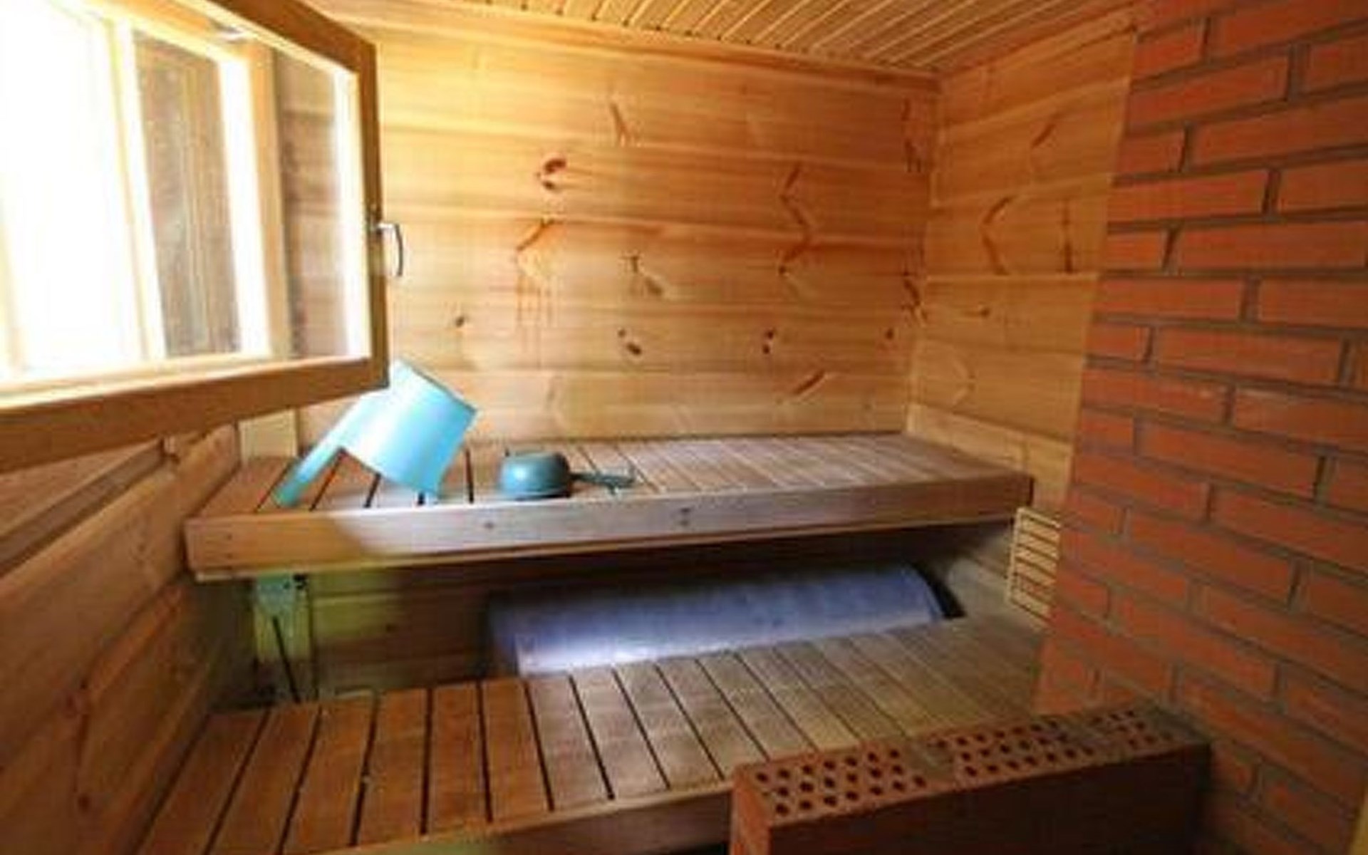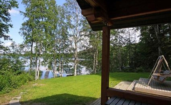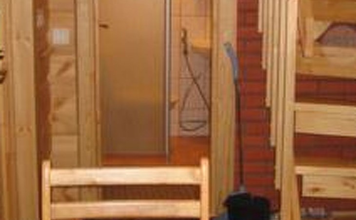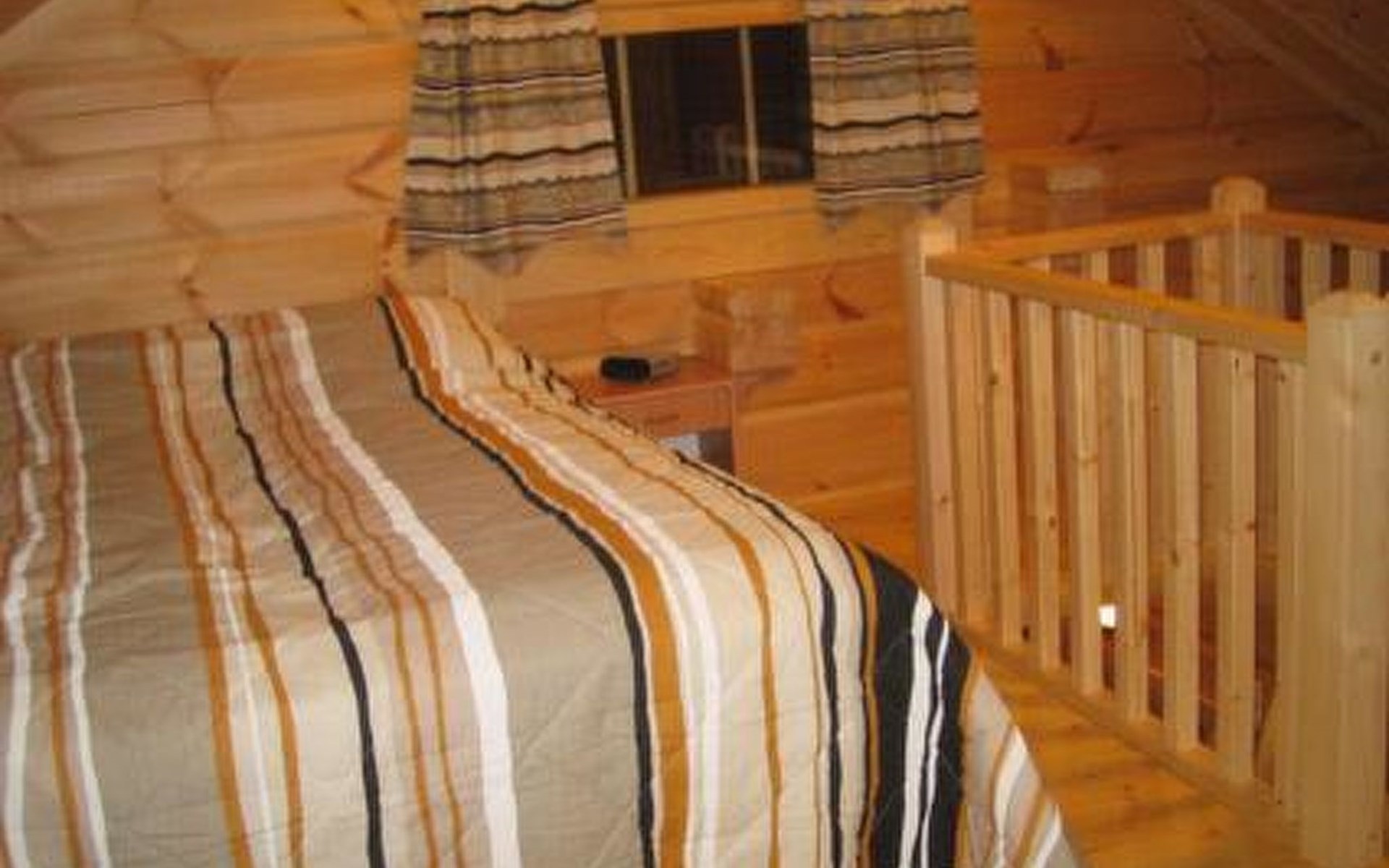 Log cottage 2008, living room/kitchen, bedroom upstairs 2 beds and convertible sofa, steep stairs to upper floor, washroom, shower, sauna (wood-burning stove), large open porch.