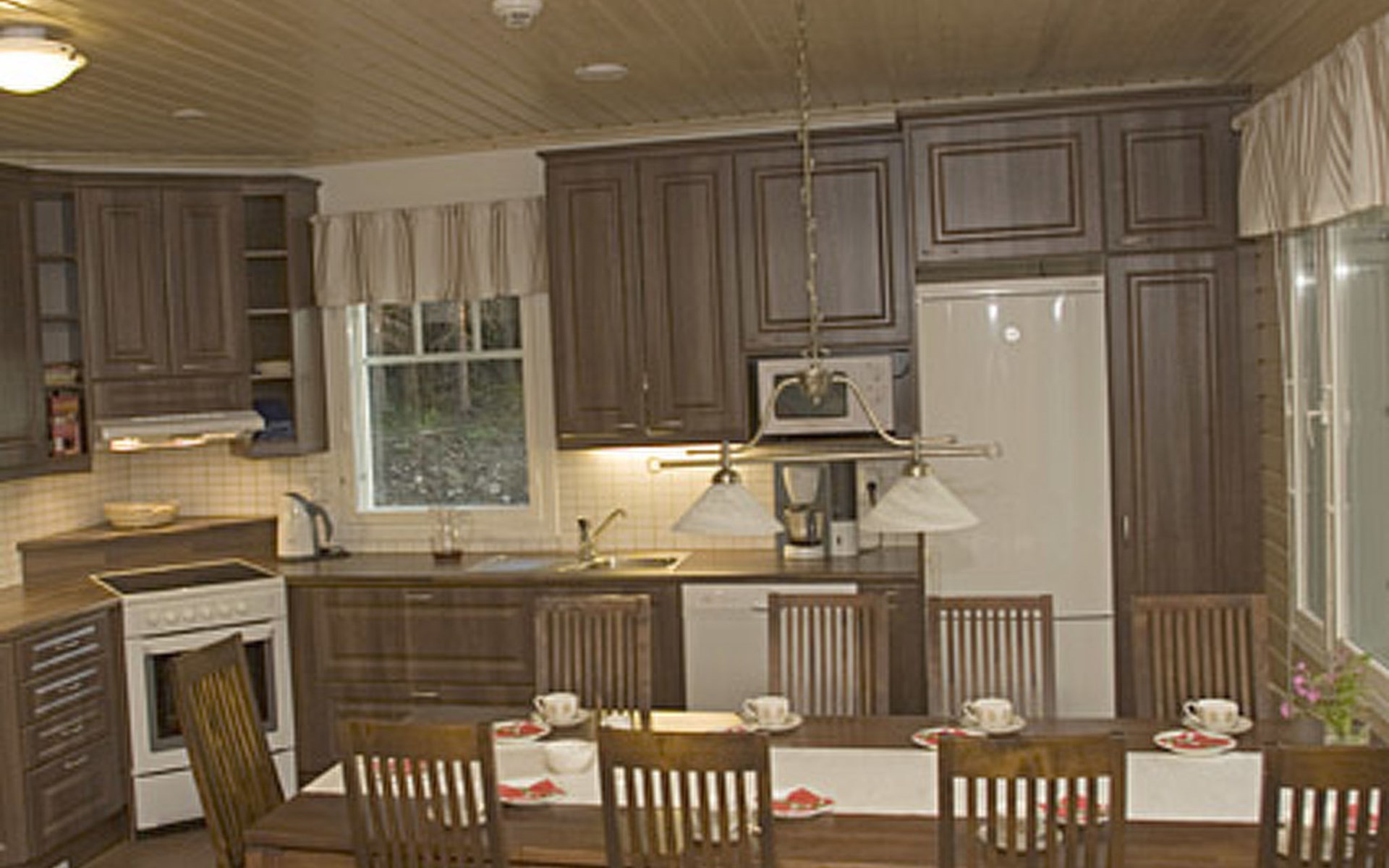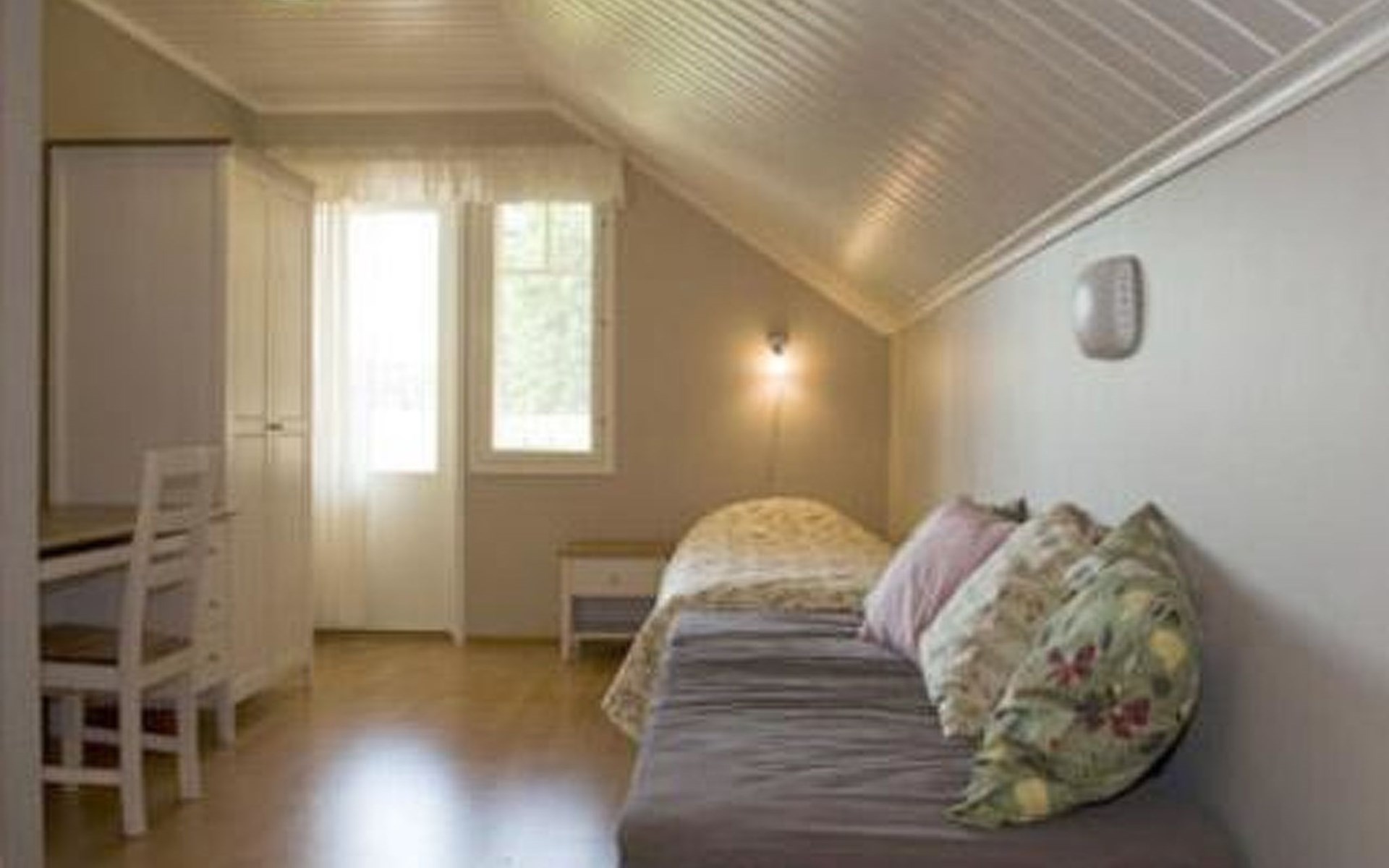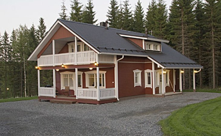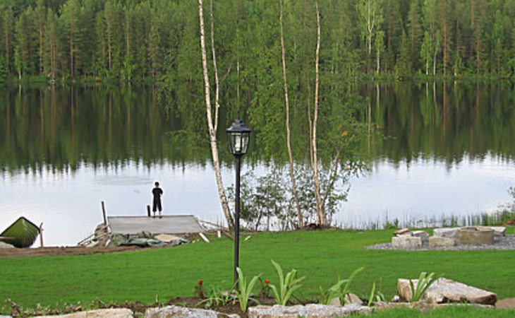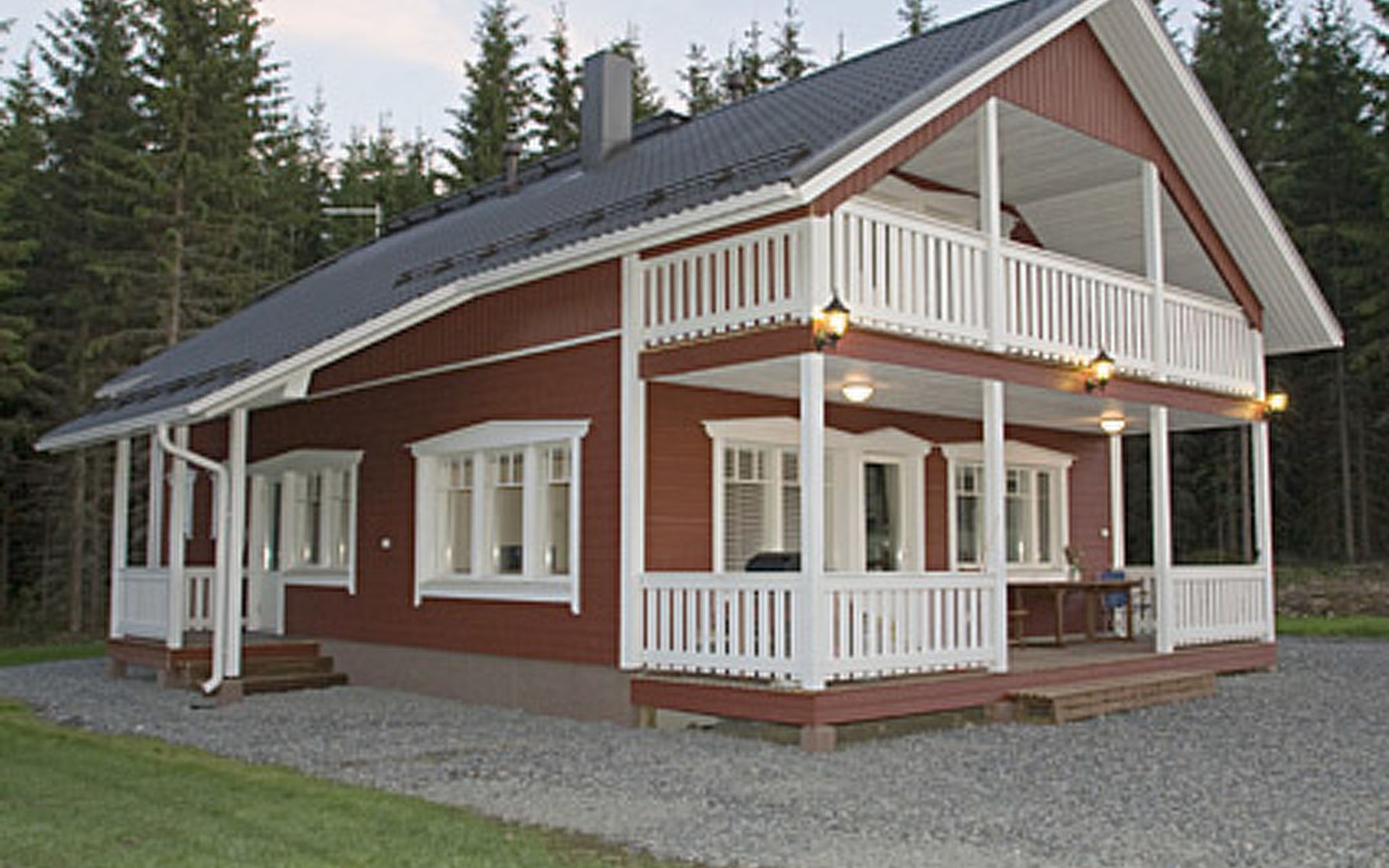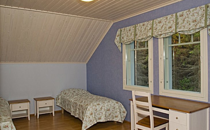 Wooden cottage 2007, living room/ kitchen, bedroom 2 beds and child's bed. Upstairs: hall, bedroom 3 beds, bedroom 2 beds, bedroom 4 beds. Downstairs: sauna (electric stove), washroom, dressing room/ utility room, open porch. Gas heated ring burner + Muurikka steel pan as gas grill. Car port. There is also charcoal grill at the cottage (client brings charcoal and ignition fluid).