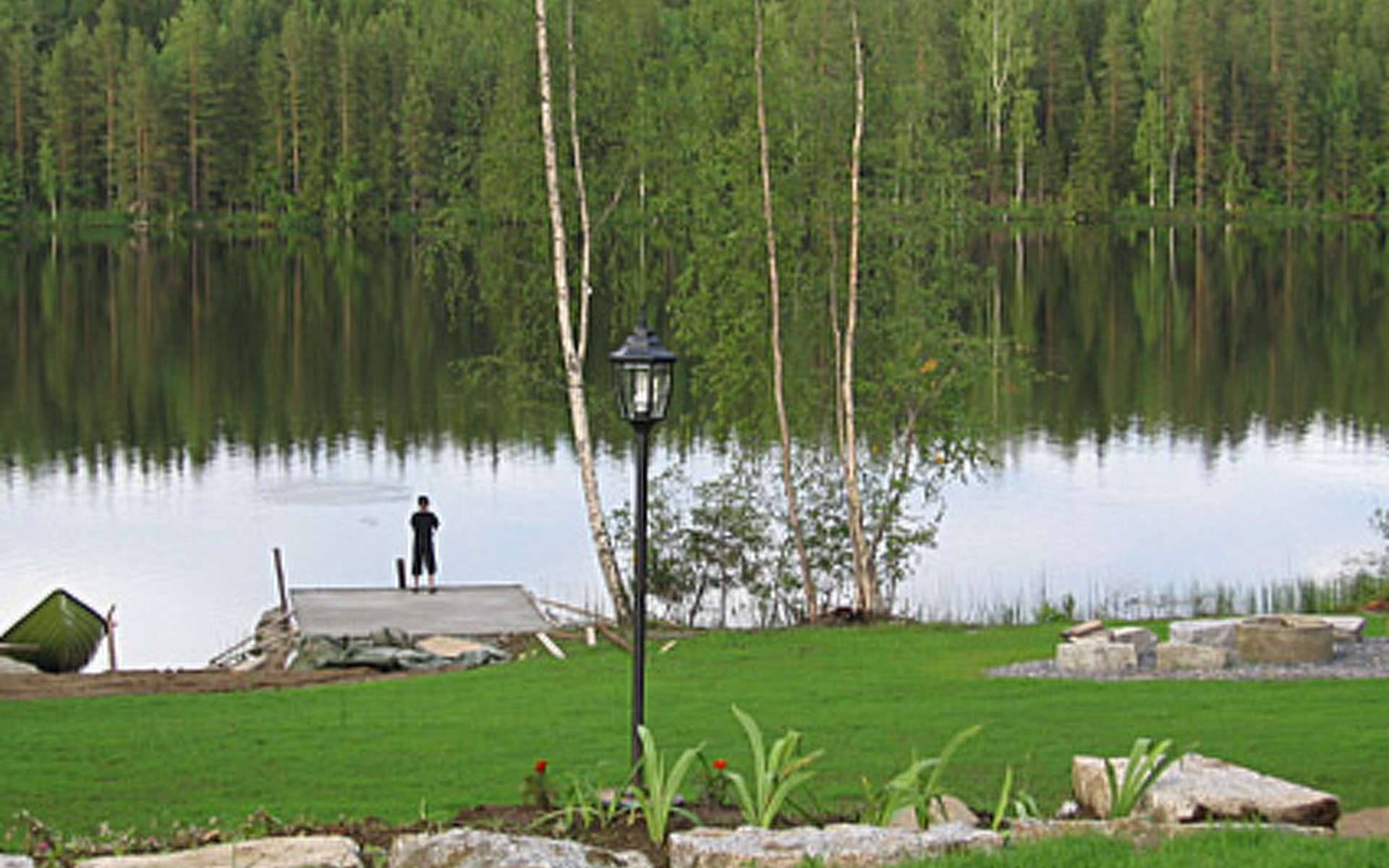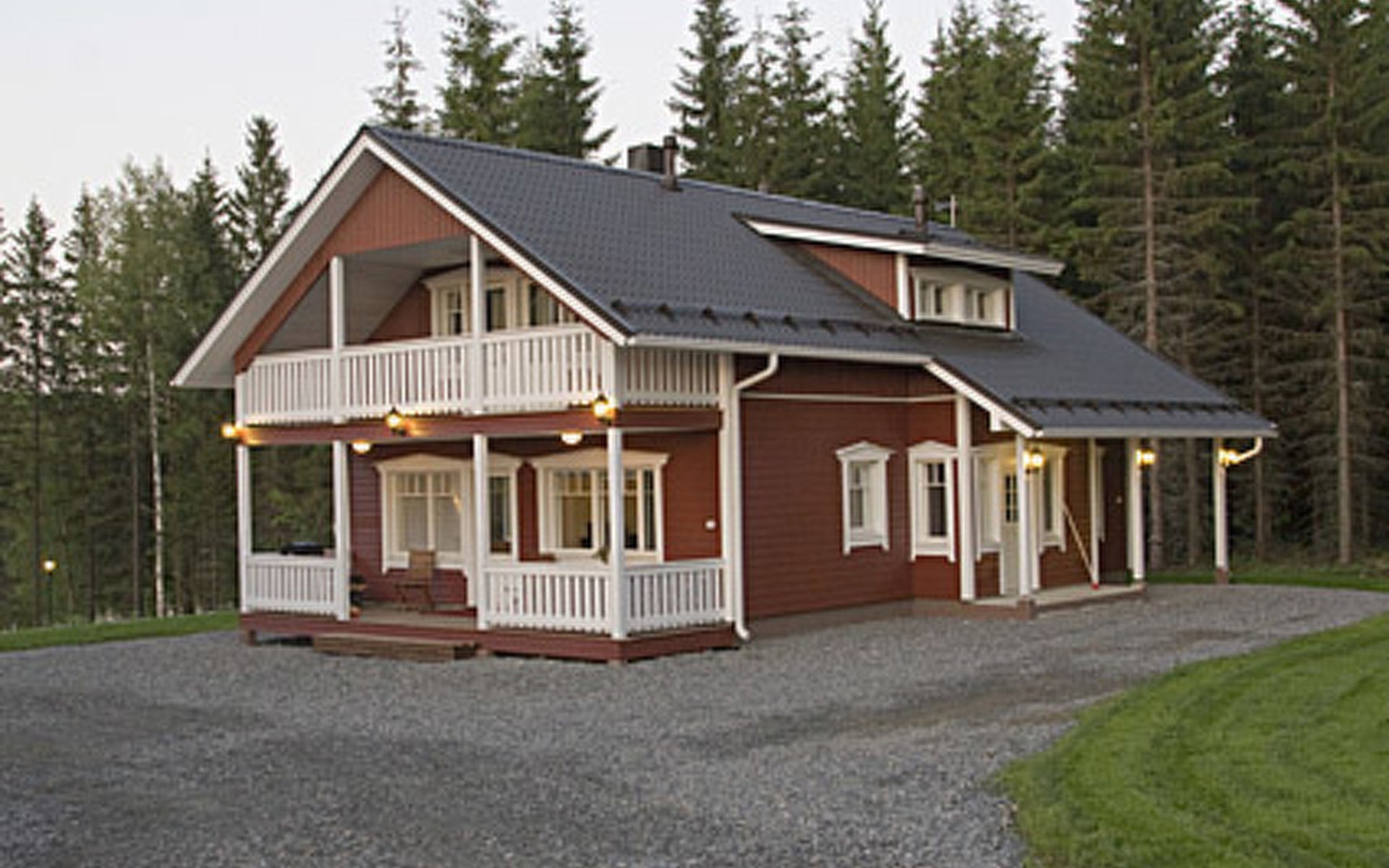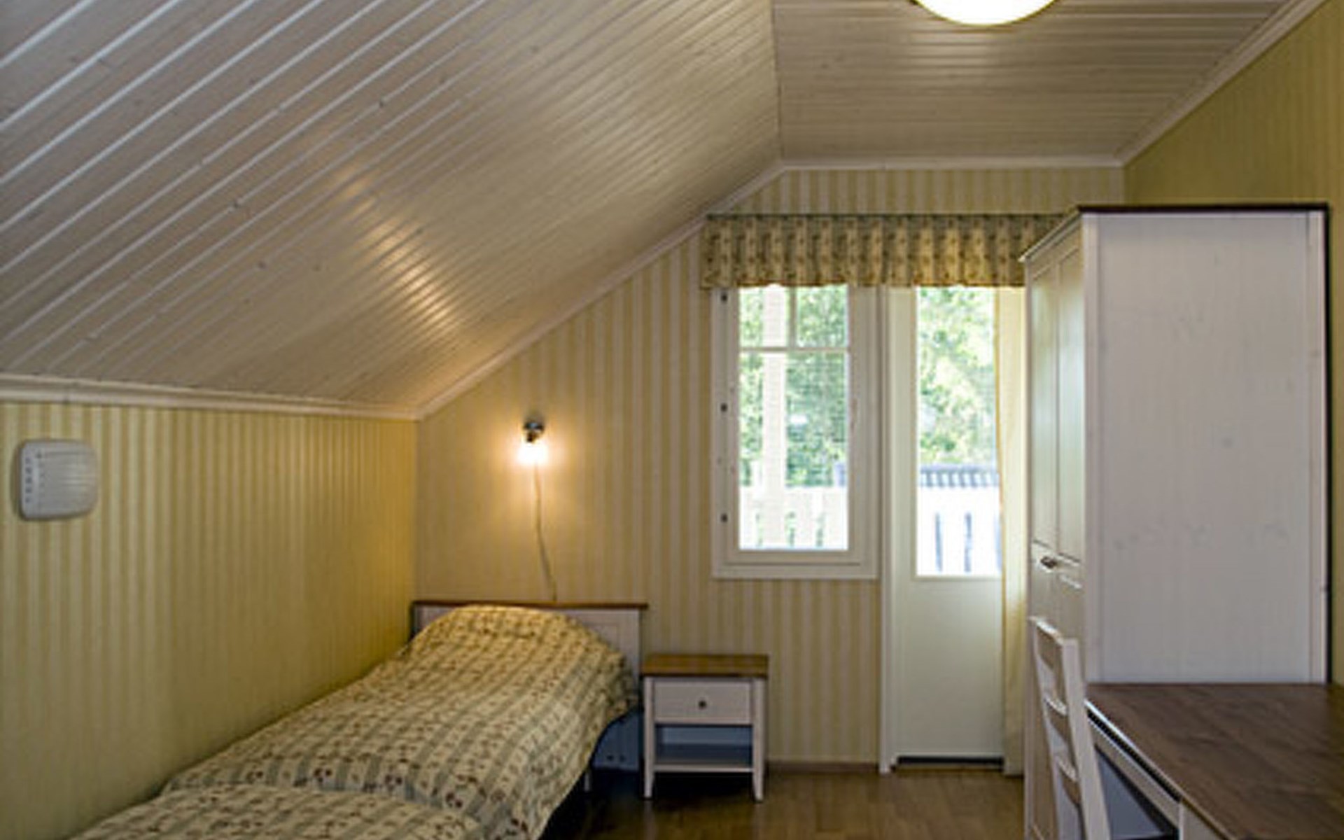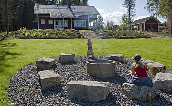 Wooden cottage 2007, living room/ kitchen, bedroom 2 beds and child's bed. Upstairs: hall, bedroom 3 beds, bedroom 2 beds, bedroom 4 beds. Downstairs: sauna (electric stove), washroom, dressing room/ utility room, open porch. Gas heated ring burner + Muurikka steel pan as gas grill. Car port. There is also charcoal grill at the cottage (client brings charcoal and ignition fluid).