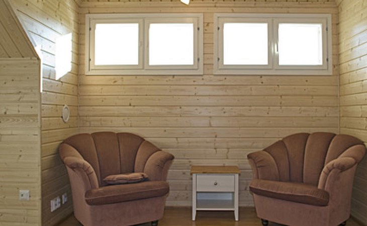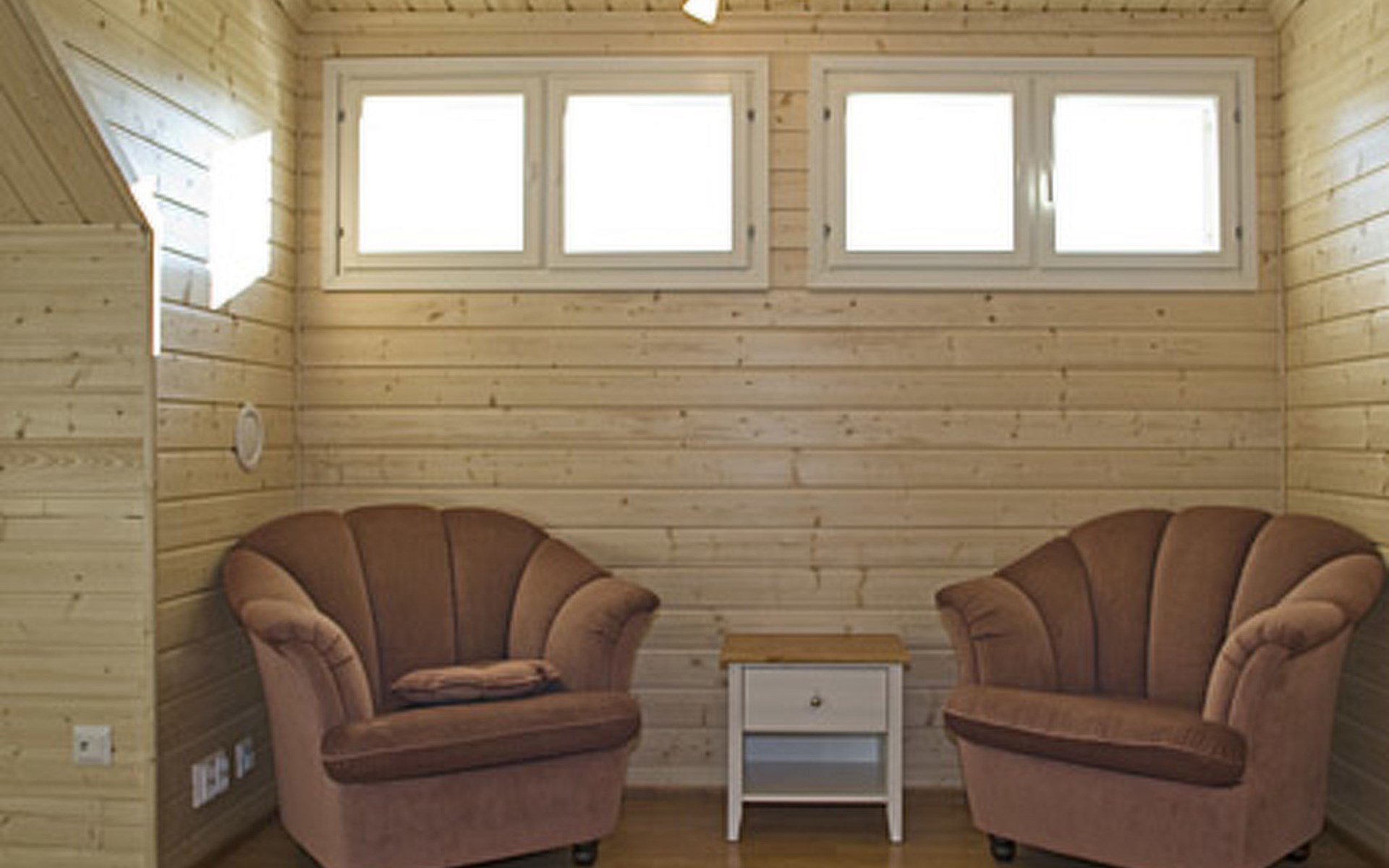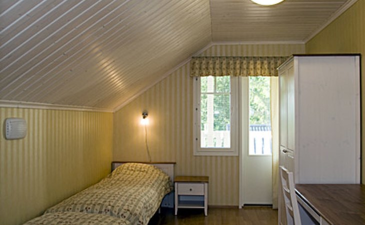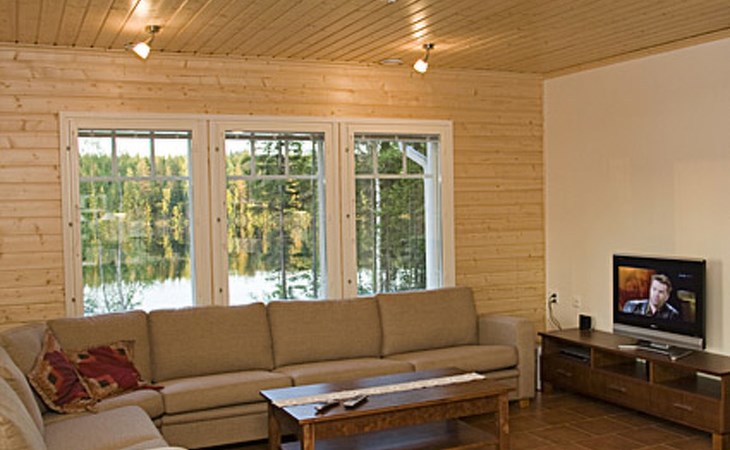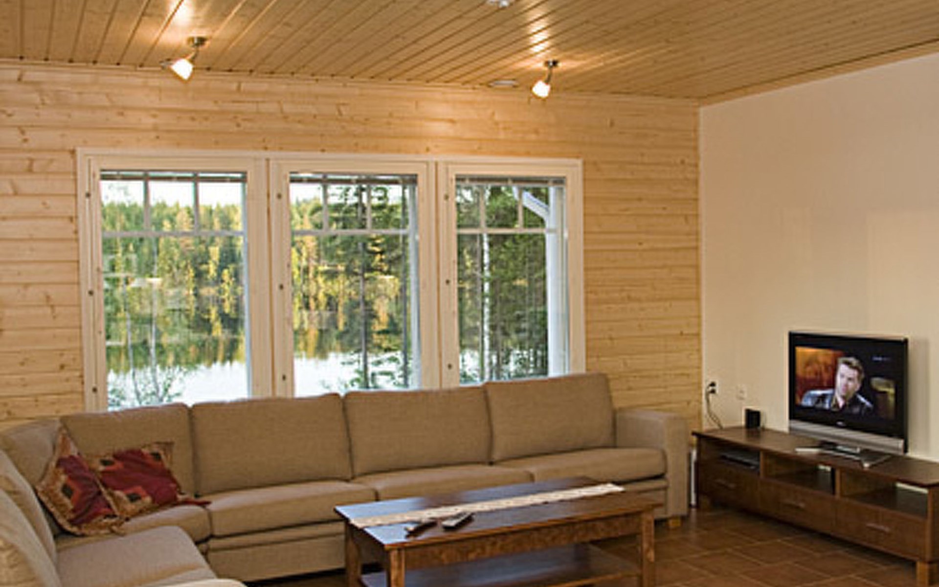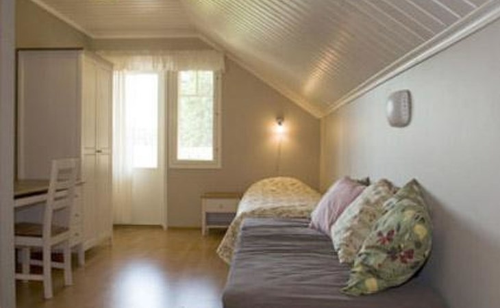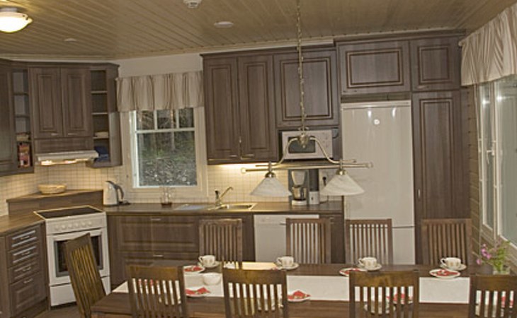 Wooden cottage 2007, living room/ kitchen, bedroom 2 beds and child's bed. Upstairs: hall, bedroom 3 beds, bedroom 2 beds, bedroom 4 beds. Downstairs: sauna (electric stove), washroom, dressing room/ utility room, open porch. Gas heated ring burner + Muurikka steel pan as gas grill. Car port. There is also charcoal grill at the cottage (client brings charcoal and ignition fluid).