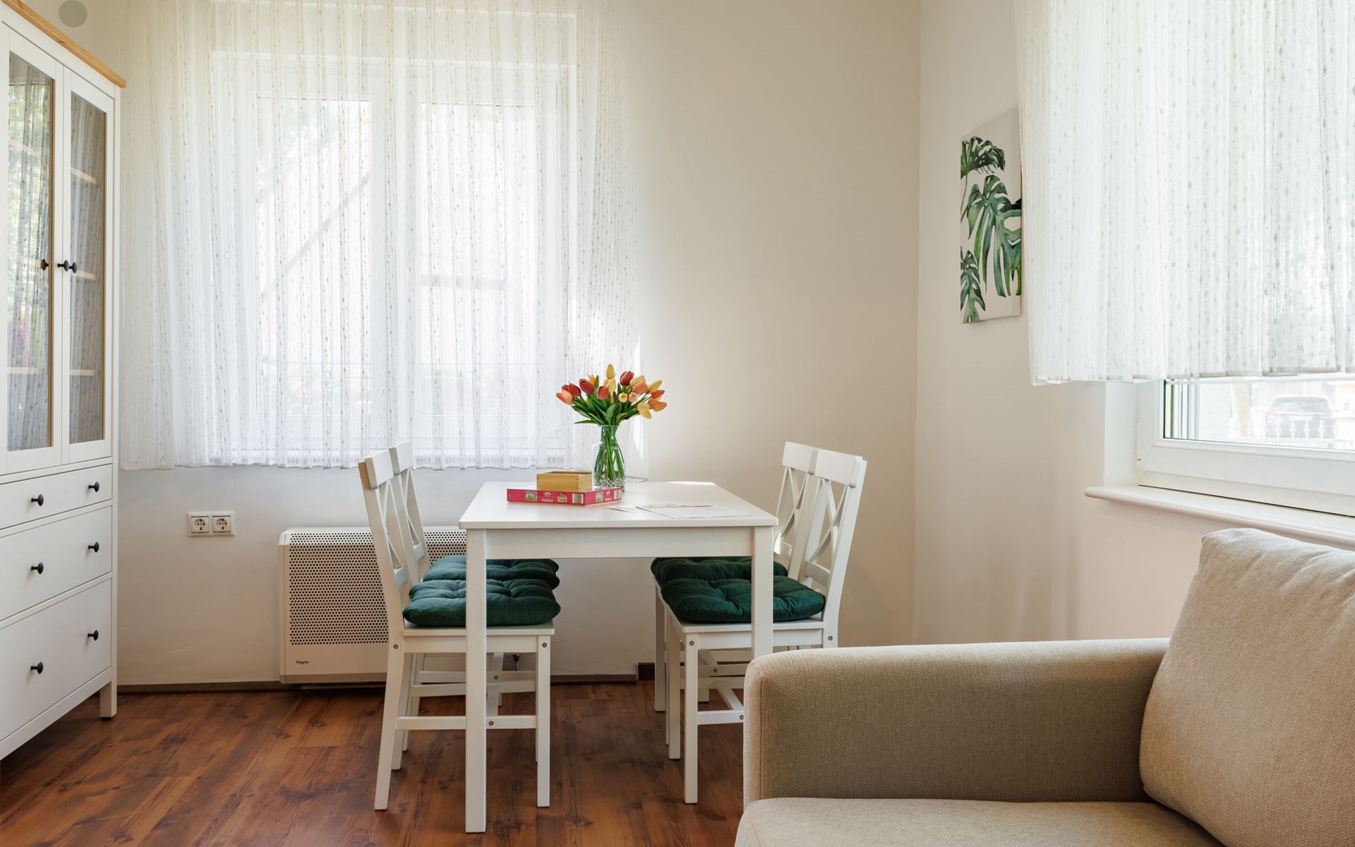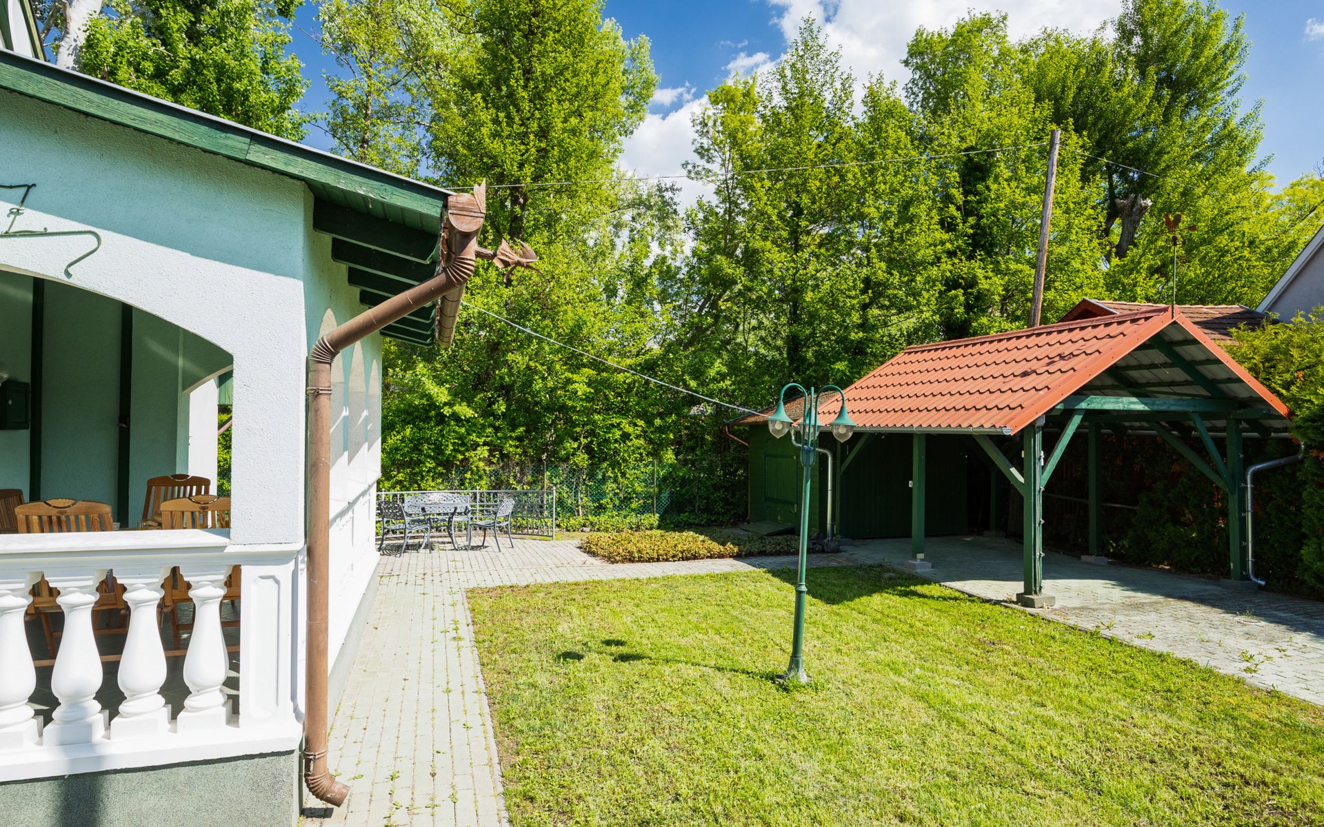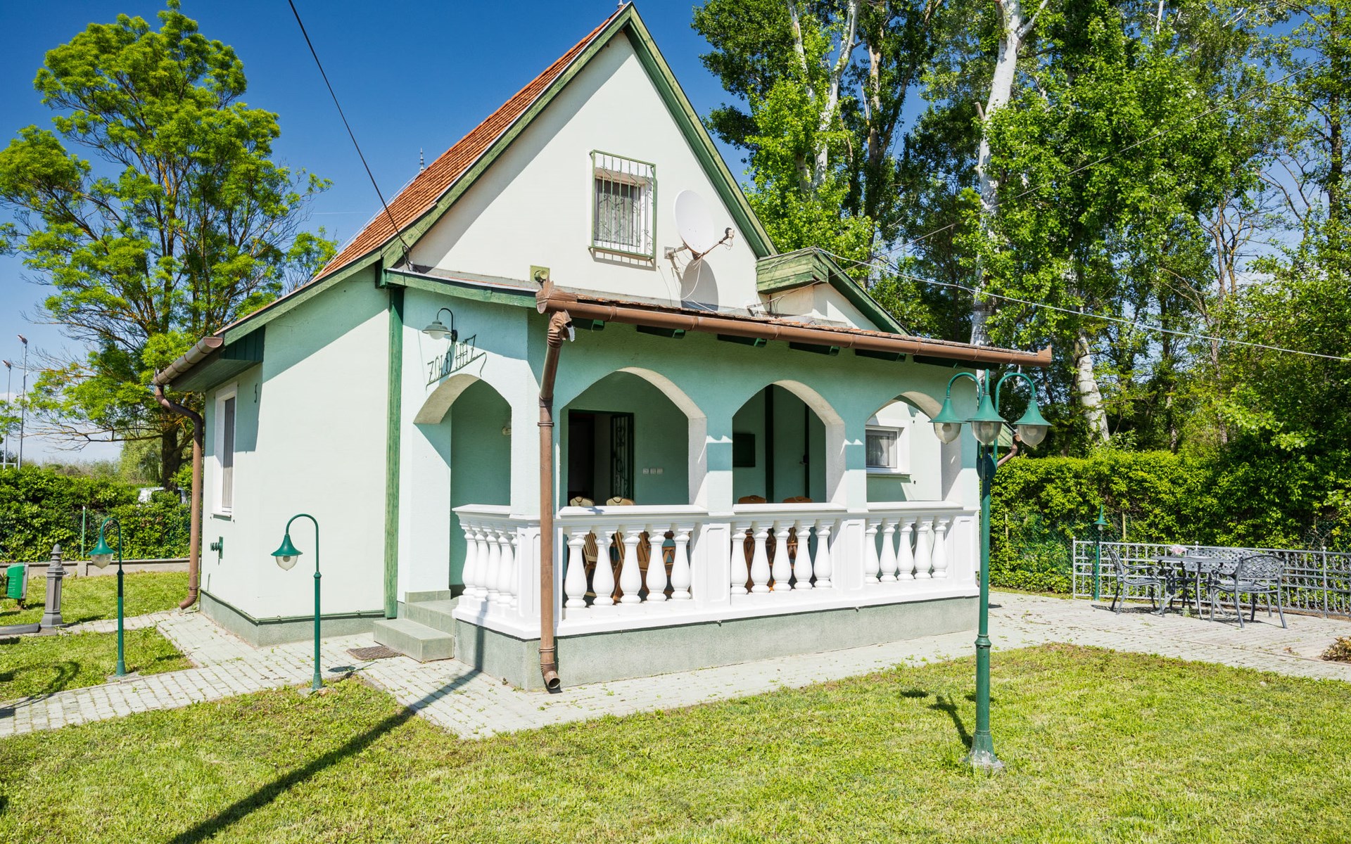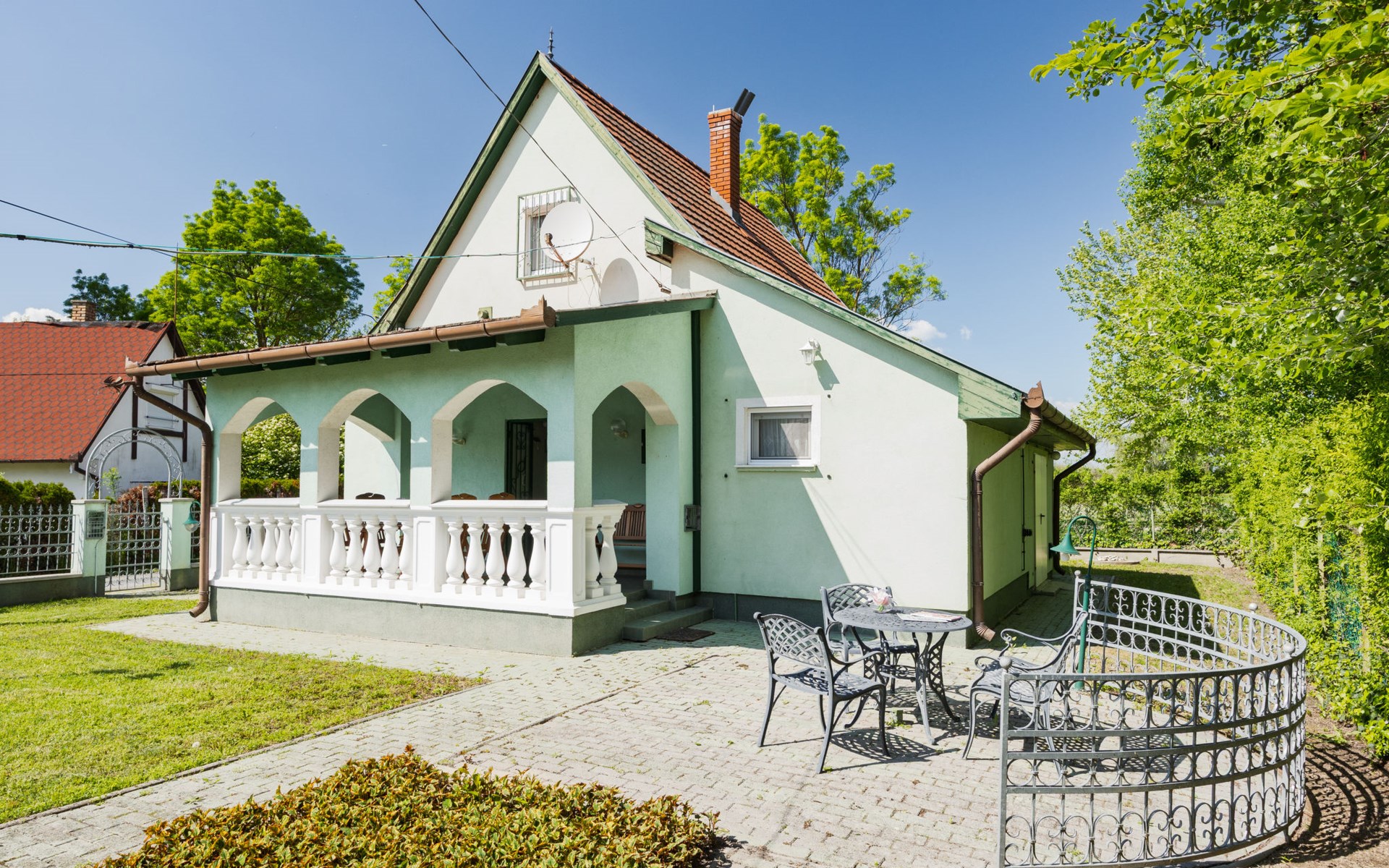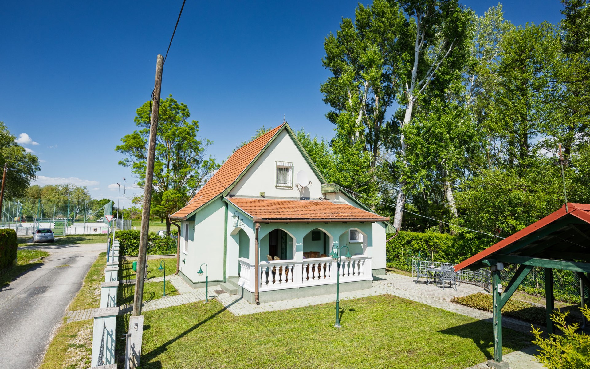 Balatonmáriafürdő 21 km van Keszthely: Klein, gezellig huis "Green House", van 2 verdiepingen. In de plaats, 500 m van het centrum, zonnige ligging in een woonwijk, 150 m van het meer, 100 m van het strand. Voor alleengebruik: terrein (omheind), ligweide. Terras, tuinmeubelen, barbecue. In het huis: Internet (WiFi). Overdekte parkeerplaats op het terrein. Levensmiddelenwinkel 850 m, restaurant 200 m, fietsverhuur 8 km, treinstation 800 m, thermaalbad "Hévíz" 25 km. Tennis 1.6 km, kinderspeelplaats 230 m. Attracties in de buurt: Kis-Balaton Visitor Center 15 km, Festetics Nature House visitor center 27 km, Keszthely Giant Wheel 21 km, Festetics Castle 21 km, Kristinus Wine Estate 9 km, Bobo Fun Park 26 km.