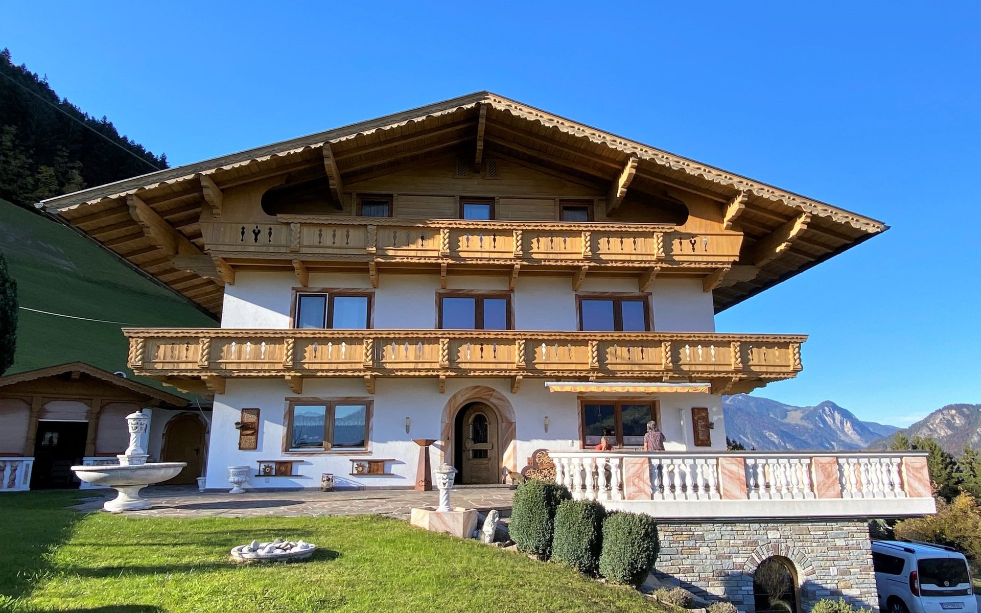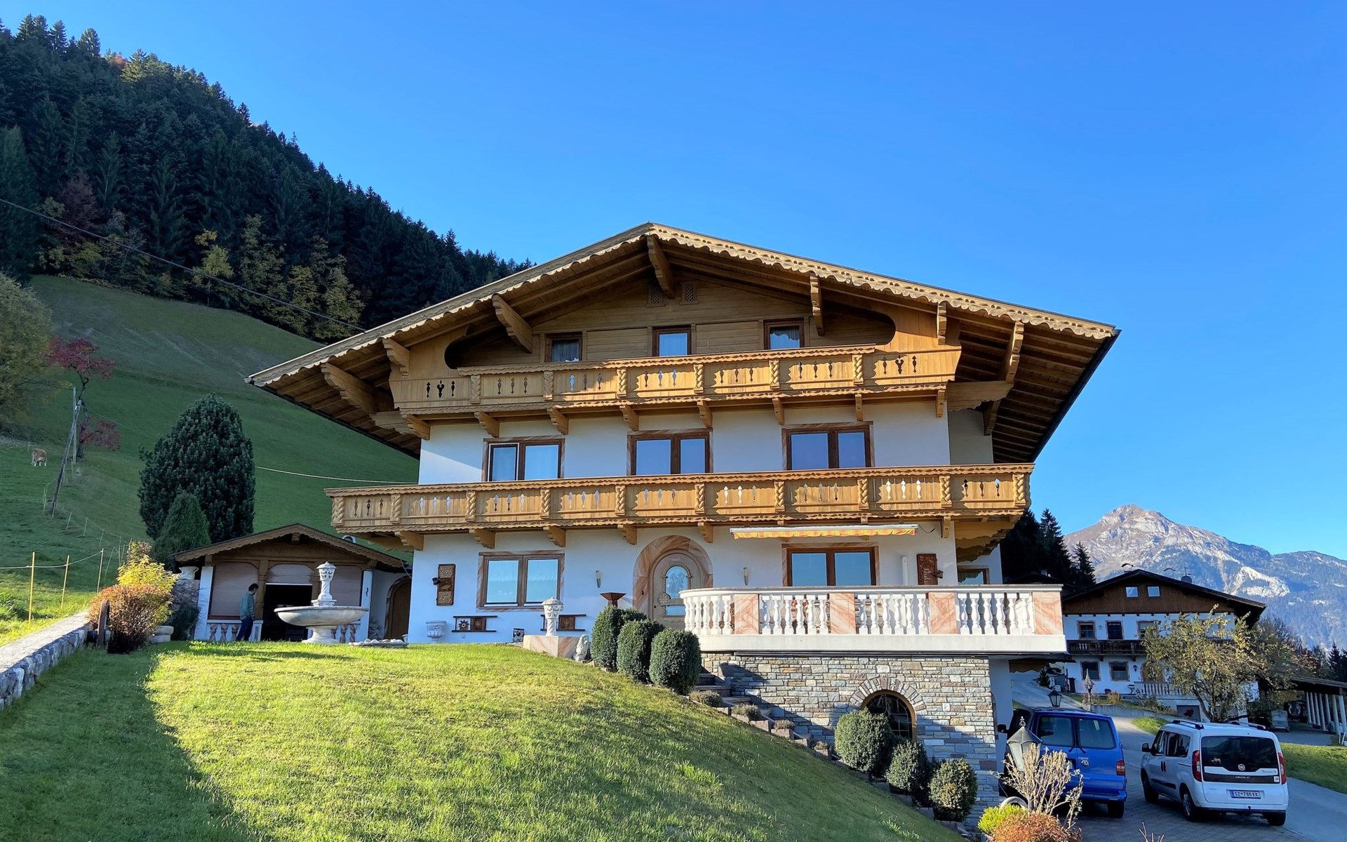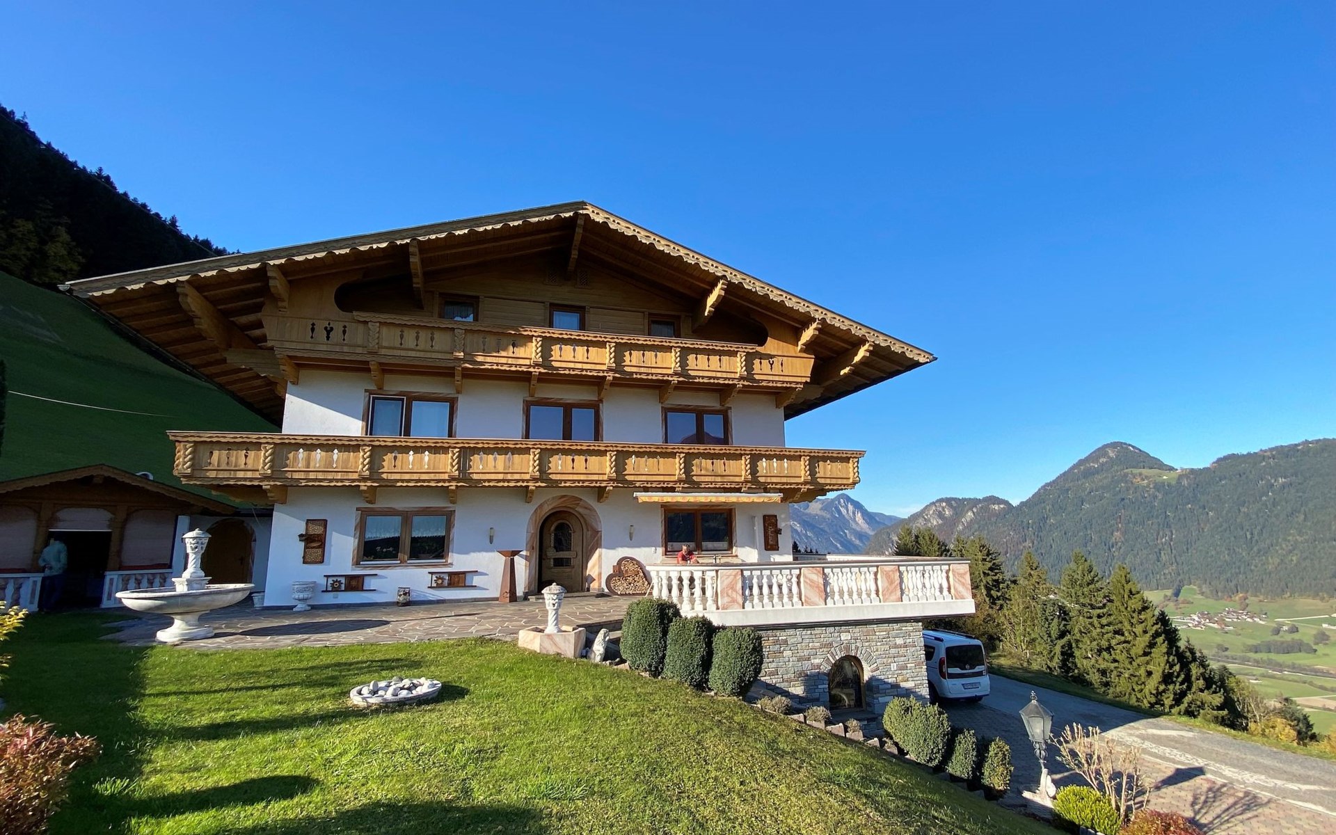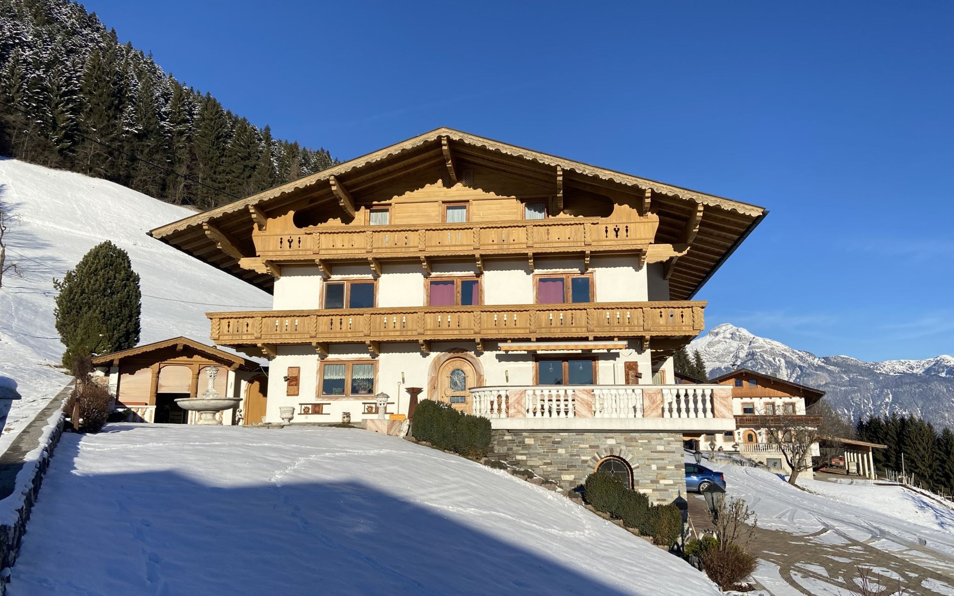 Groot appartementencomplex van 3 verdiepingen, vrijstaand, omgeven door weiden. 5 km van het centrum van Fügen, 11 km van het centrum van Kaltenbach, geïsoleerde, rustige ligging, 7 km van het meer, 4 km van het skigebied. In het huis: Internet (WiFi), droogruimte. In de winter sneeuwkettingen aanbevolen. Parkeerplaats (voor 2 auto's). Winkel 3 km, supermarkt 3 km, restaurant 2 km, bakkerij 3 km, bushalte "Fügen Gemeindeamt/Apotheke" 3.1 km, treinstation "Fügen-Hart i.Z. Bahnhof" 3.6 km, openluchtzwembad 4 km, overdekt zwembad 4 km, meer (zwemmen) "Schlitters" 7 km. Golfterrein (21 holes) 7 km, wandelroutes 10 m vanaf het huis, bergtrein 4 km, skischool 4 km, kinderskischool 4 km, rodelbaan 3 km, ijsbaan 4 km, Vismogelijkheden 13 km. Attracties in de buurt: Achensee 25 km, Innsbruck 45 km.