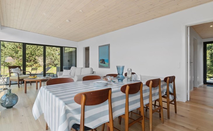 Eengezinswoning, bouwjaar 2023. 350 m van zee. Voor alleengebruik: wild terrein 1.423 m2. Terras (70 m2), barbecue. In het huis: wasmachine, droger. Parkeerplaats bij het huis. Levensmiddelenwinkel 3 km. Golfterrein 5 km. De eigenaar accepteert geen jeugdgroepen.