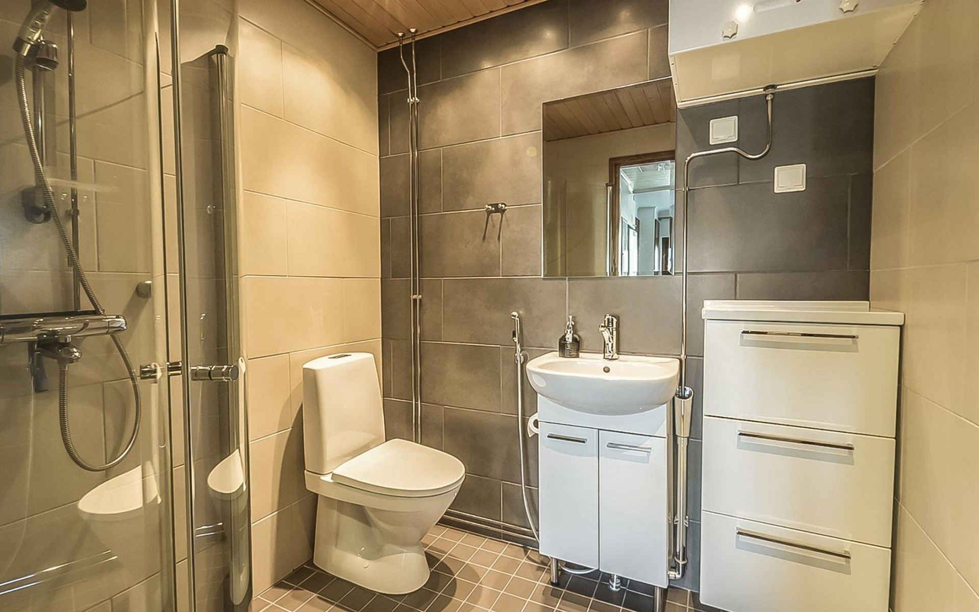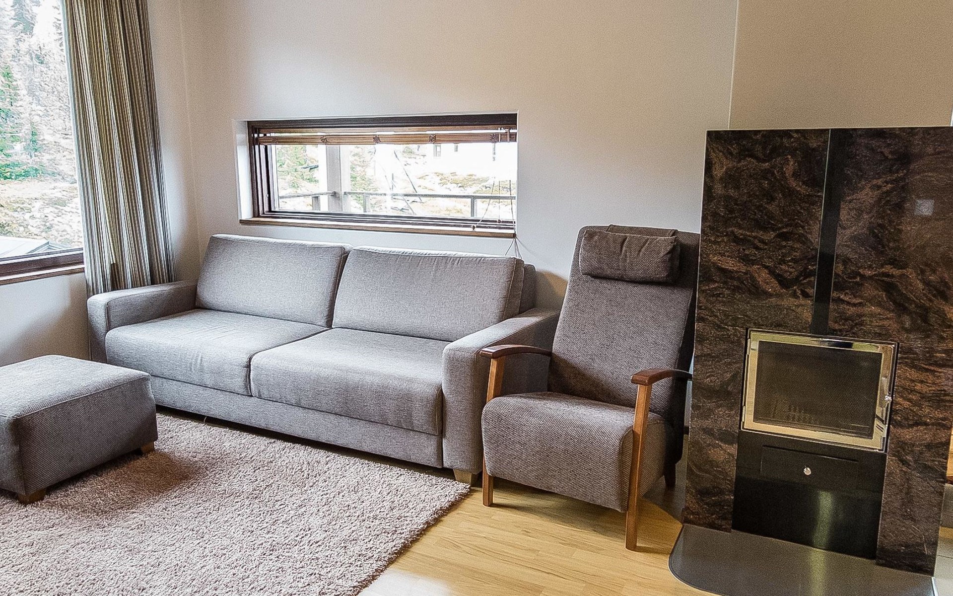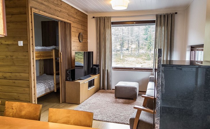Apartment in an apartment hotel, built 2008. Livingroom/kitchen , one bedroom with two separate beds, one sleeping alcove with a bunk bed, electric sauna, washing room/toilet.